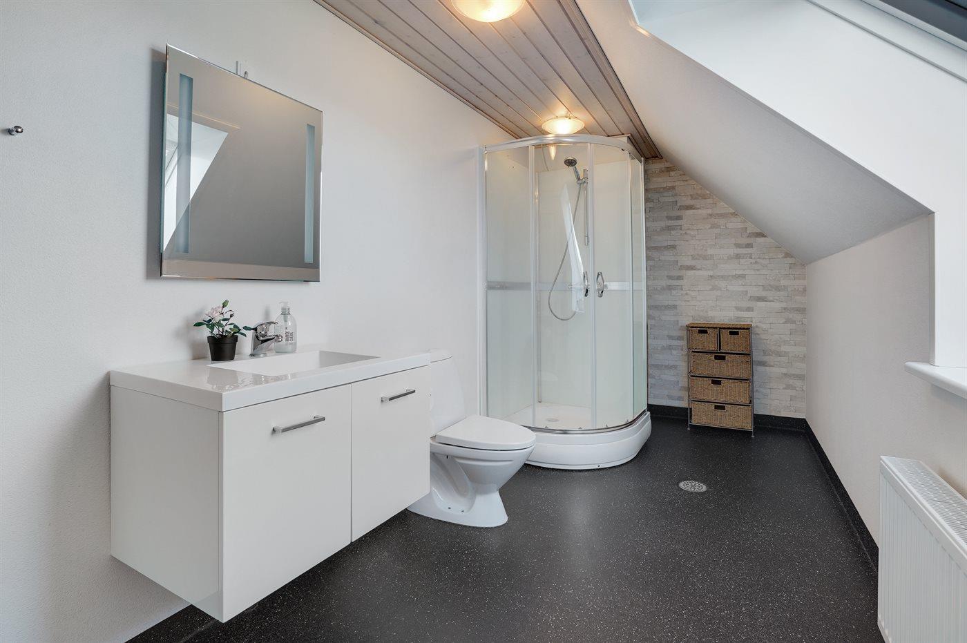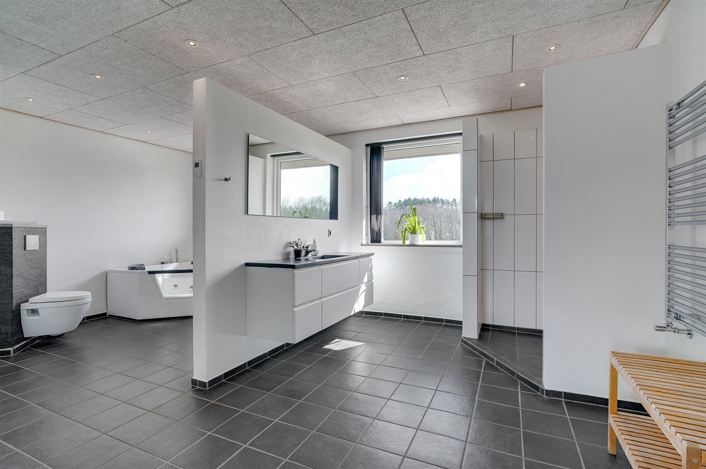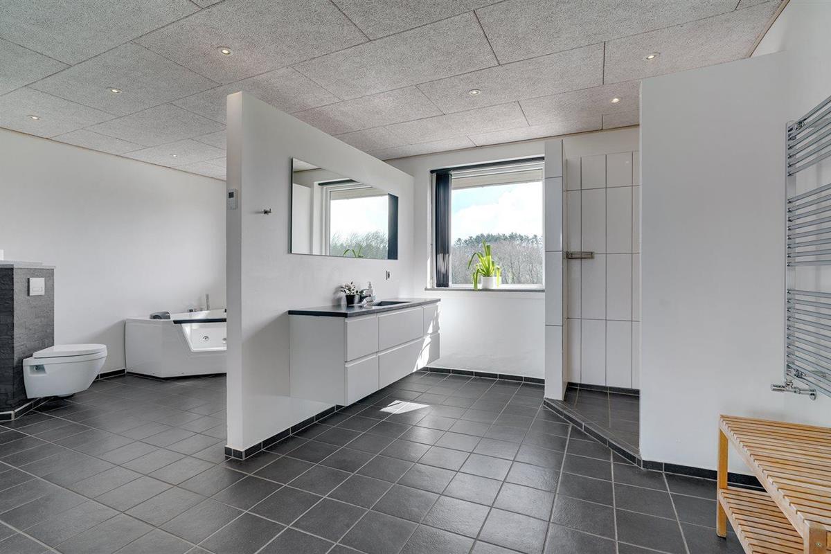 Er is 3 badkamers met douchehok en 4 toiletten, waarvan 1 gastentoilet. Er is vloerverwarming in 1 badkamer. Er is vloerverwarming in het gastentoilet.