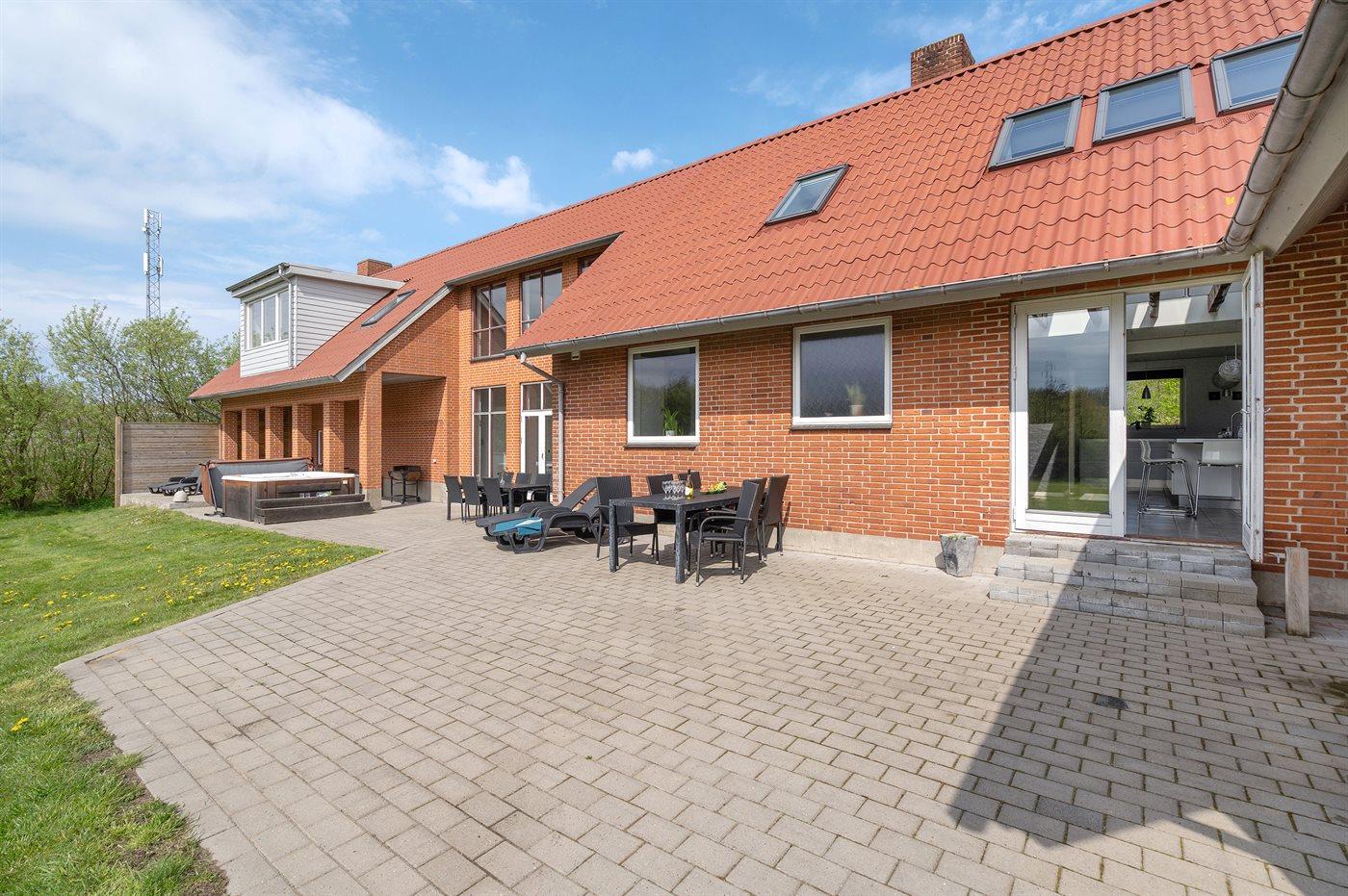 Ruime voormalige boerderij in Hurup Thy met wellness, activiteitenruimte en groot terrein vlak bij fjord.