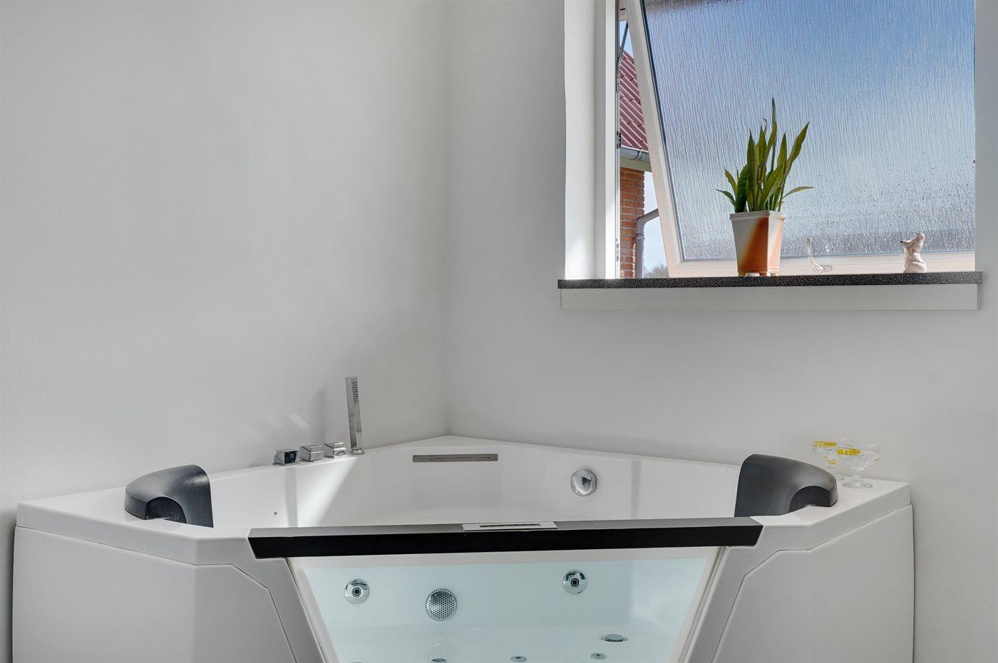 Het binnenbubbelbad (vulwater) biedt ontspanning aan 2 personen.Het buitenbubbelbad (standwater) biedt ontspanning aan 6 personen.