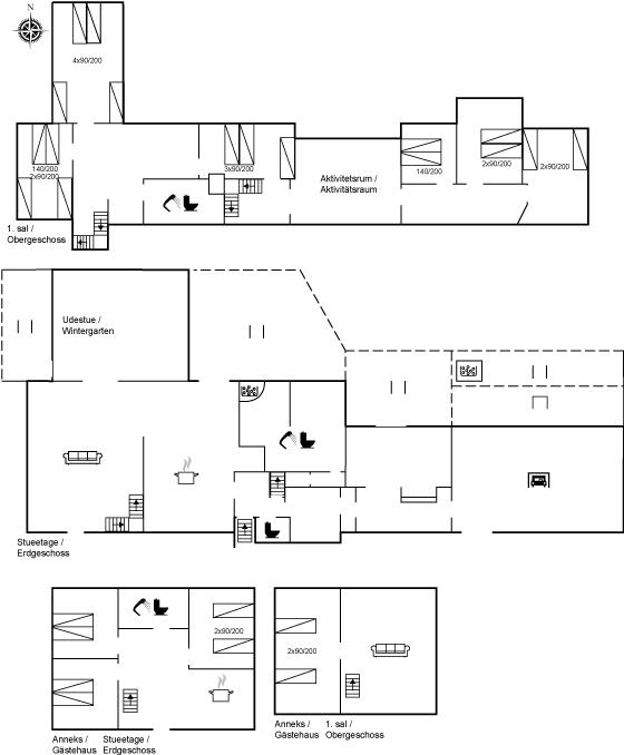 Er zijn in totaal 10 slaapkamers. De slaapplaatsen zijn als volgt verdeeld: 8 slaapplaatsen in tweepersoonsbedden. 17 slaapplaatsen in eenpersoonsbedden. Verder sijn ook 2 stukken kinderbed ter beschikking.