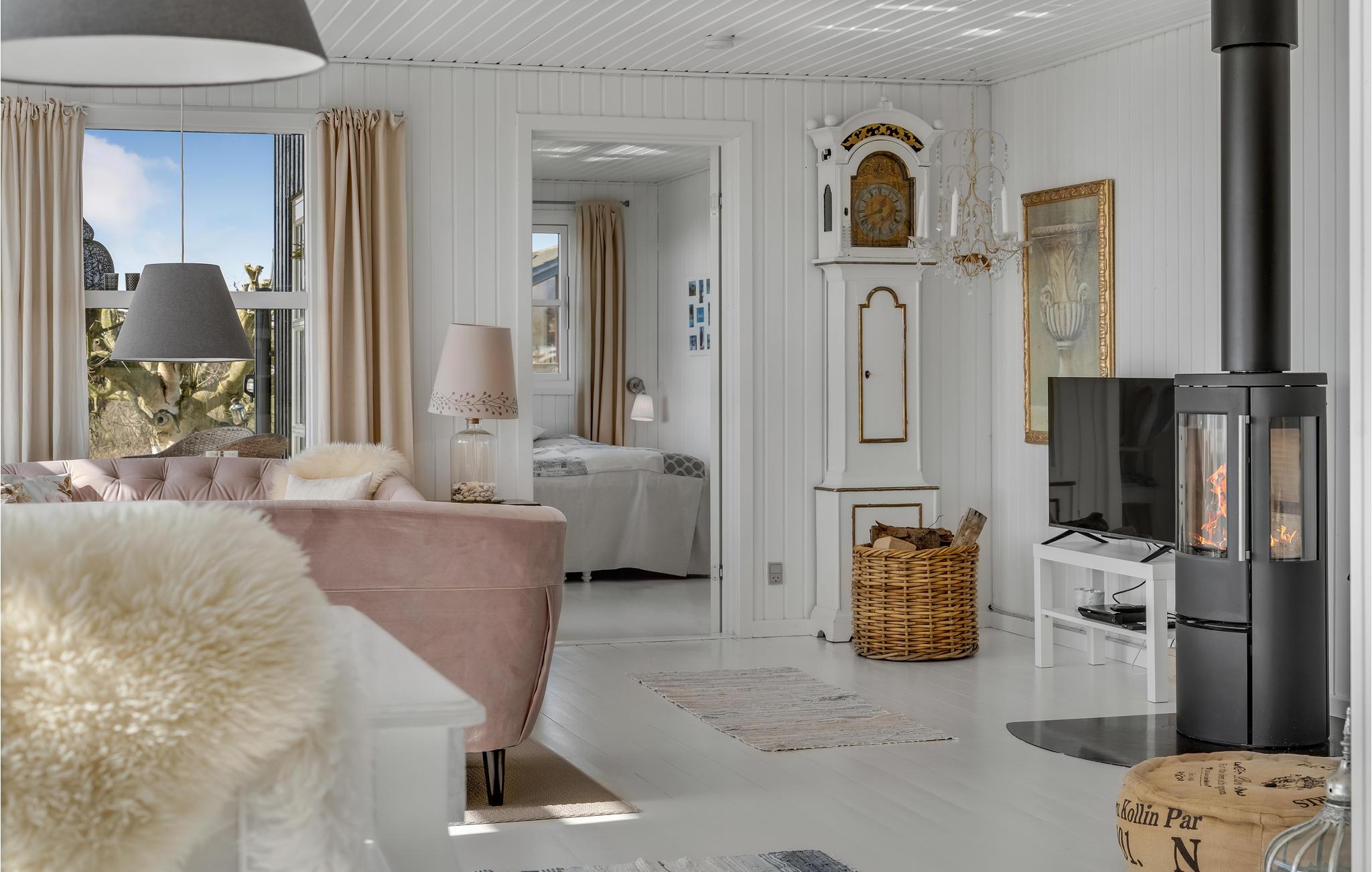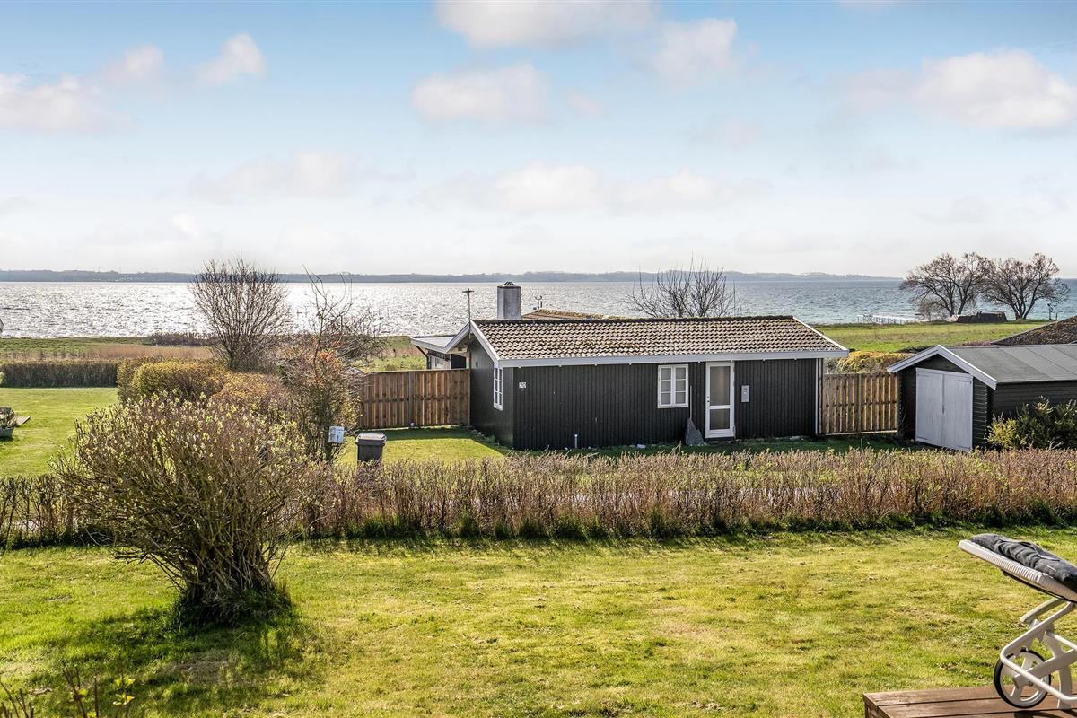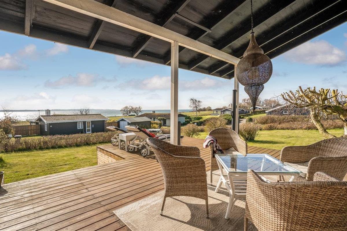 Charmant vakantiehuis nabij zandstrand op Helnæs, met houtkachel en prachtig uitzicht op het water.