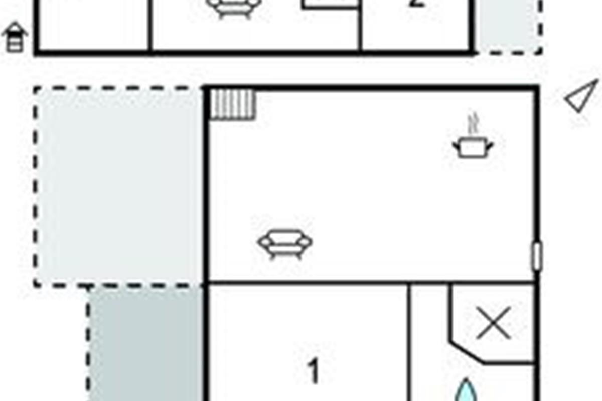 Woonkamer met open keuken - 2 Slaapplaatsen. (Opklapbed(den) of matras(sen)).
