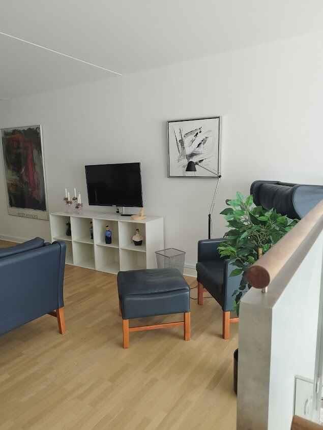 Deze lichte en goed ingerichte vakantiewoning van 117 m² biedt een ontspannen setting voor een familievakantie. De woning is verdeeld over twee verdiepingen en beschikt over twee slaapkamers met in totaal zes slaapplaatsen en drie terrassen waar u de hele dag van het buitenleven kunt genieten. De keuken is ruim en praktisch, met een grote Amerikaanse koelkast en een eethoek voor zes personen. Vanuit hier heeft u directe toegang tot een zuidwestelijk gelegen terras. Op dezelfde verdieping bevindt zich een grote slaapkamer met eigen badkamer en toegang tot een overdekt terras, ideaal voor rustige momenten. Op de bovenste verdieping vindt u een grote woonkamer, een slaapkamer met twee eenpersoonsbedden en nog een terras. De drie terrassen bieden verschillende mogelijkheden om zon of schaduw te vinden, en er is toegang tot gemeenschappelijke was- en strijkfaciliteiten tegen betaling. De omgeving is ideaal voor een vakantie vol natuur en cultuur. Het nabijgelegen strand biedt goede zwemomstandigheden op slechts enkele stappen afstand. In de buurt liggen Kronborg, het Maritiem Museum, het Øresund Aquarium en gezellige foodmarkten, perfect voor uitstapjes voor het hele gezin. U kunt gemakkelijk de veerboot naar Helsingborg nemen voor winkels en bezienswaardigheden, of Louisiana, het Fredensborg-paleis en het Frederiksborg-kasteel bezoeken, allemaal binnen korte rijafstand. Met de trein bereikt u het centrum van Kopenhagen in ongeveer 45 minuten, waar Tivoli en de dierentuin op u wachten. Parkeren gebeurt tegen betaling.