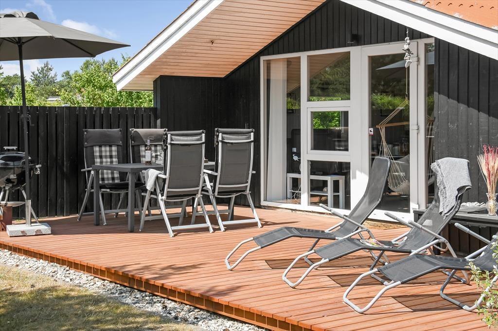 Sofern Sie mit Kindern anreisen, müssen Sie lediglich noch ein weiteres Ferienhaus passieren, bevor Sie am Ende des Weges auf einen guten Spielplatz samt einer Bolzfläche stoßen. Falls es Sie eher an den nur 800 Meter entfernten Strand ziehen sollte, spazieren Sie einfach über die kleinen Ferienhauswege hinunter ans Wasser. Der Hemmet Strand ist ein kinderfreundlicher Badestrand, der mit einer Badebrücke versehen ist, die Ihnen den Zugang in größere Wassertiefen erleichtert. Wenn Sie sich vorzugsweise in der Gegend aufhalten möchten, können Sie Ihre Urlaubstage mit längeren Spaziergängen und Radtouren entlang der friedvollen und landschaftlich schönen Küstenlinie des Ringkøbing Fjords verbringen. Ihre Einkäufe erledigen Sie problemlos im schnell erreichbaren und Supermarkt in der Ortschaft Hemmet. Für ein wenig weitere Ausflüge bieten sich beispielsweise das belebte Freilichtmuseum Bork Vikingehavn, das beeindruckende Vogelschutzgebiet Tipperne und der interessante Fischereihafenort Hvide Sande an der Nordseeküste an.