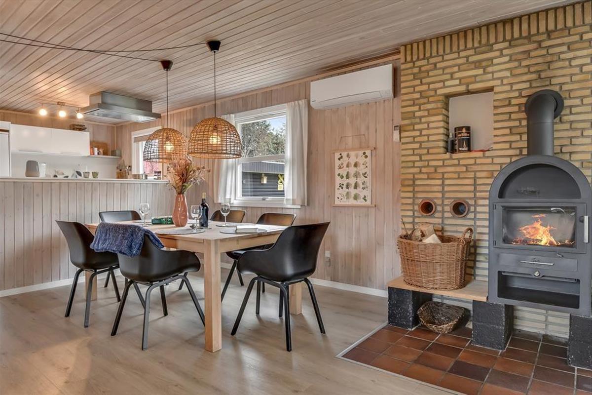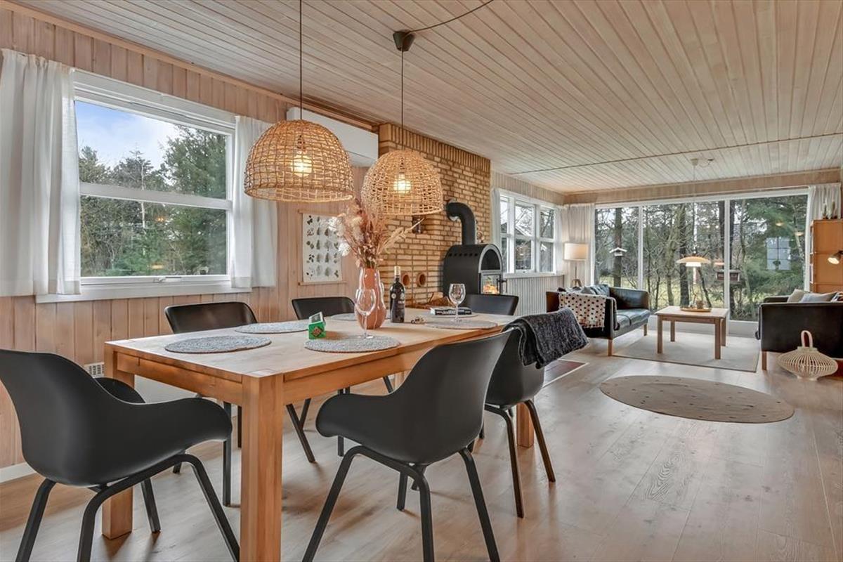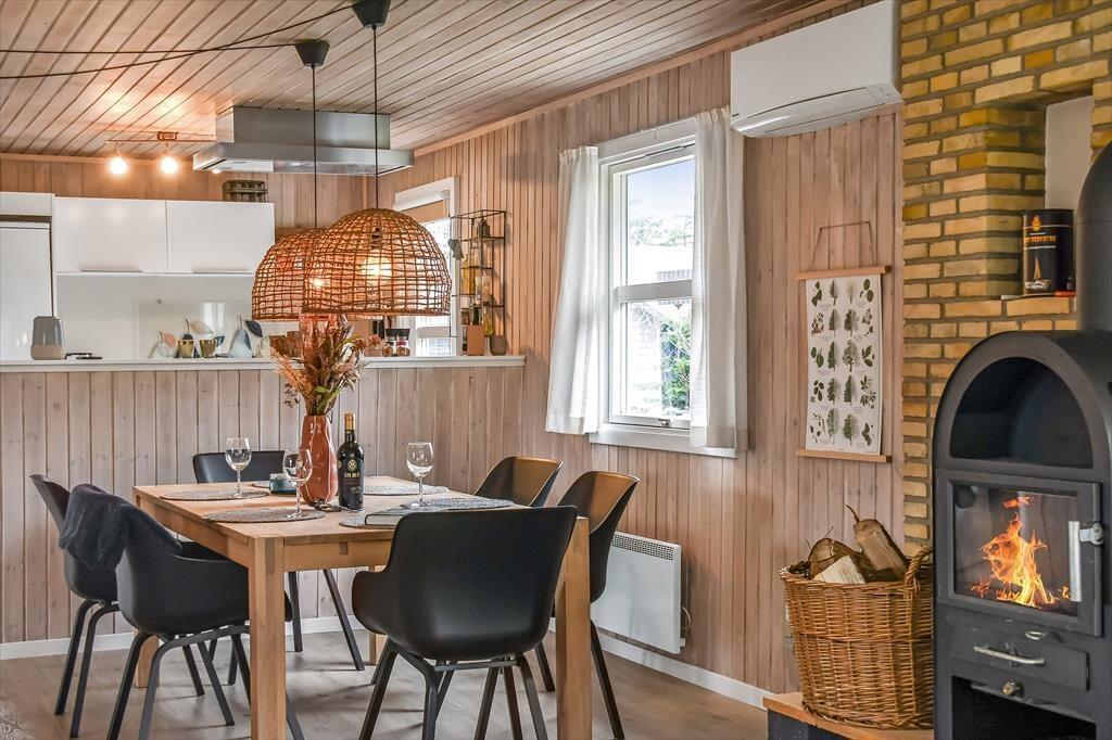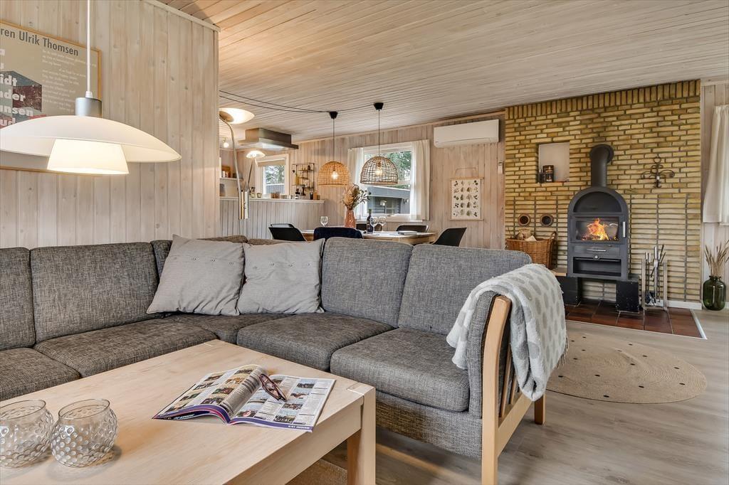 Nach der umfassenden, überaus gelungenen Renovierung im Jahr 2021 präsentieren sich Ihnen alle Räumlichkeiten dieses Ferienhauses in ganz einladender Weise mit einem modernen Interieur und zahlreichen schönen Einrichtungsdetails, die dem Haus viel Gemütlichkeit verleihen. Mit seinen drei Schlafzimmern, dem Badezimmer und dem separaten WC eignet sich das Ferienhaus hervorragend für einen Urlaub mit bis zu sechs Personen. Erholsame Momente voller Wellnessflair versprechen Ihnen der Whirlpool und die Sauna, die Ihrem Körper nach einem langen, erlebnisreichen Urlaubstag neue Energie einhauchen. Ausgesprochen schön und entspannt geht es auch im großen Aufenthaltsraum zu, der die offene Küche, den Essbereich und mehrere schöne Sofaecken harmonisch in sich vereint. Während Sie gemeinsam zu Abend essen, zusammen am Esstisch spielen, lesen oder einen spannenden Film anschauen, sorgt das behaglich knisternde Feuer im Kaminofen für eine ganz bezaubernde und überaus gemütliche Ferienhausatmosphäre.