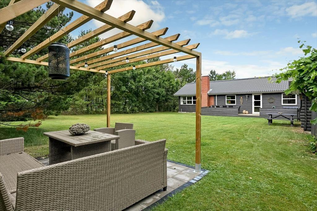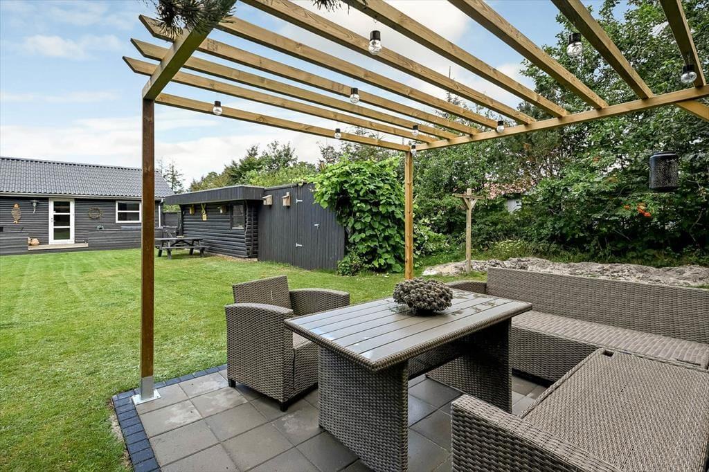 Südöstlich des Hauses liegt die schöne Terrasse, auf der Gartenmöbel, Liegestühle und ein Grill zu herrlichen Stunden unter dem hohen nordischen Himmel einladen. Auf Ihrem ungestörten und eingezäuntes Grundstück werden Sie sich besten erholen und dabei den Urlaubsfrieden und die Sonne in vollen Zügen genießen. Die große Grasfläche wird Sie und Ihre Kinder zwischendurch immer wieder zum vergnügten Umhertollen und zu Gartenspielen aller Art animieren.
