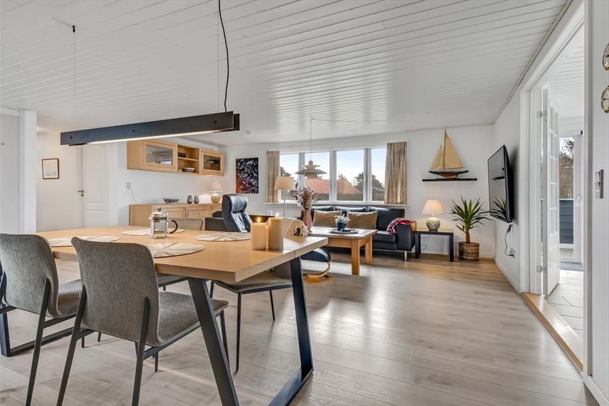 Mit seinen 113 m2 ist das Ferienhaus wunderbar geräumig und der Grundriss ist gut durchdacht, so dass es möglich ist, im Innenbereich bis zu sechs Personen unterzubringen. Wenn Sie nicht lange in einem der schönen Schlafzimmer des Hauses schlafen, ist es großartig, im Wohnzimmer zu bleiben – zum Beispiel können Sie sich mit einem spannenden Buch in den Sessel neben dem Holzofen setzen, oder Sie finden Brettspiele und Würfel aus Ihrem Urlaubsgepäck und machen Sie sich bereit für das gemeinsame Genießen mit der Familie am Esstisch. Es kann auch sein, dass Sie Lust haben, es sich im Sofa mit einem guten Film auf dem Flachbildfernseher gemütlich zu machen, und was auch immer Ihnen einfällt, es sind nur ein paar Schritte bis zur Küche, falls Sie noch mehr Kaffee in der Küche benötigen Tasse oder Süßigkeiten in den Snackschalen.