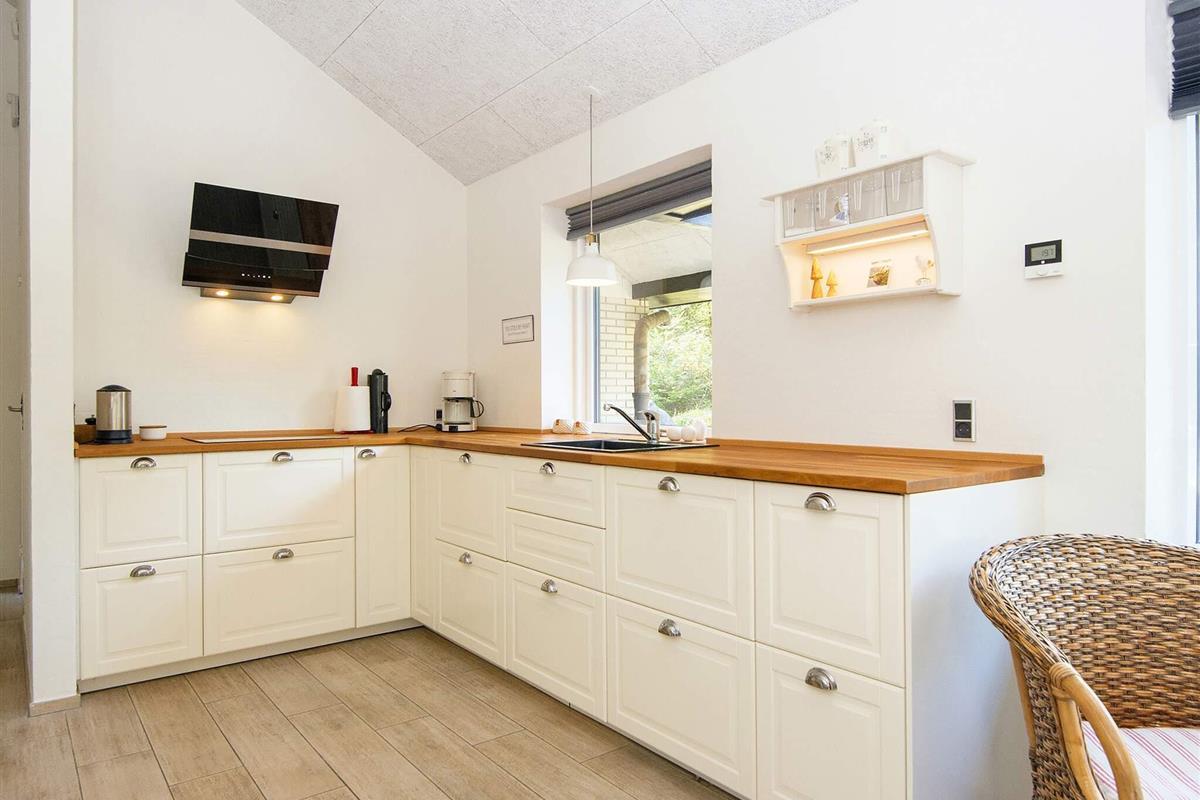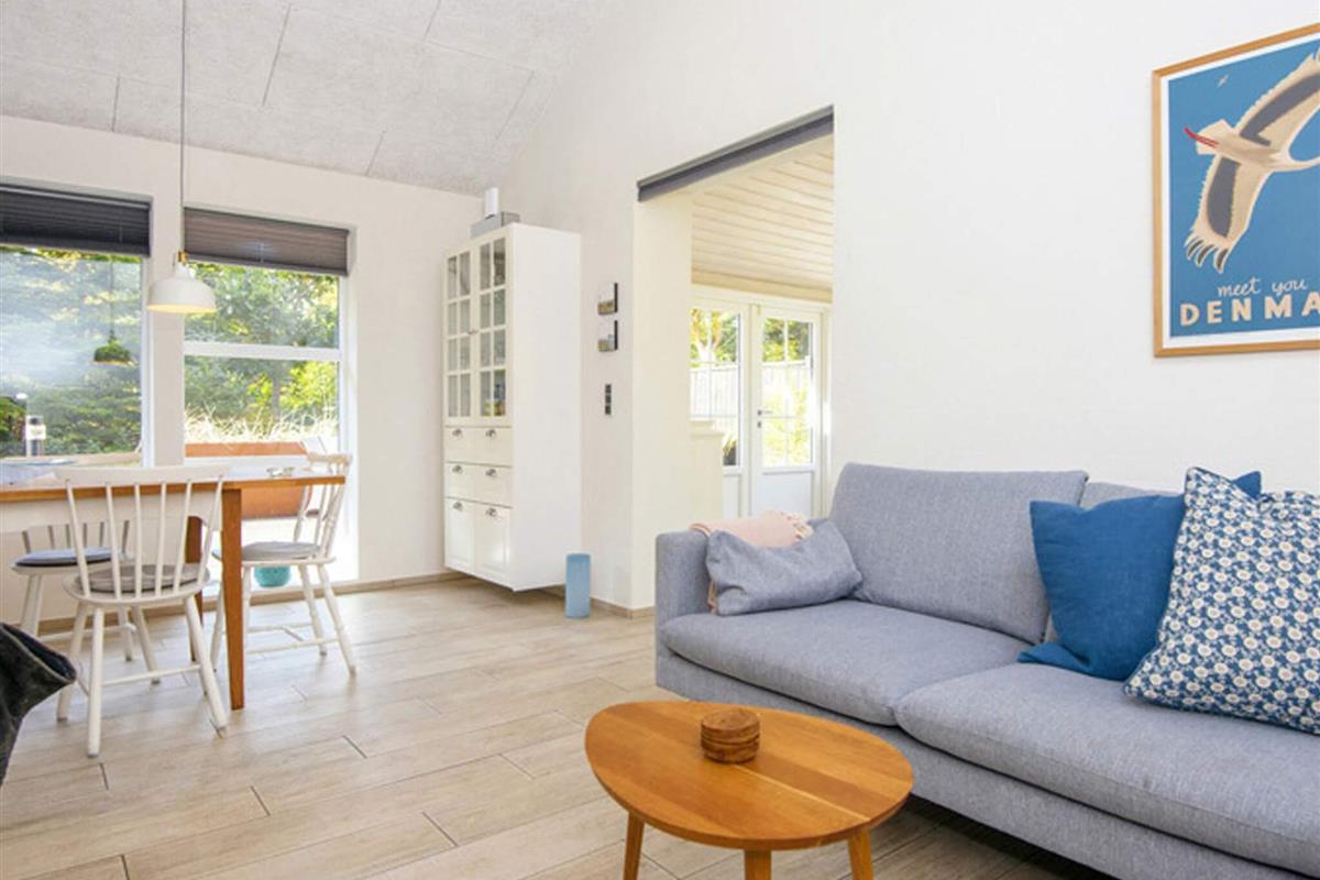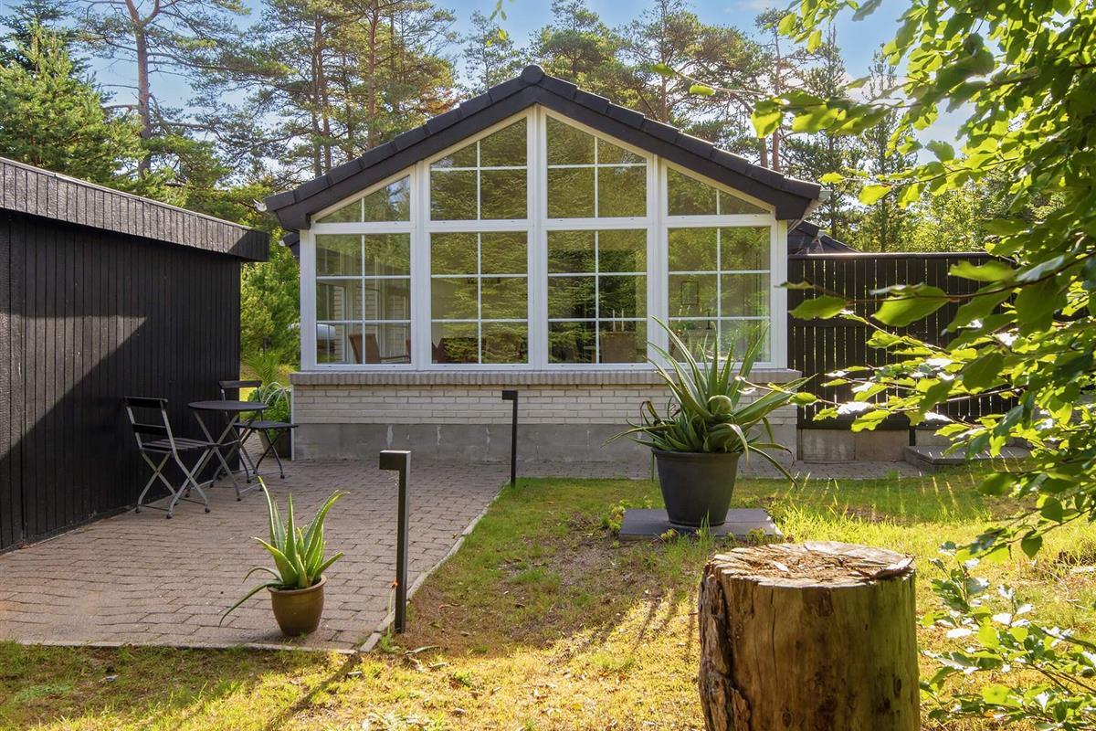 Ansprechendes Ferienhaus mit Whirlpool, auf einer kleinen Lichtung mitten im Wald und dennoch nur etwa 4 Minuten Fußweg von Hemmet Strand entfernt gelegen.