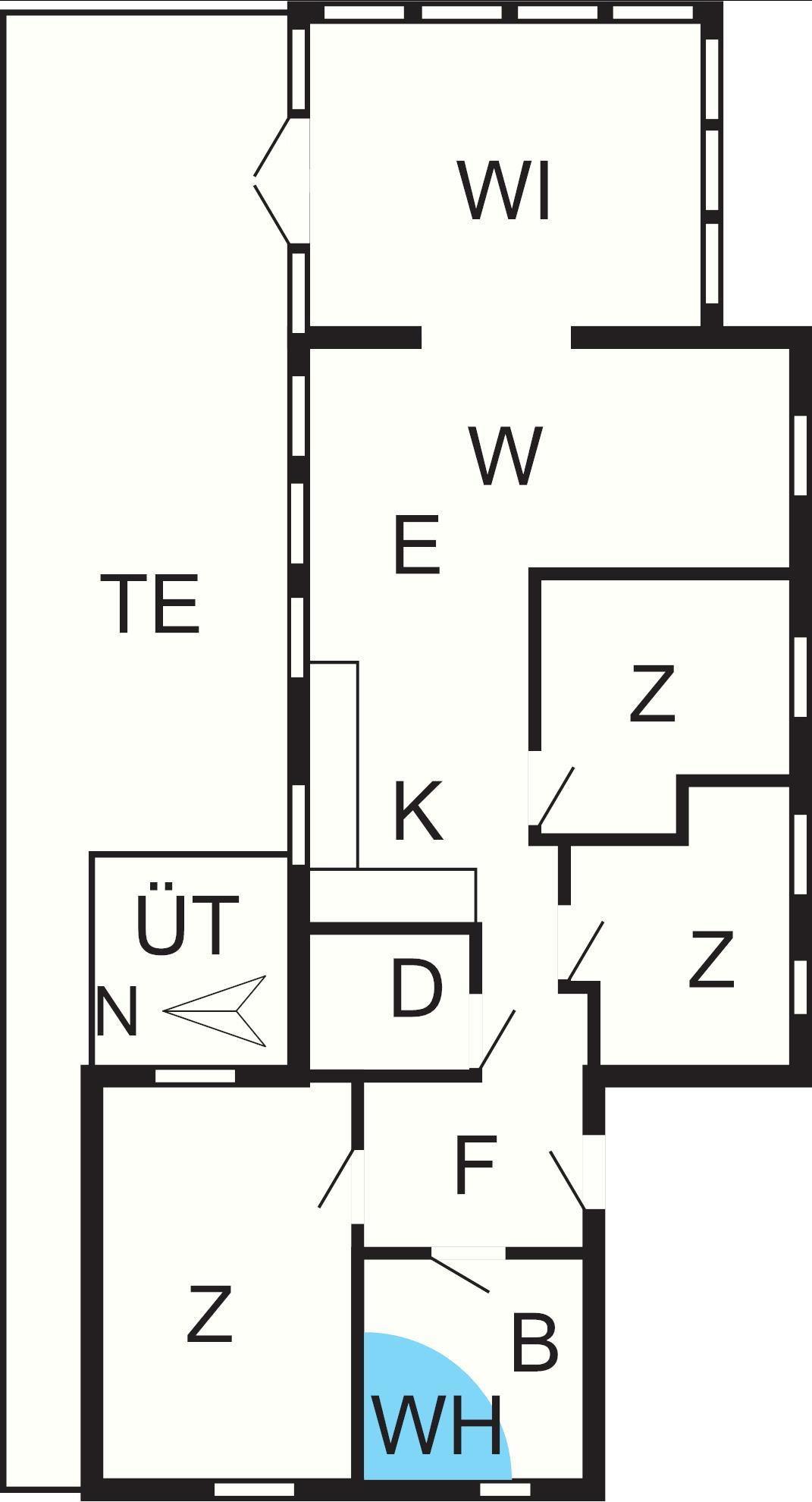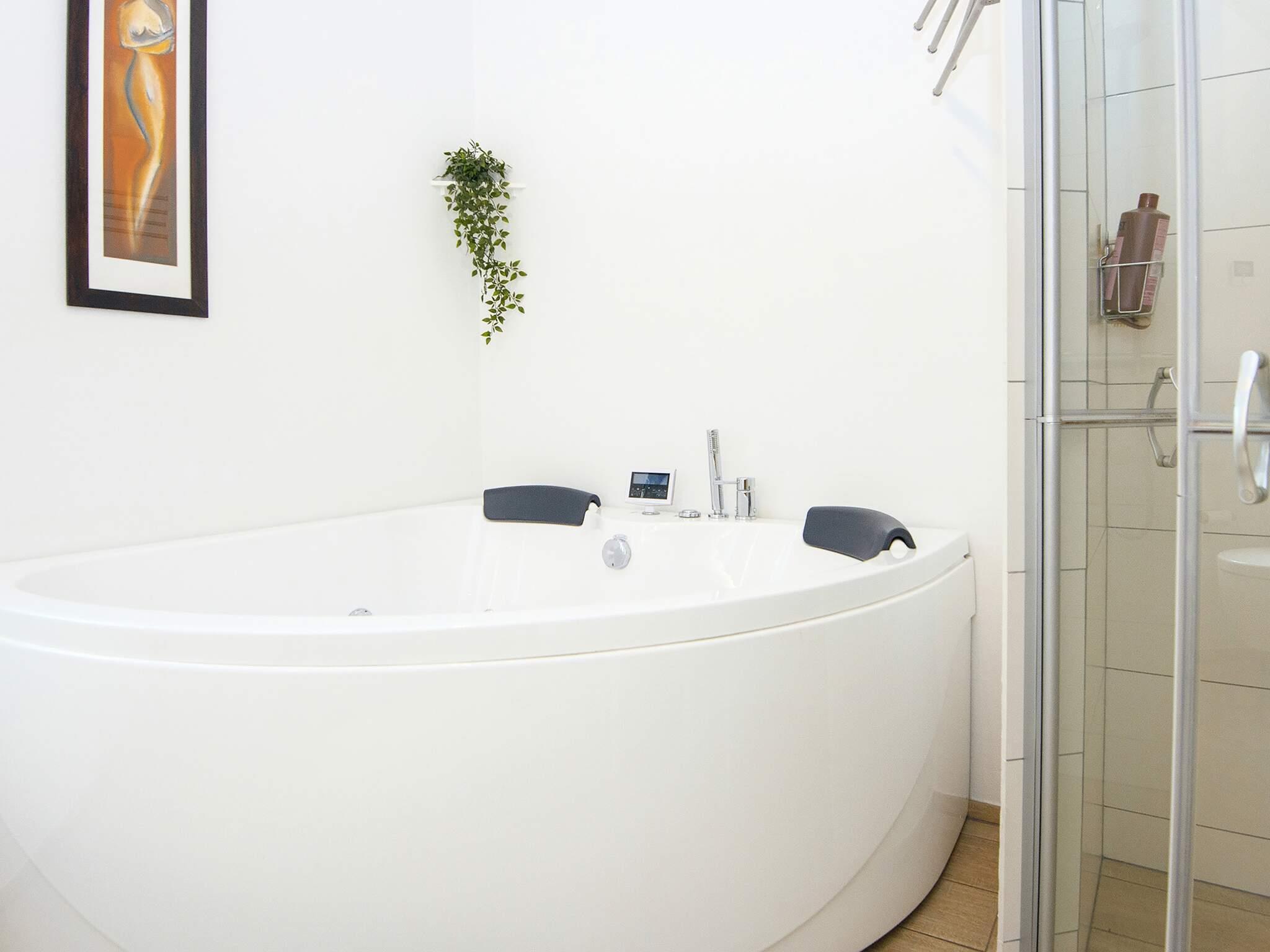 Bad: WC, Waschb., Dusche, Fußbodenheiz.