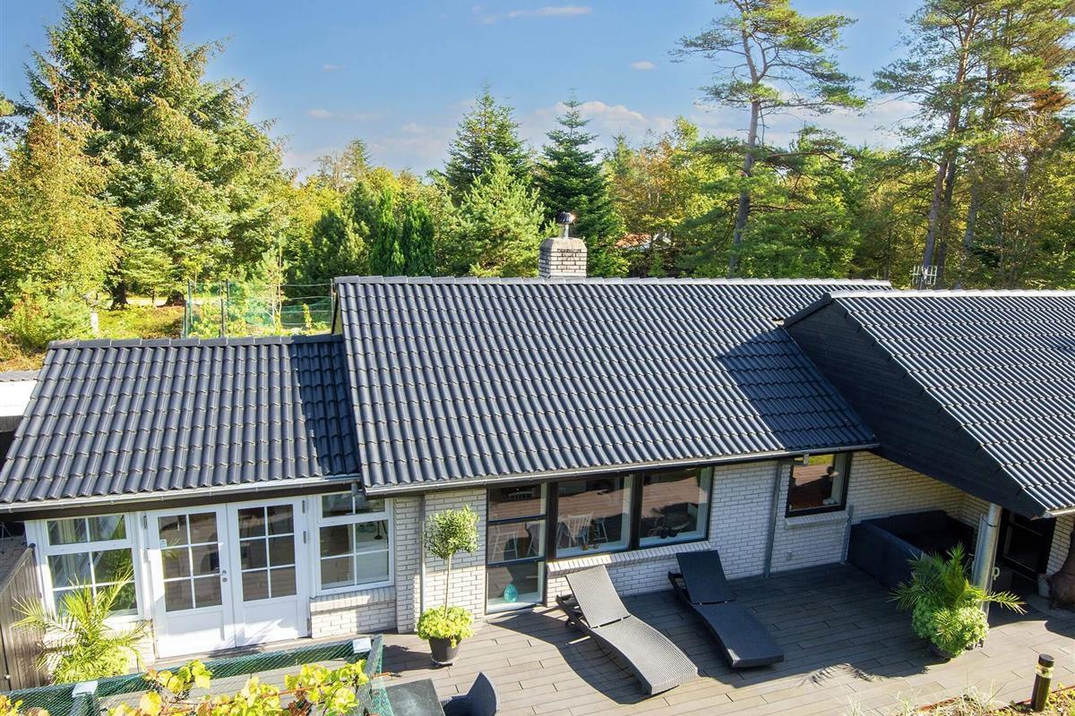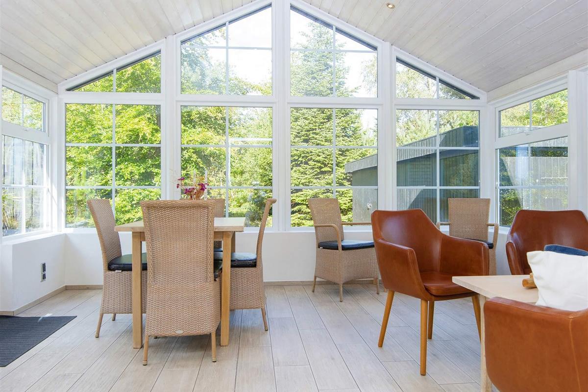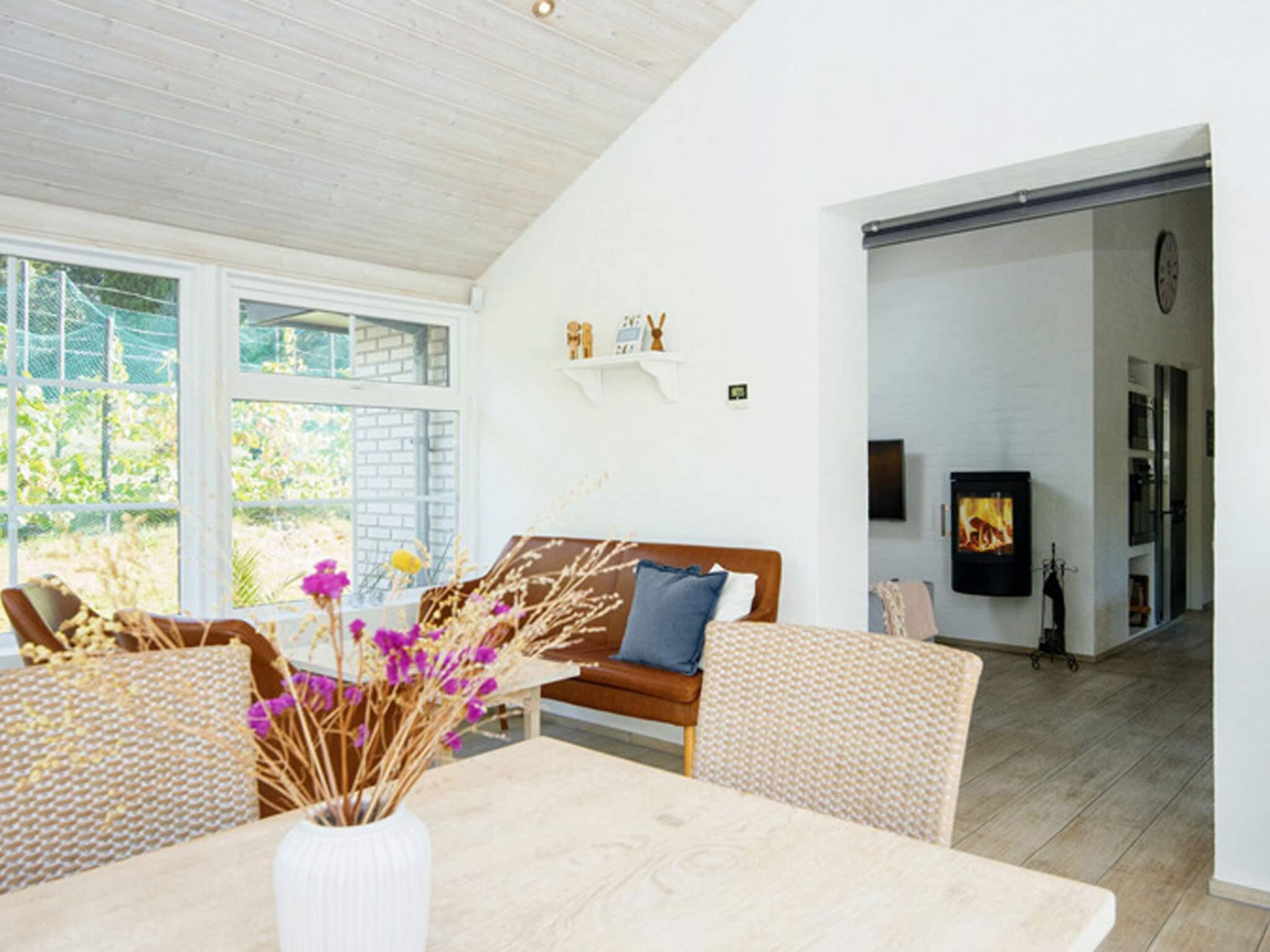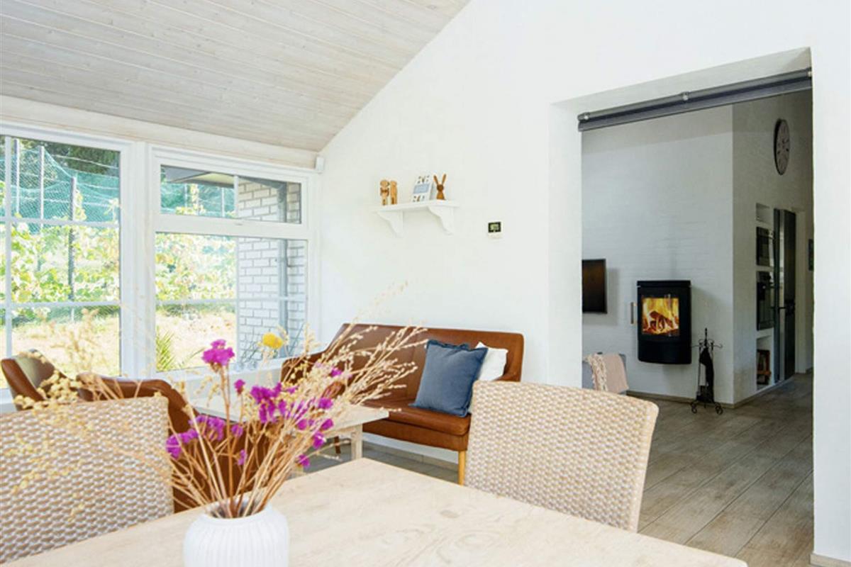 Im Inneren des Hauses erwartet Sie ein Masterbedroom mit eigenem TV sowie zwei weitere Schlafzimmer. Die Küchenausstattung ist zeitgemäß und umfassend, die tägliche Hausarbeit somit ein Leichtes. Die verglaste Veranda verlängert die Sommertage und bietet Schutz an kühleren Tagen. Durch die großen Fenster des Küchen-/Wohnbereiches hat man Ausblick in die umliegende Natur. Die Ruhe des Waldes und der schöne Whirlpool des Hauses tragen zur Erholung vom Alltagsstress bei. Die zahlreichen Bäume auf dem Naturgrundstück vermitteln einen besonders naturnahen Eindruck. Mit etwas Glück beobachtet man Hasen oder Eichhörnchen auf dem Grundstück. Die umliegenden Bäume bieten zudem auch Wind-, Sonnen- und Sichtschutz auf der Terrasse.