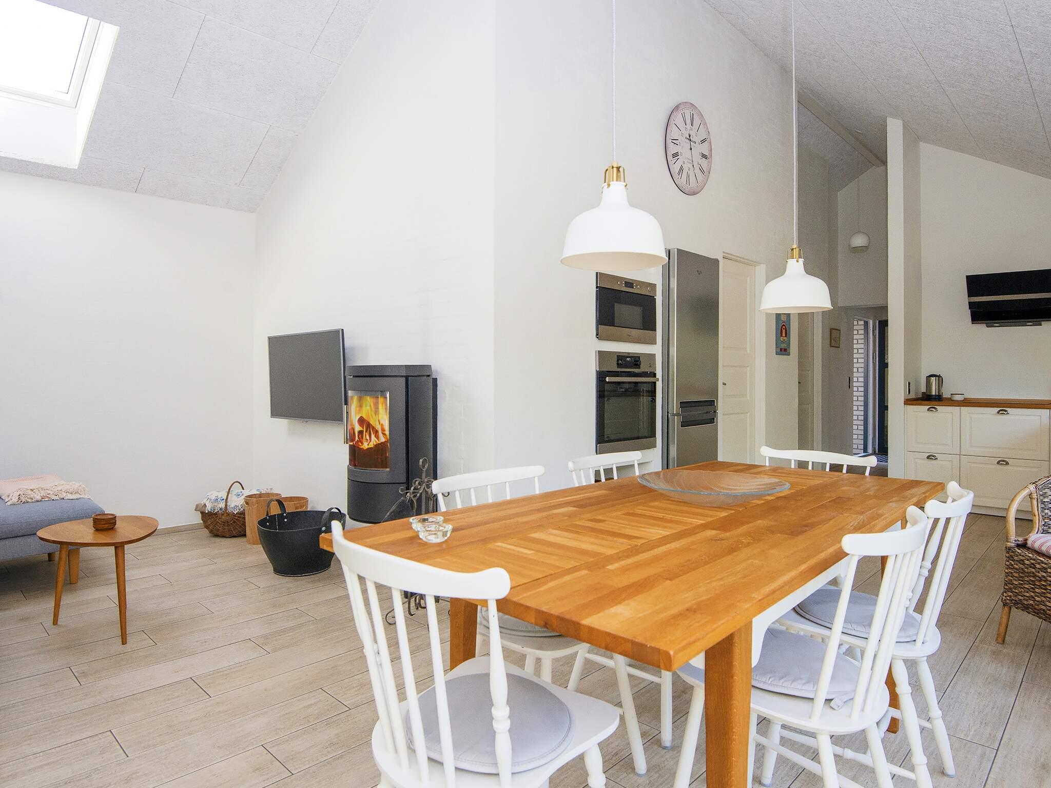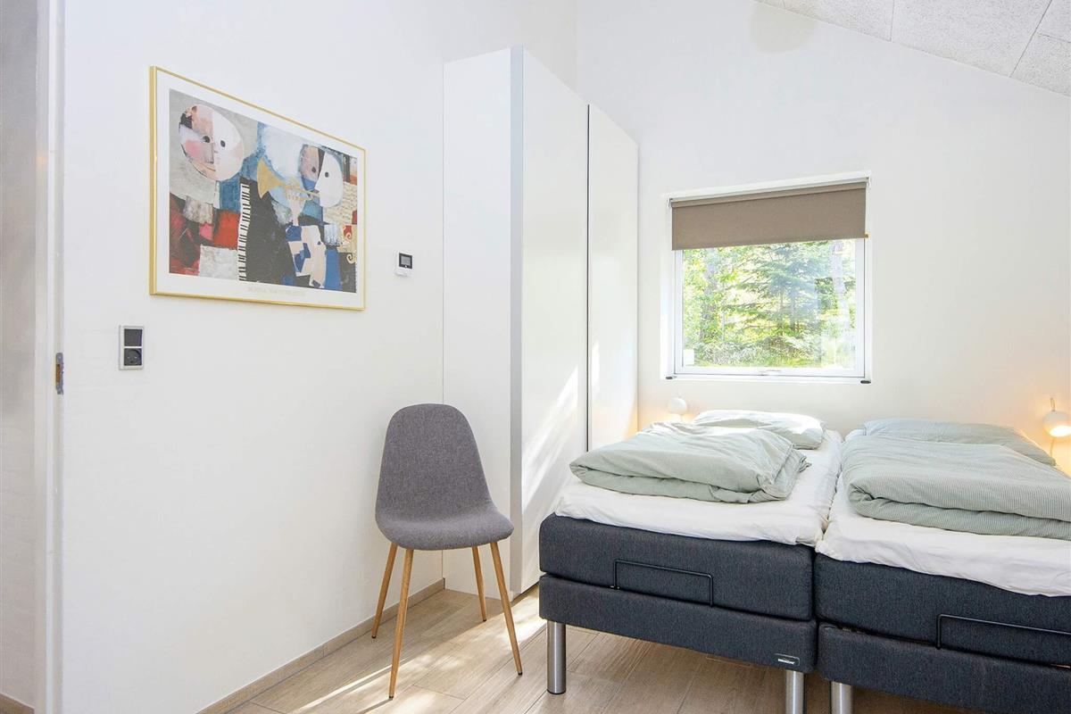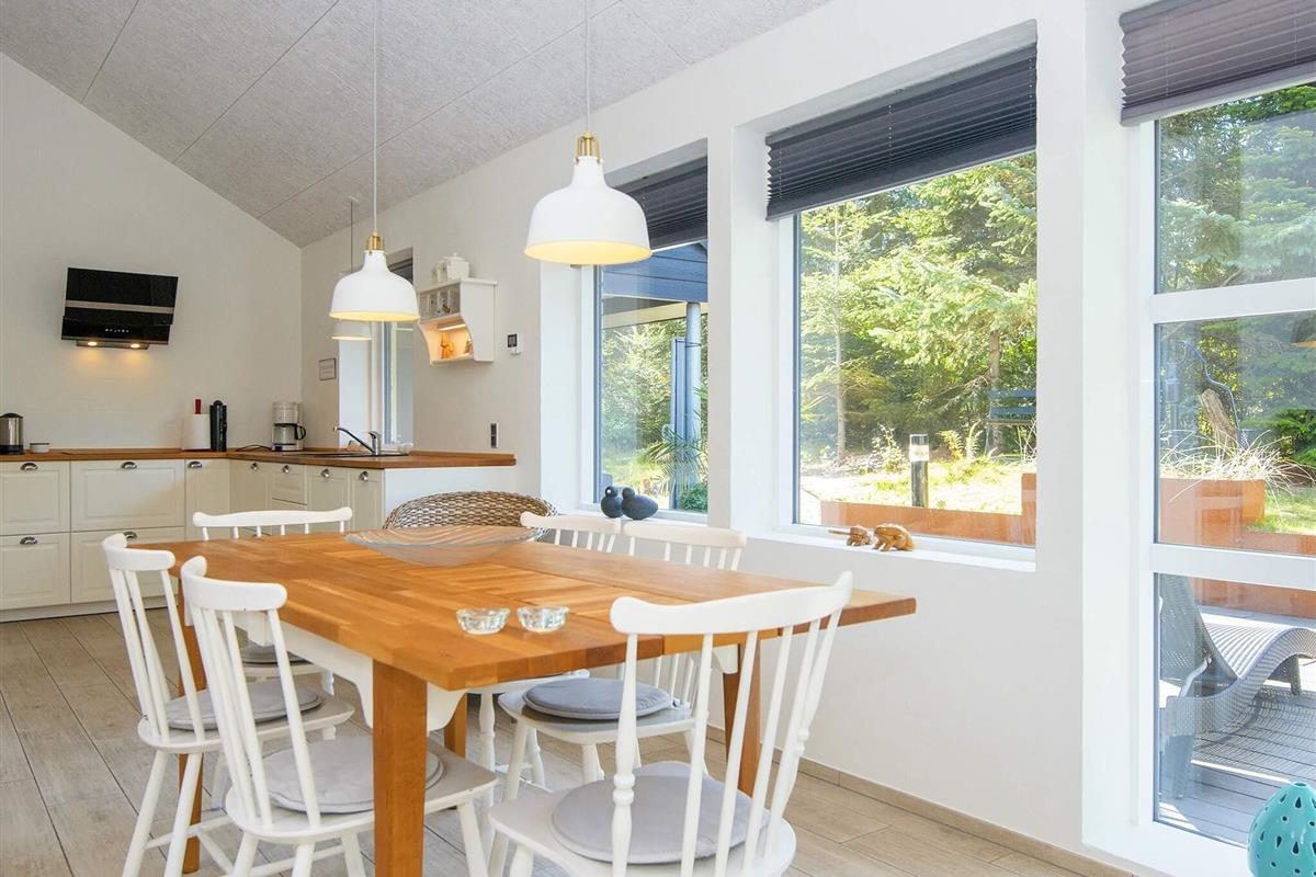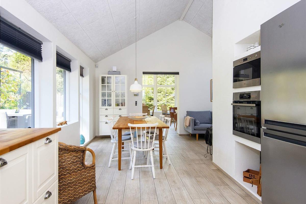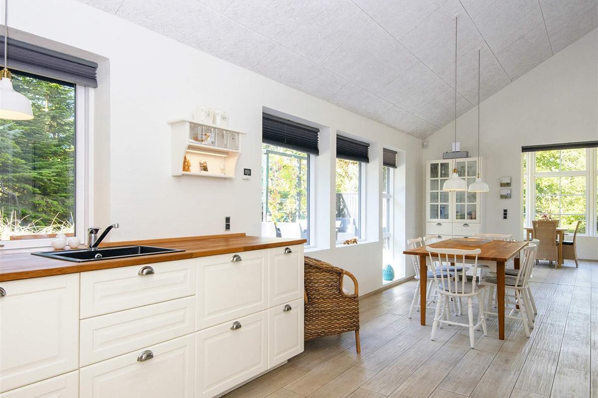 Im Inneren des Hauses erwartet Sie ein Masterbedroom mit eigenem TV sowie zwei weitere Schlafzimmer. Die Küchenausstattung ist zeitgemäß und umfassend, die tägliche Hausarbeit somit ein Leichtes. Die verglaste Veranda verlängert die Sommertage und bietet Schutz an kühleren Tagen. Durch die großen Fenster des Küchen-/Wohnbereiches hat man Ausblick in die umliegende Natur. Die Ruhe des Waldes und der schöne Whirlpool des Hauses tragen zur Erholung vom Alltagsstress bei. Die zahlreichen Bäume auf dem Naturgrundstück vermitteln einen besonders naturnahen Eindruck. Mit etwas Glück beobachtet man Hasen oder Eichhörnchen auf dem Grundstück. Die umliegenden Bäume bieten zudem auch Wind-, Sonnen- und Sichtschutz auf der Terrasse.