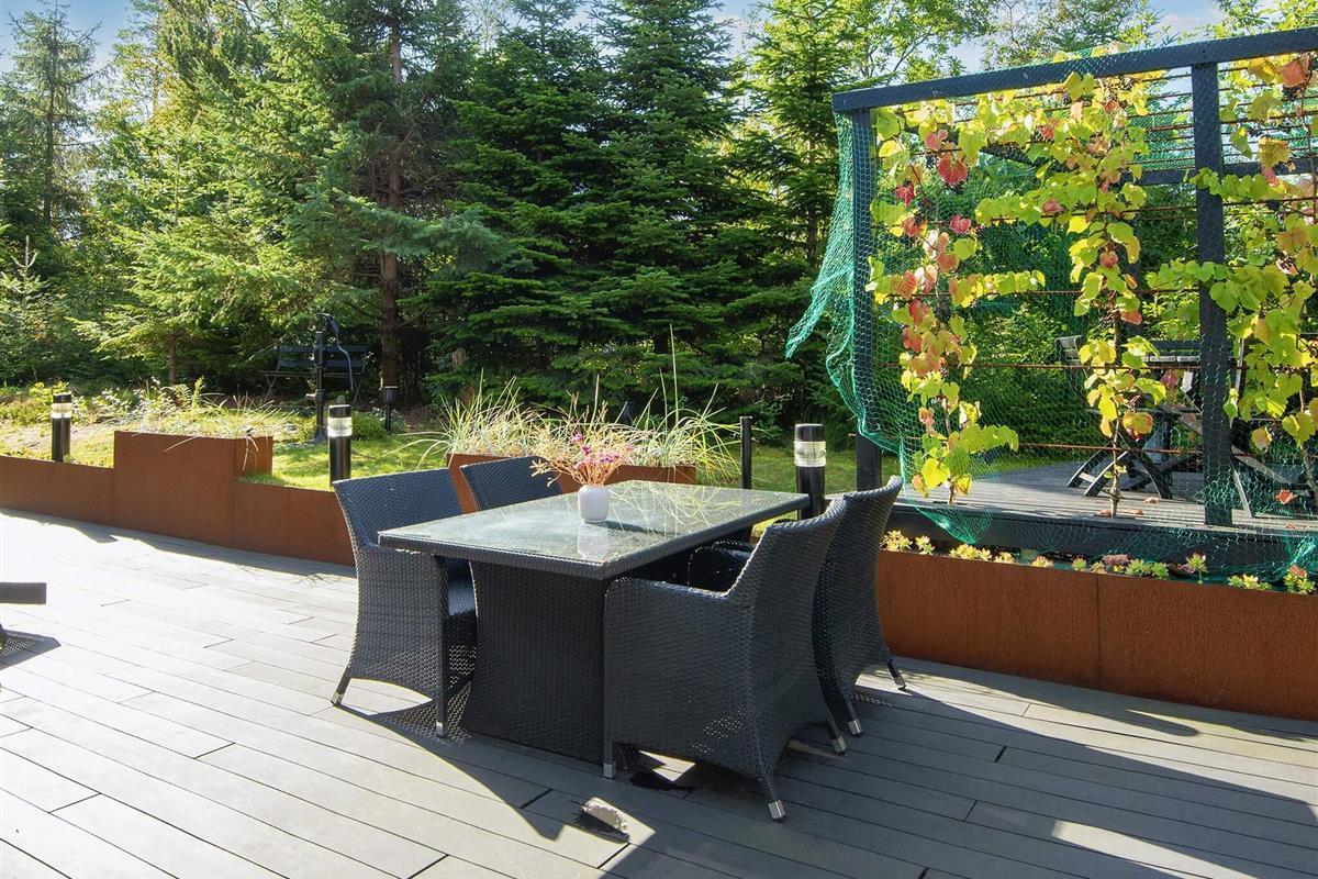 Und: Terrasse, überd. Terrasse, E-Heiz., Luft-Wasser-Wärmepumpe, Grill, Naturgrundst. m. Bäumen 1500 m2, moderne Möblierung, Ferienhausgebiet, Nichtraucherhaus
