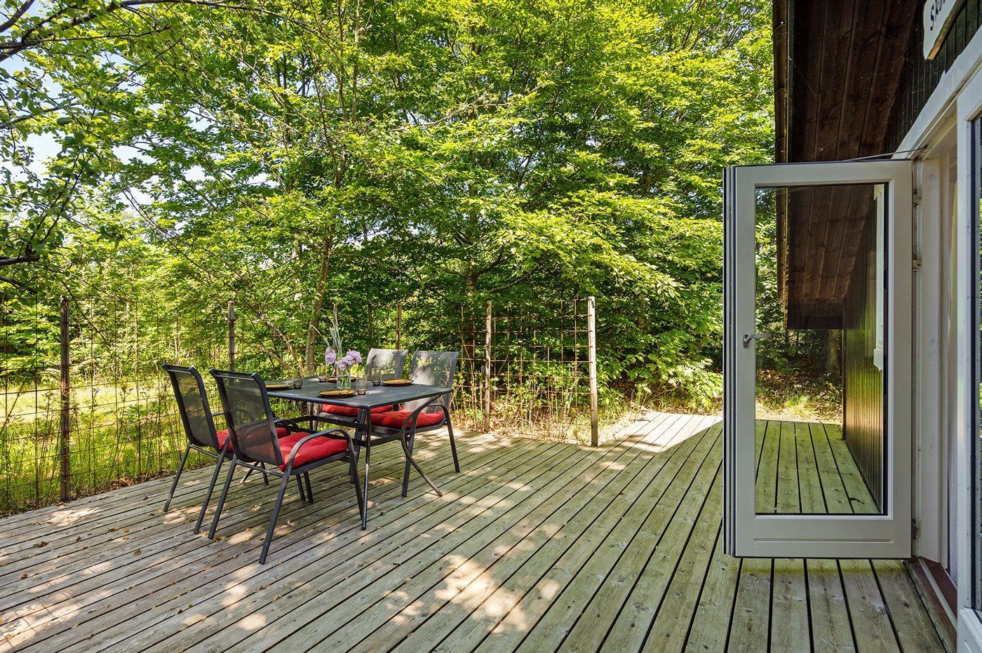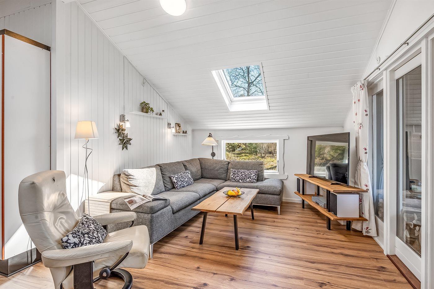De vakantiewoning is gelegen op een 1539 m² groot natuural grond. Afstand tot de fjord 450 m. Dichtstbijzijnde winkel 4500 m. Bij de vakantiewoning hoort 20 m² terras. Daarnaast is er een 7 m² groot overdekt terras. Afstand tot speelplaats 100 m.Garage ter beschikking. Parkeerplaats bij het huis.