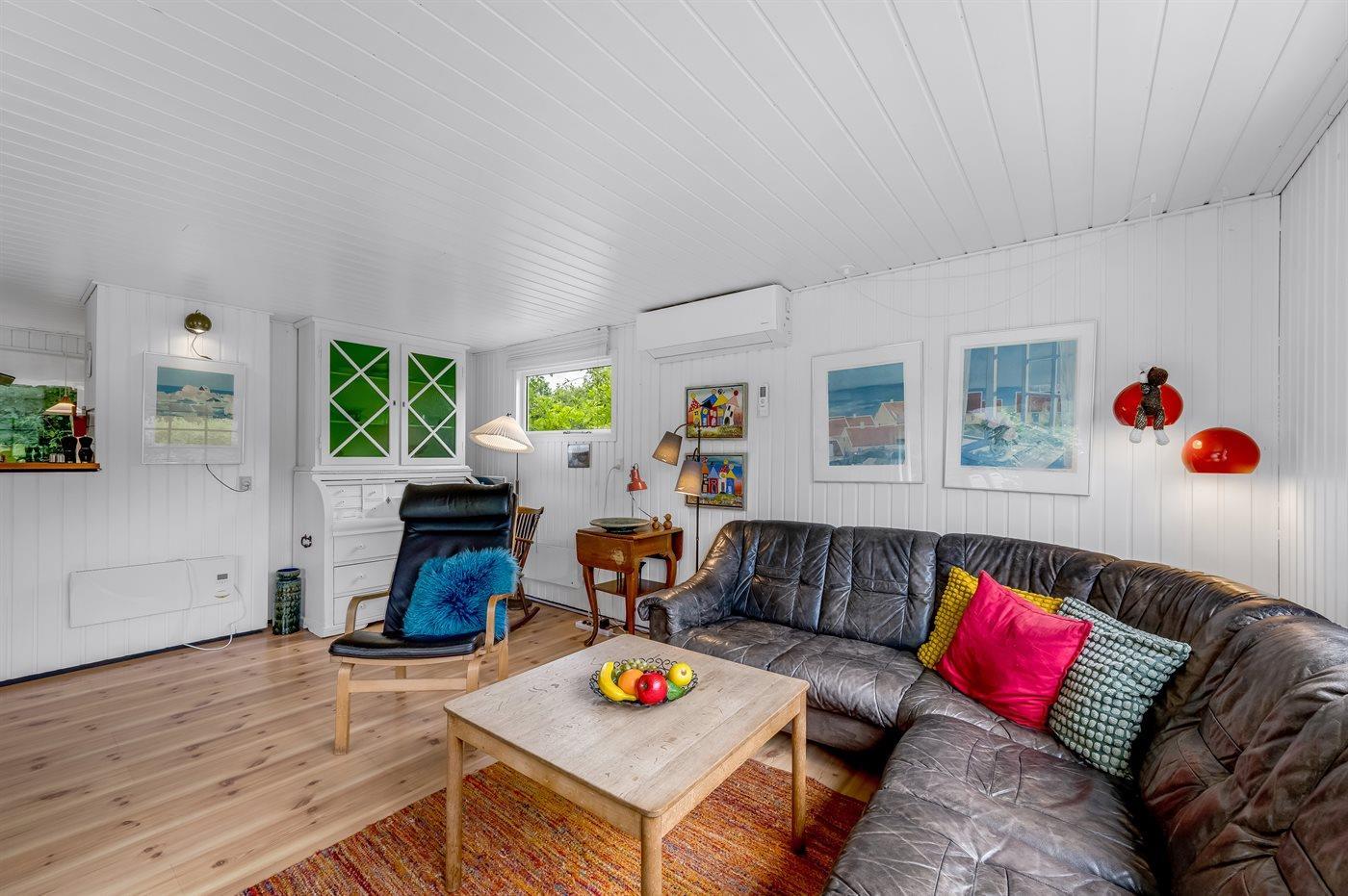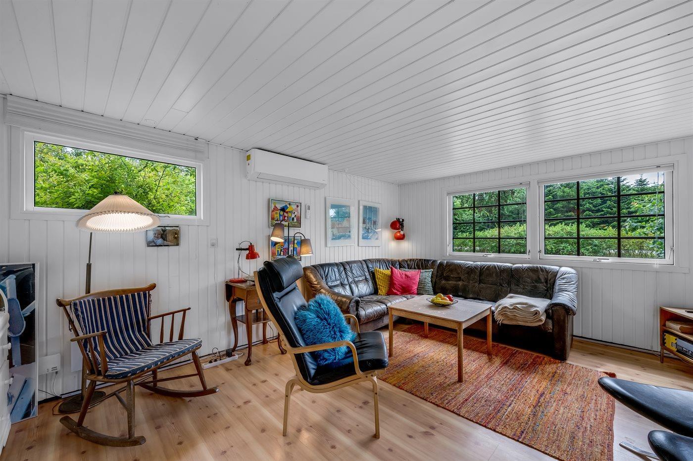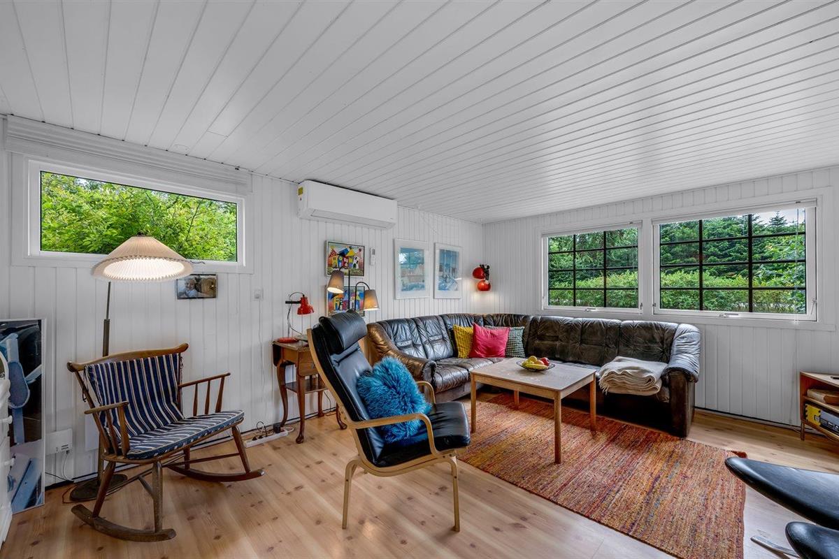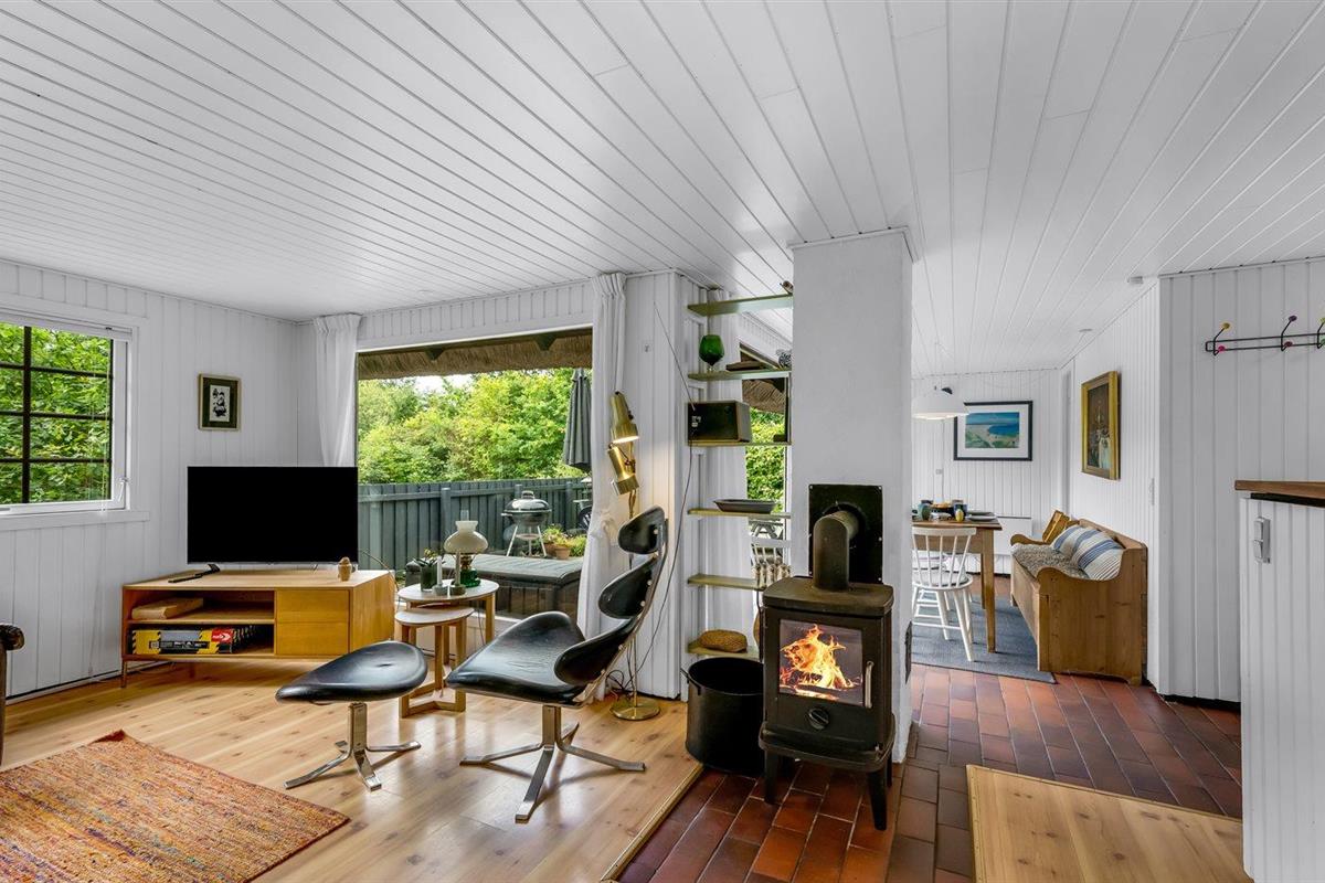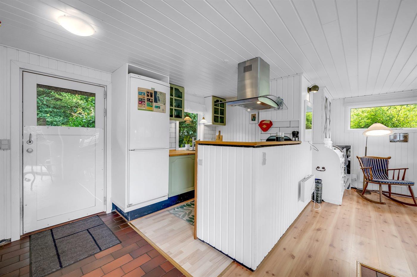 De vakantiewoning is gelegen op een 964 m² groot natuural grond. De grond is omheind. Afstand tot de zee 15000 m. Afstand tot de fjord 500 m. Dichtstbijzijnde winkel 4500 m. Bij de vakantiewoning hoort terras en beschut terras. Gereedschapsruimte. Parkeerplaats bij het huis.