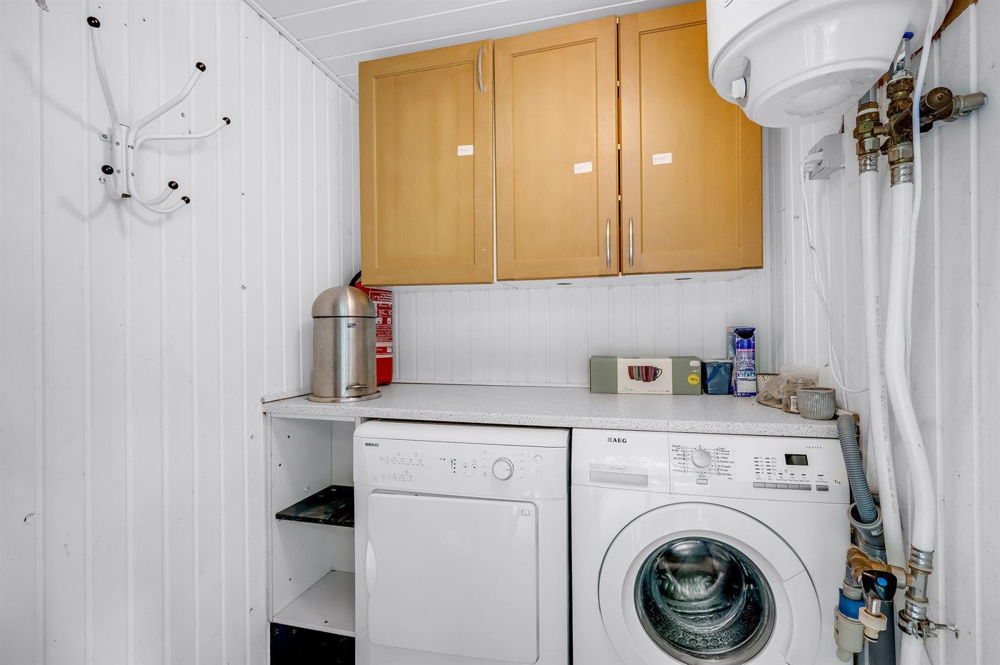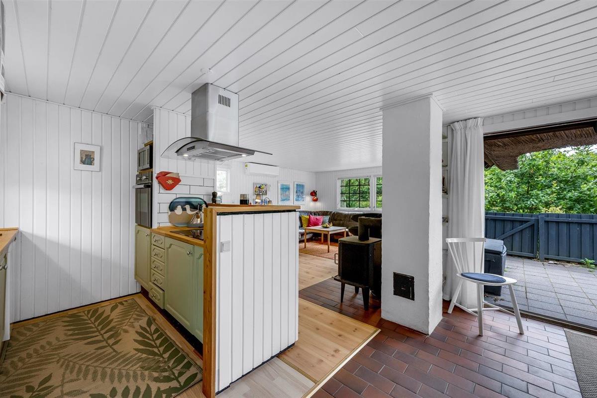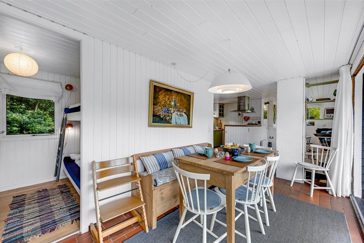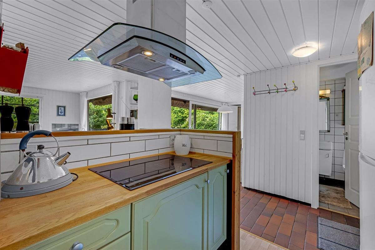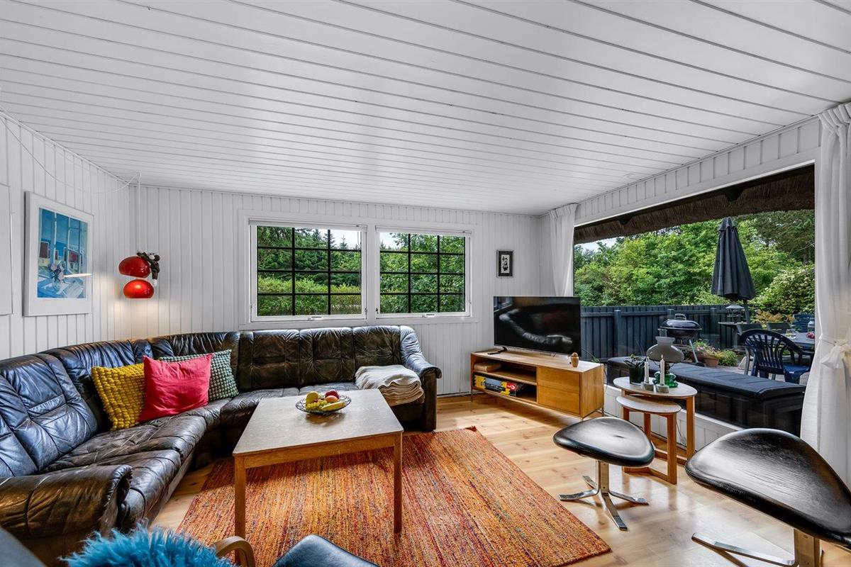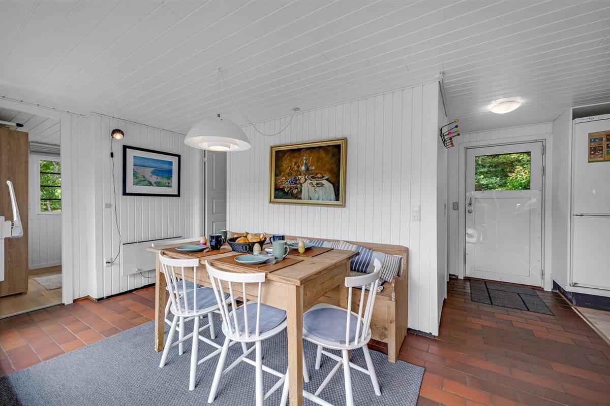 De vakantiewoning is gelegen op een 964 m² groot natuural grond. De grond is omheind. Afstand tot de zee 15000 m. Afstand tot de fjord 500 m. Dichtstbijzijnde winkel 4500 m. Bij de vakantiewoning hoort terras en beschut terras. Gereedschapsruimte. Parkeerplaats bij het huis.
