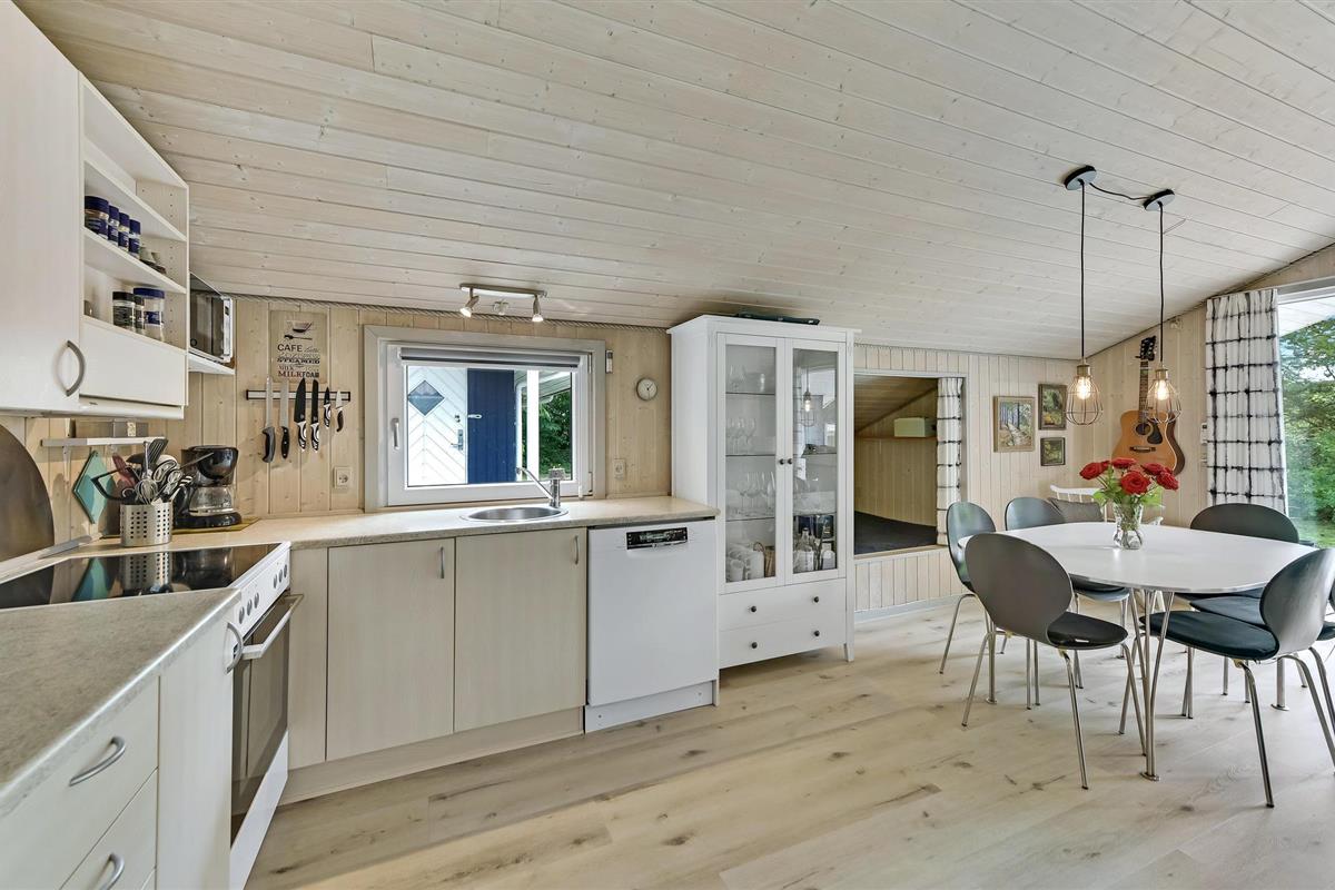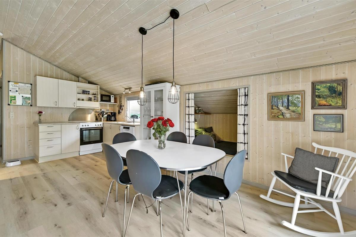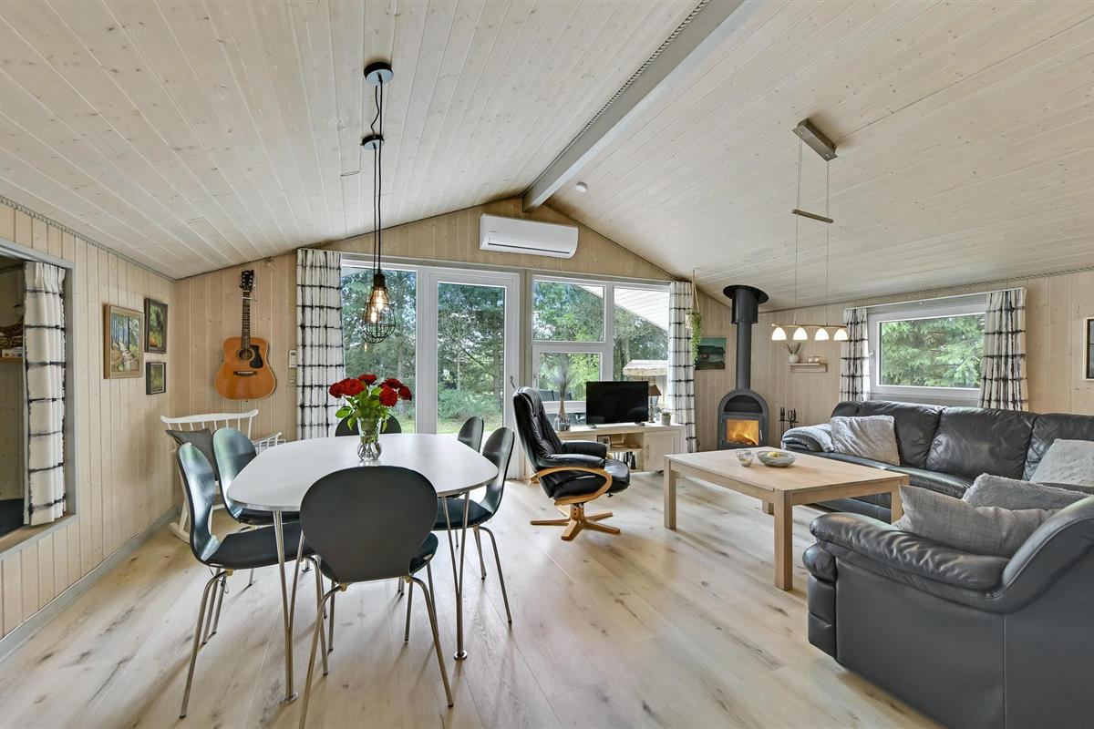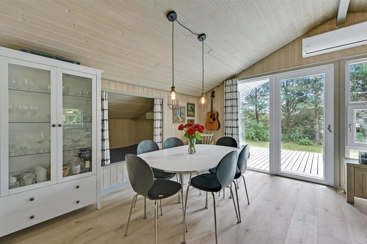 Vlakbij Ringkøbing Fjord vindt u dit idyllisch gelegen vakantiehuis, beschut door grote pijnbomen. Het huis is licht ingericht en zeer praktisch uitgerust, zodat het je aan niets ontbreekt. Breng ontspannende uren door in de zithoek met kaarten of een goede film en warm jezelf op voor de houtkachel in de koelere maanden.