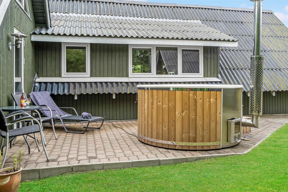 Er is een houten terras bij het huis en een betegeld terras met een open haard waar je 's avonds kunt opwarmen en brood op een stokje kunt bakken.