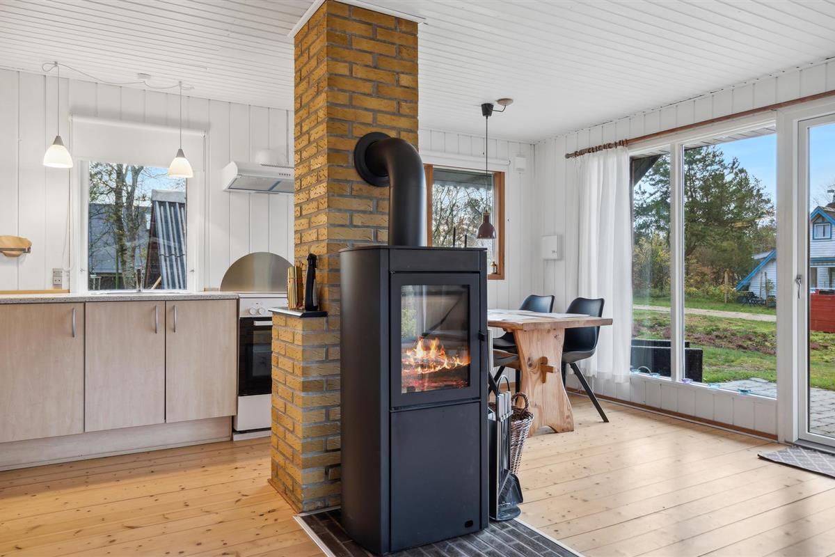 Gezellig houten vakantiehuis nabij Ringkøbing Fjord met open haard en zonnig terras voor een ontspannen verblijf.