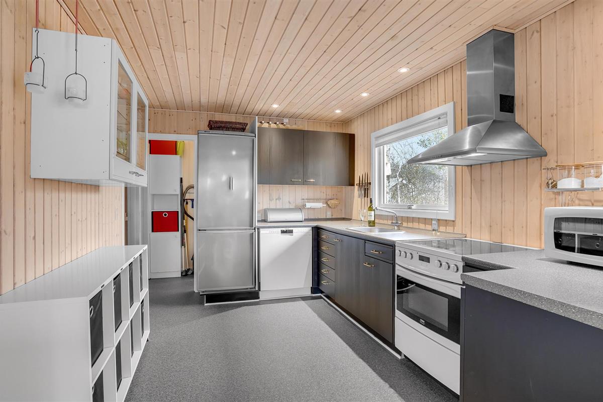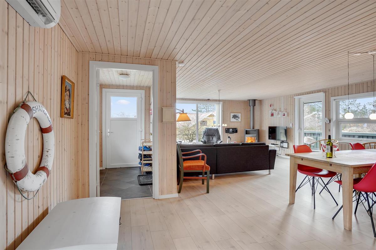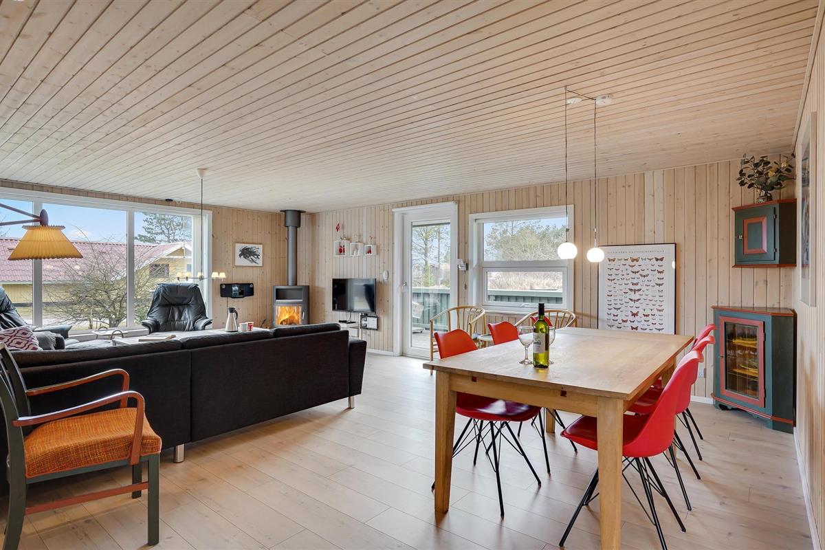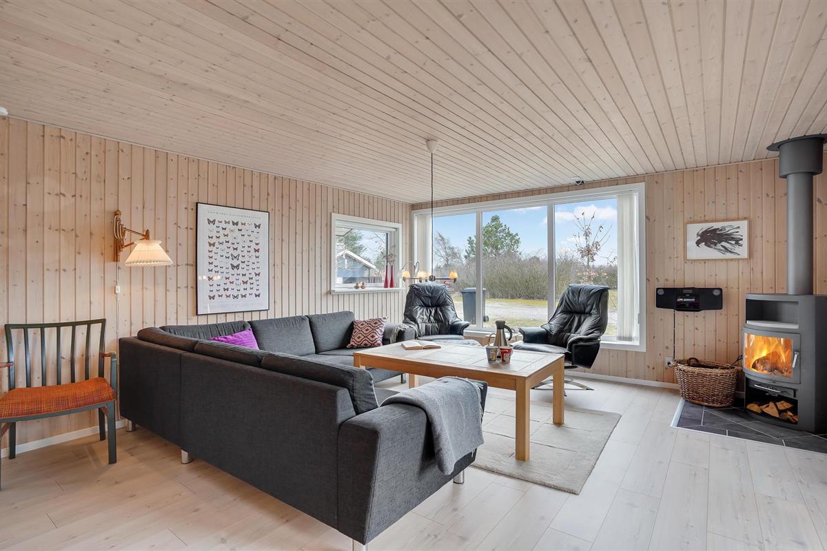 Het goed onderhouden vakantiehuis met zijn grote perceel ligt op slechts 200 m van het fjord. Alles voor een ontspannende vakantie is aanwezig. De inrichting is gezellig en de sfeer is comfortabel. Er zijn drie slaapkamers, een badkamer en een keuken-woonkamer die het hele gezin kan herbergen. Mooi terras met zonnige en windstille hoeken. Dicht bij het huis is een grote speeltuin, een balveld en een klein badstrand bij Ringkøbing Fjord. Het fjord is goed voor surfen en andere watersporten. In de omgeving vindt u musea, restaurants, pretpark en winkels.