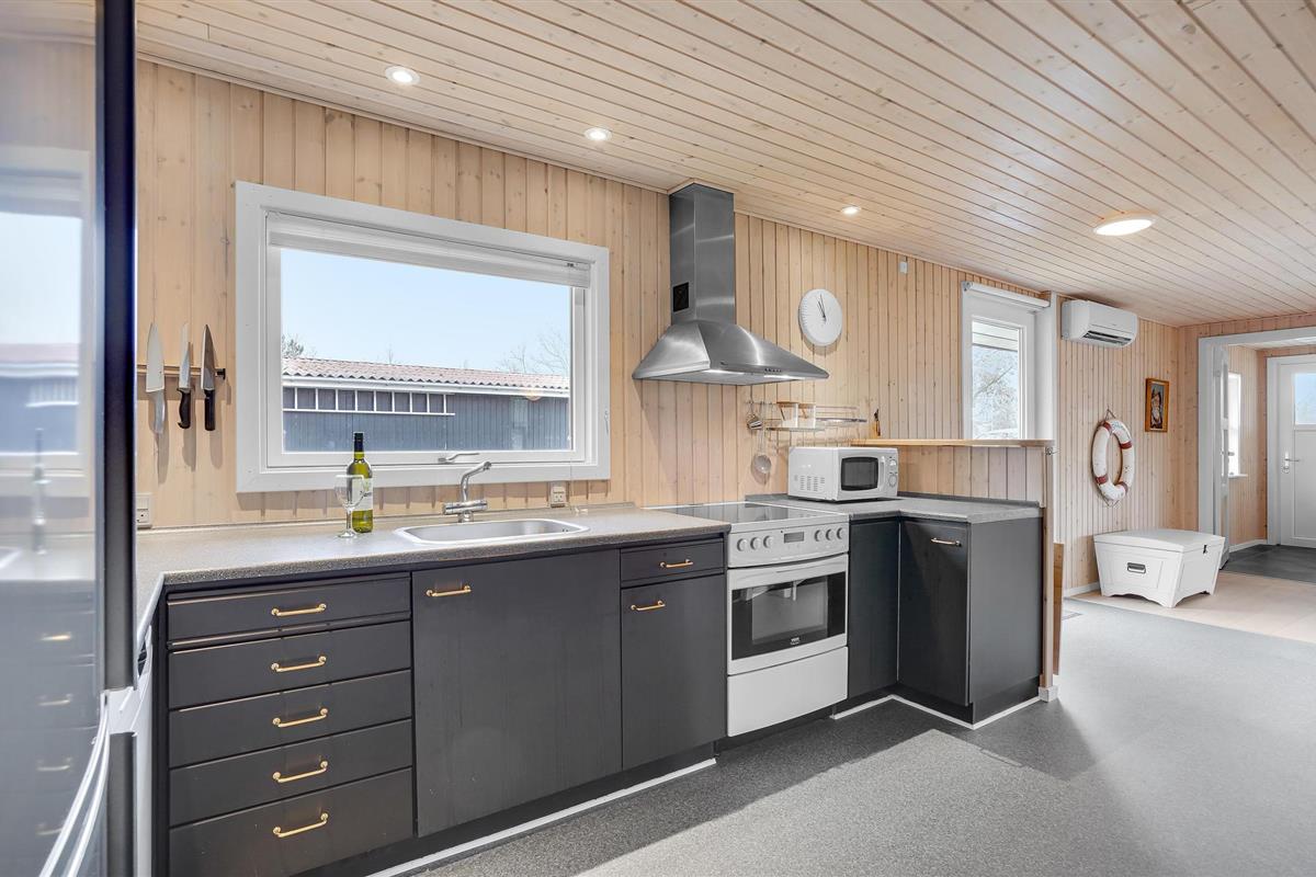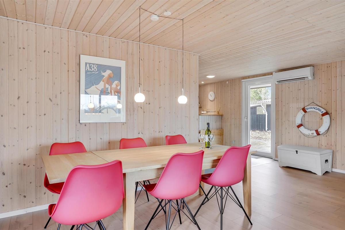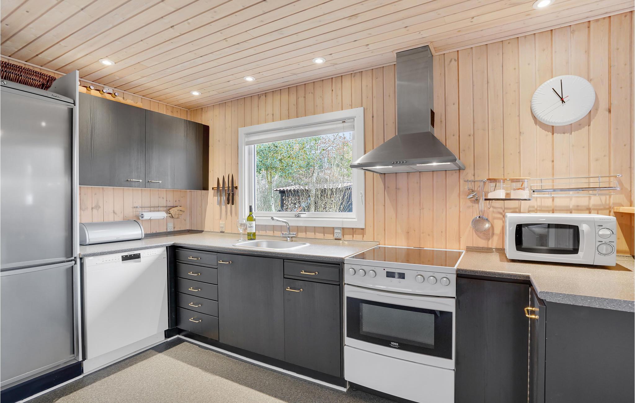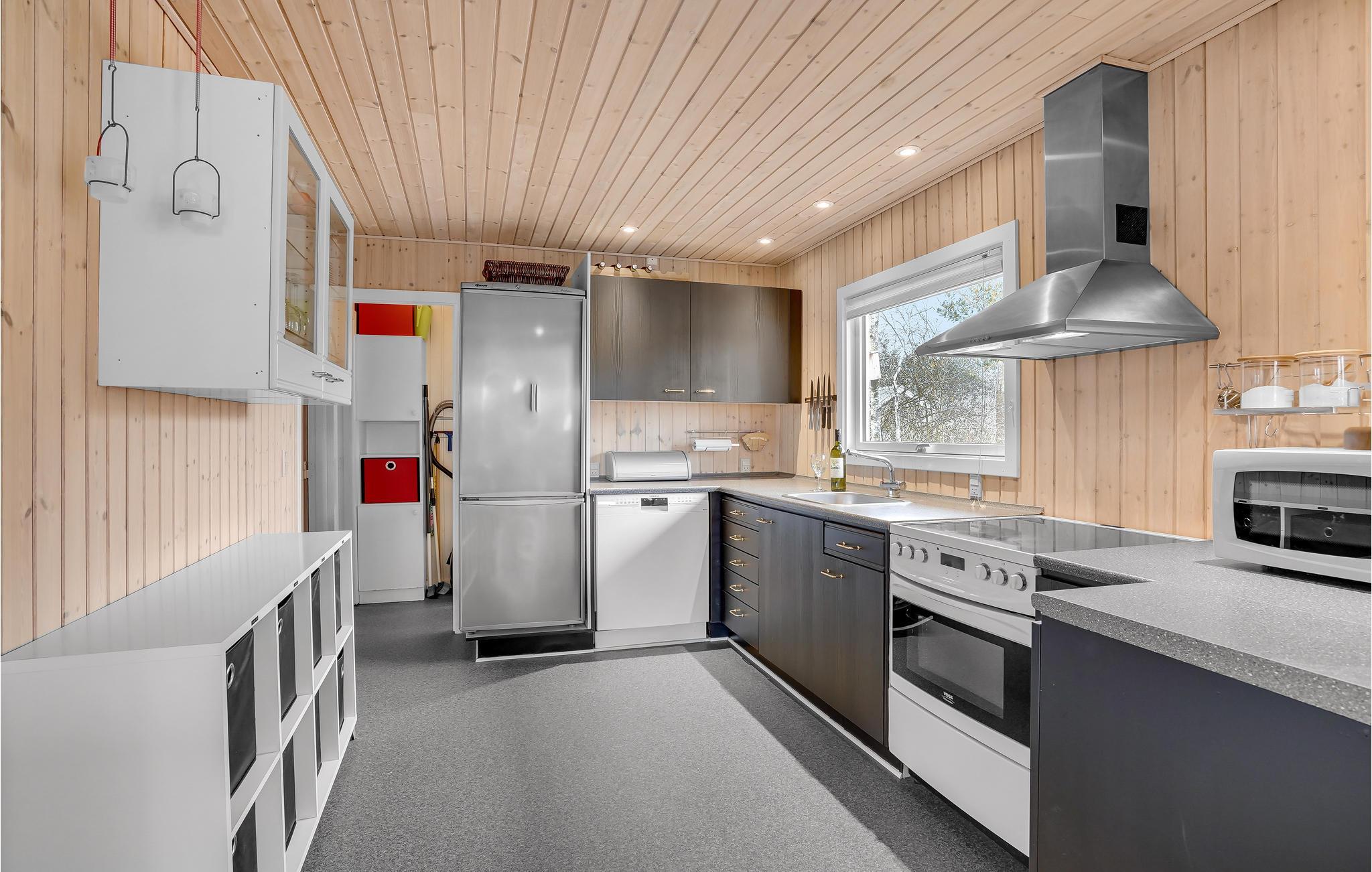 Het goed onderhouden vakantiehuis met zijn grote perceel ligt op slechts 200 m van het fjord. Alles voor een ontspannende vakantie is aanwezig. De inrichting is gezellig en de sfeer is comfortabel. Er zijn drie slaapkamers, een badkamer en een keuken-woonkamer die het hele gezin kan herbergen. Mooi terras met zonnige en windstille hoeken. Dicht bij het huis is een grote speeltuin, een balveld en een klein badstrand bij Ringkøbing Fjord. Het fjord is goed voor surfen en andere watersporten. In de omgeving vindt u musea, restaurants, pretpark en winkels.