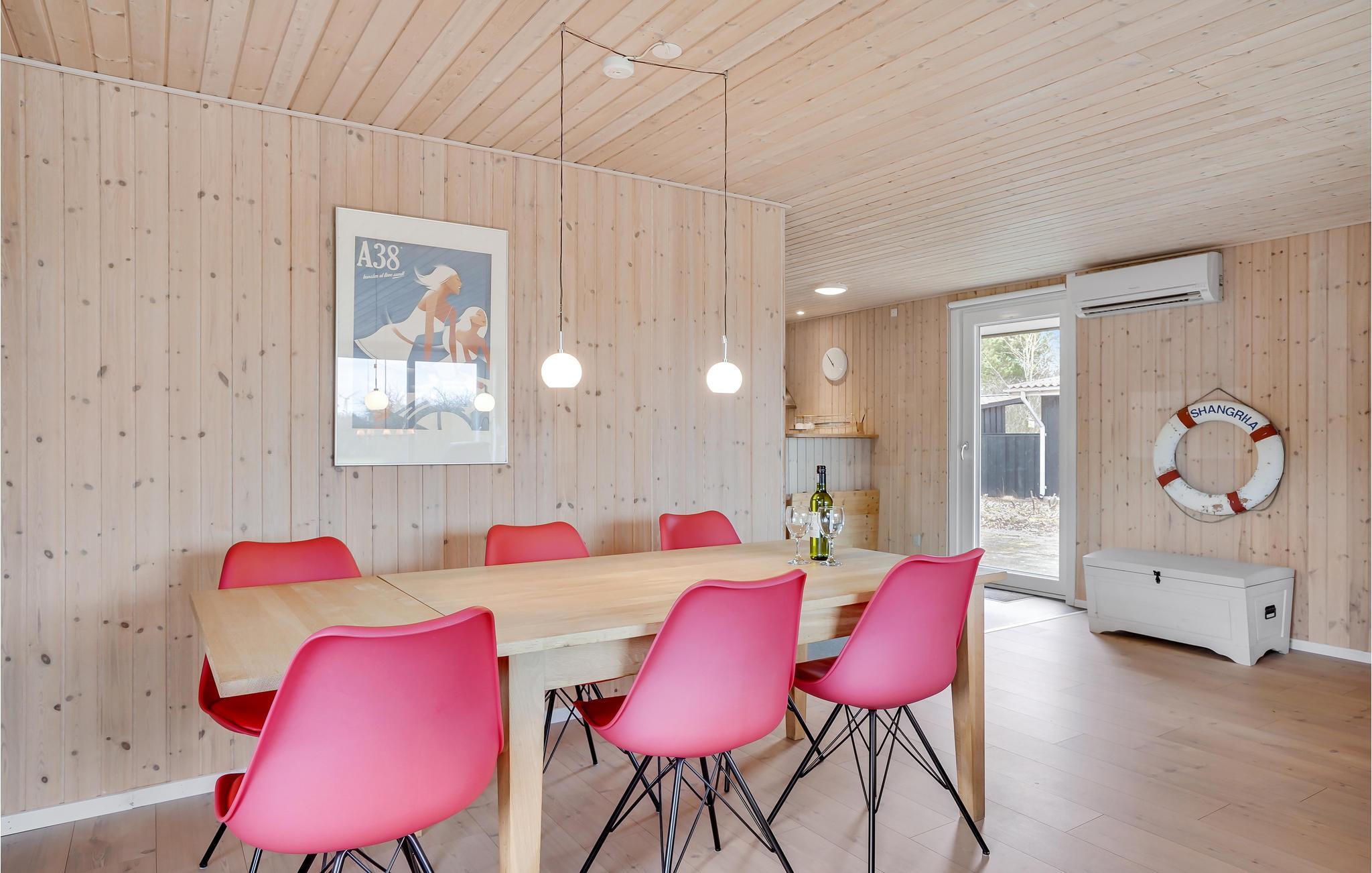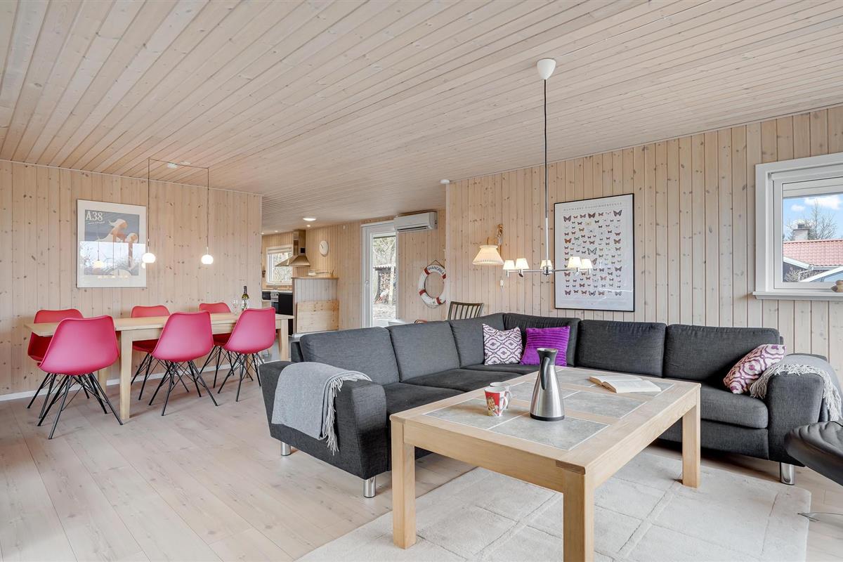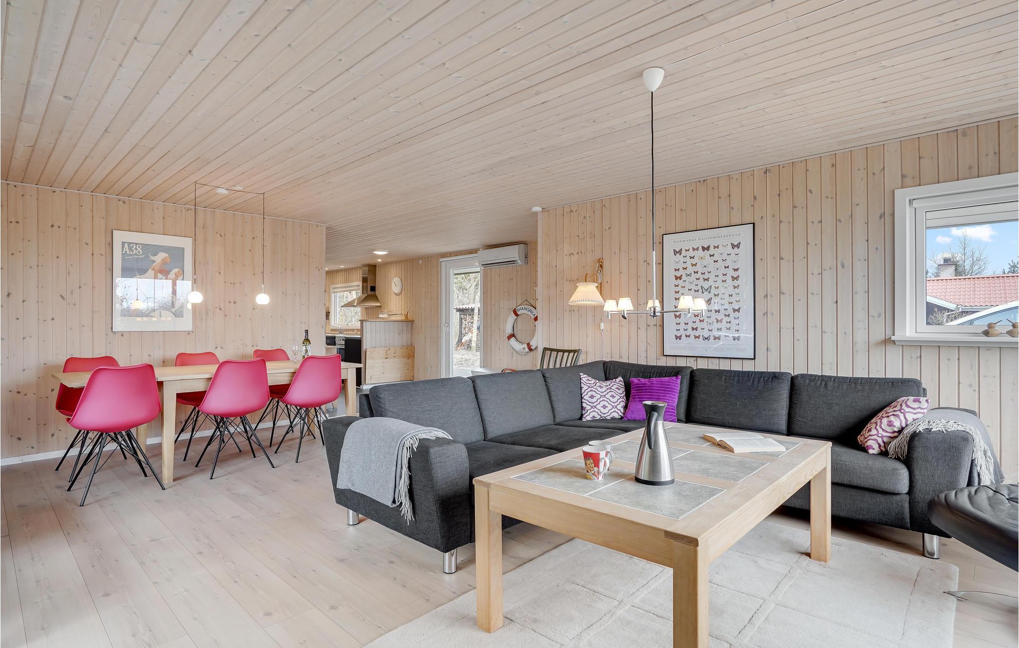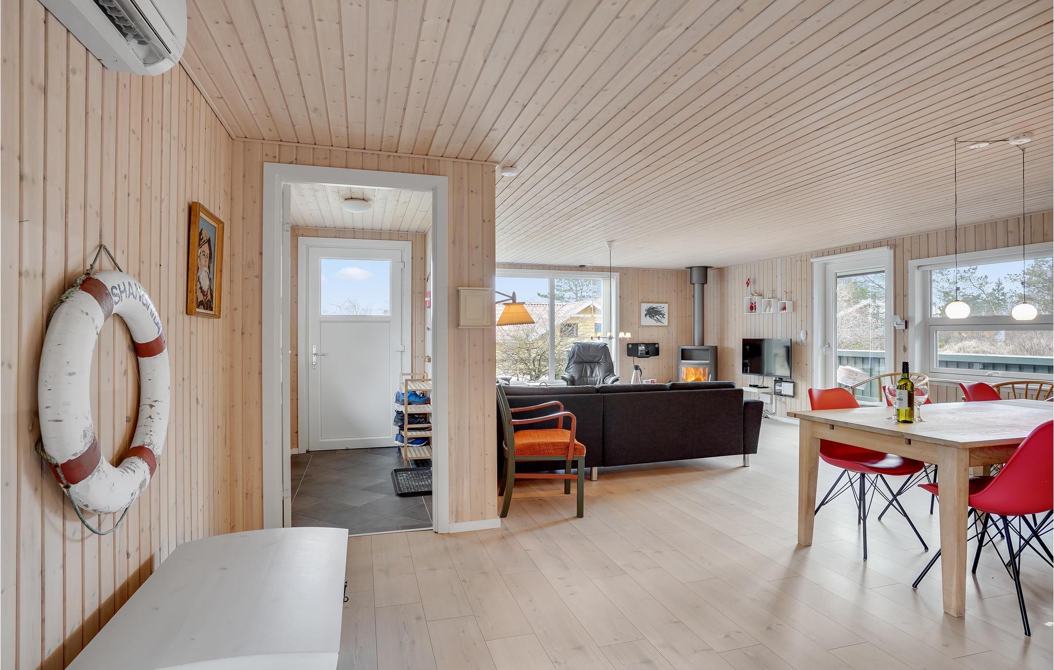 Het goed onderhouden vakantiehuis met zijn grote perceel ligt op slechts 200 m van het fjord. Alles voor een ontspannende vakantie is aanwezig. De inrichting is gezellig en de sfeer is comfortabel. Er zijn drie slaapkamers, een badkamer en een keuken-woonkamer die het hele gezin kan herbergen. Mooi terras met zonnige en windstille hoeken. Dicht bij het huis is een grote speeltuin, een balveld en een klein badstrand bij Ringkøbing Fjord. Het fjord is goed voor surfen en andere watersporten. In de omgeving vindt u musea, restaurants, pretpark en winkels.
