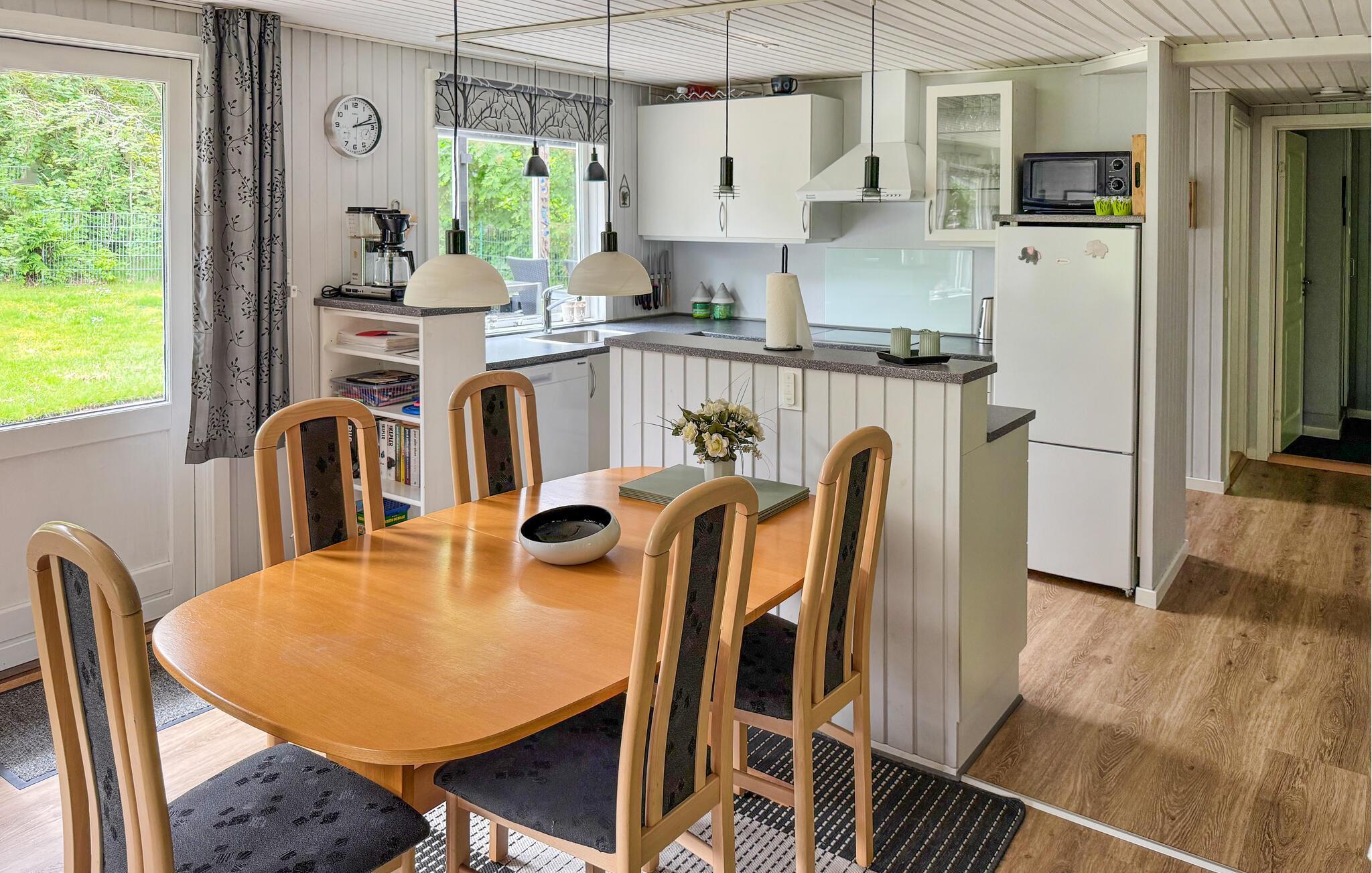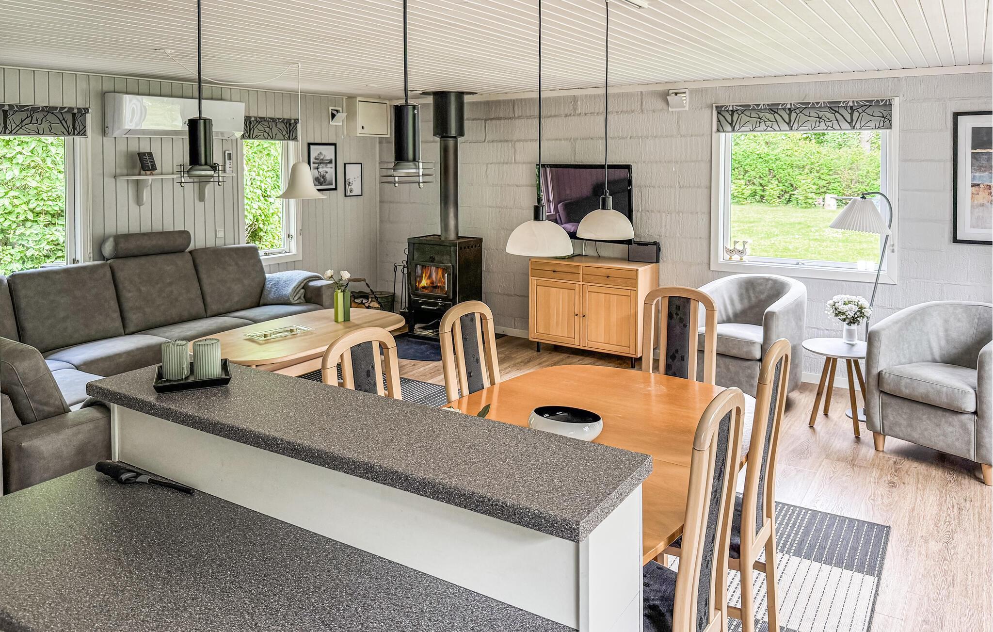 Verheug je op een ontspannen vakantie in je uitnodigende vakantiehuis bij Ringkøbing Fjord. De idyllische locatie en gezinsvriendelijke faciliteiten maken het de ideale plek voor gezamenlijke ervaringen en pure ontspanning. Begin de dag met een stevig ontbijt, dat je kunt bereiden in de kleine, open keuken. Geniet van je maaltijden aan de gezellige eettafel, in de serre met uitzicht op de prachtige tuin of op het terras. Terwijl de kinderen de schommel en zandbak in de tuin al aan het ontdekken zijn, kun jij je ontspannen in de zithoek en genieten van de gezellige warmte van de open haard.