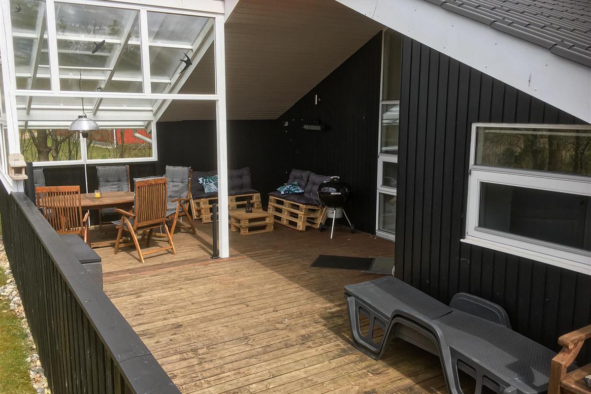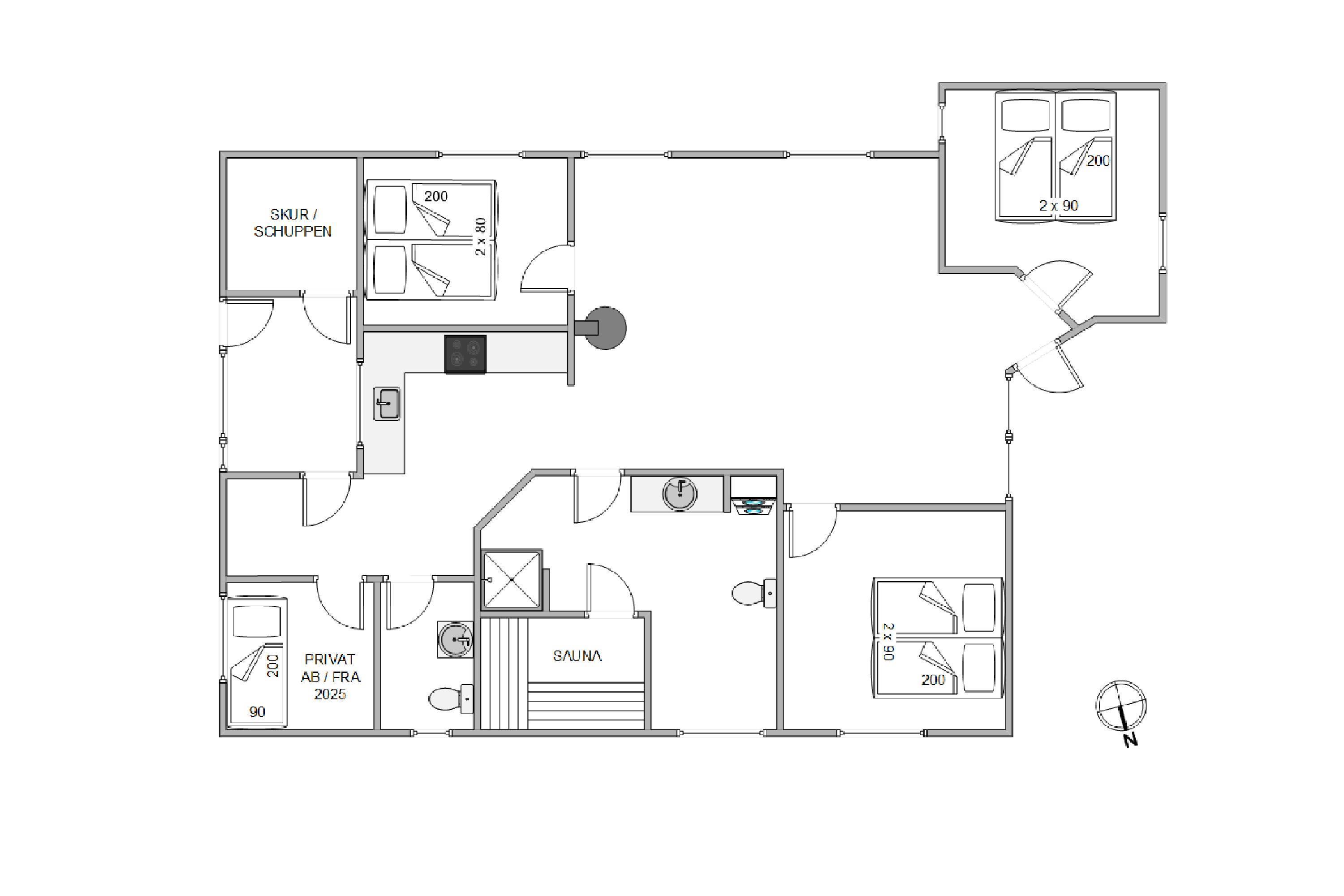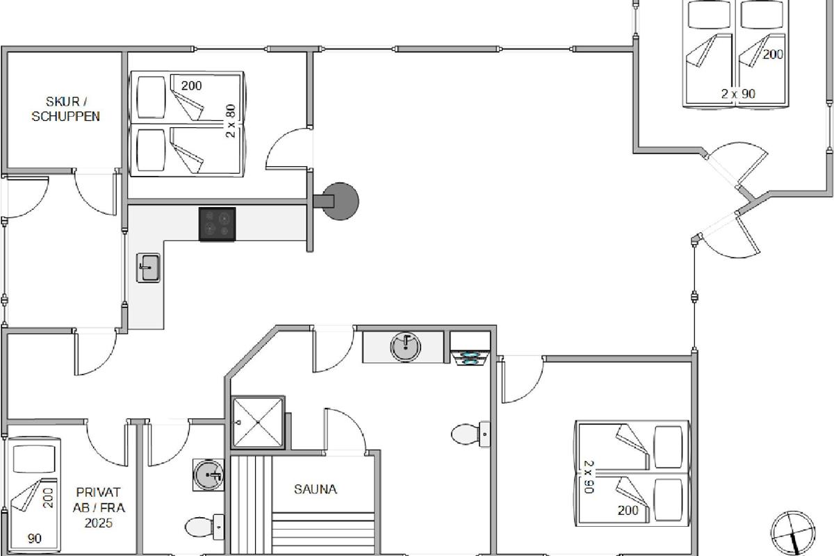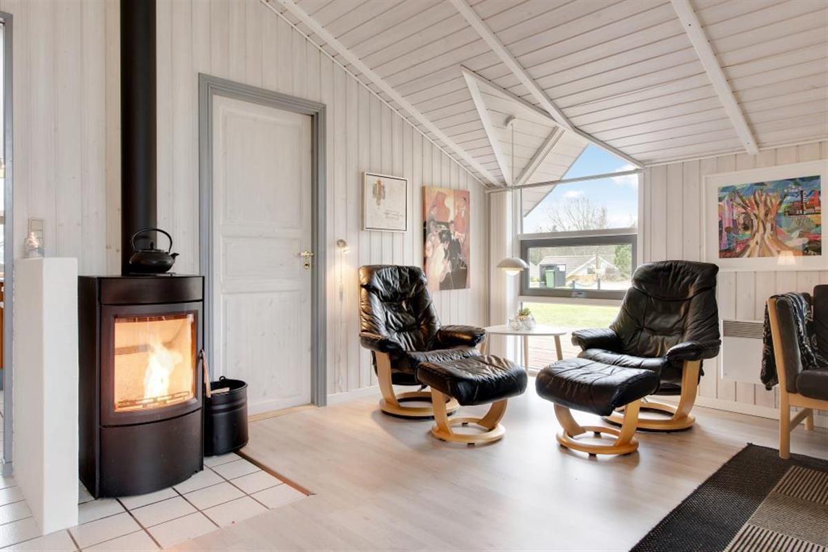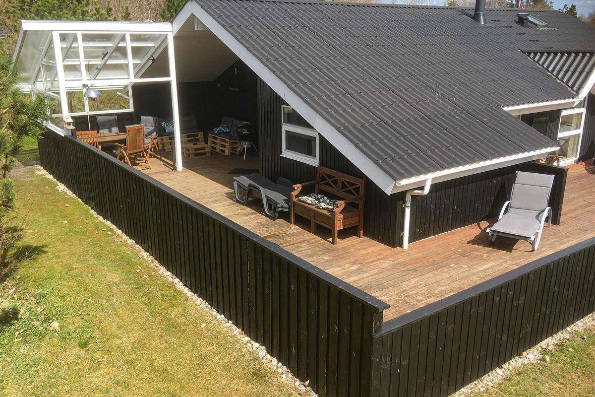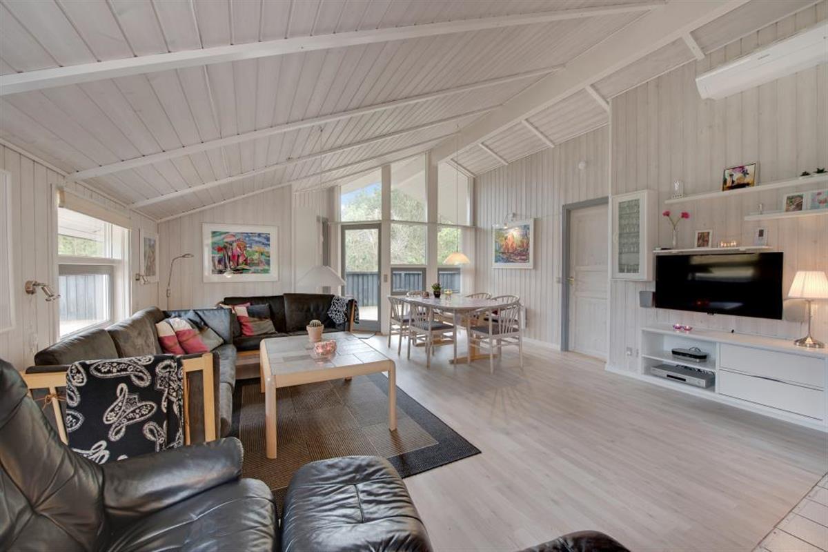 Large windows flood the rooms with natural light, while the modern kitchen (installed 2019) is perfect for creating delicious meals. The living room leads to a partially covered, wind-protected terrace that can be fully enclosed. You'll find a sheltered spot regardless of wind direction. The covered section even features a terrace heater, allowing outdoor seating on cooler evenings. The sauna provides relaxation and recovery. The holiday home offers complimentary internet with Chromecast.