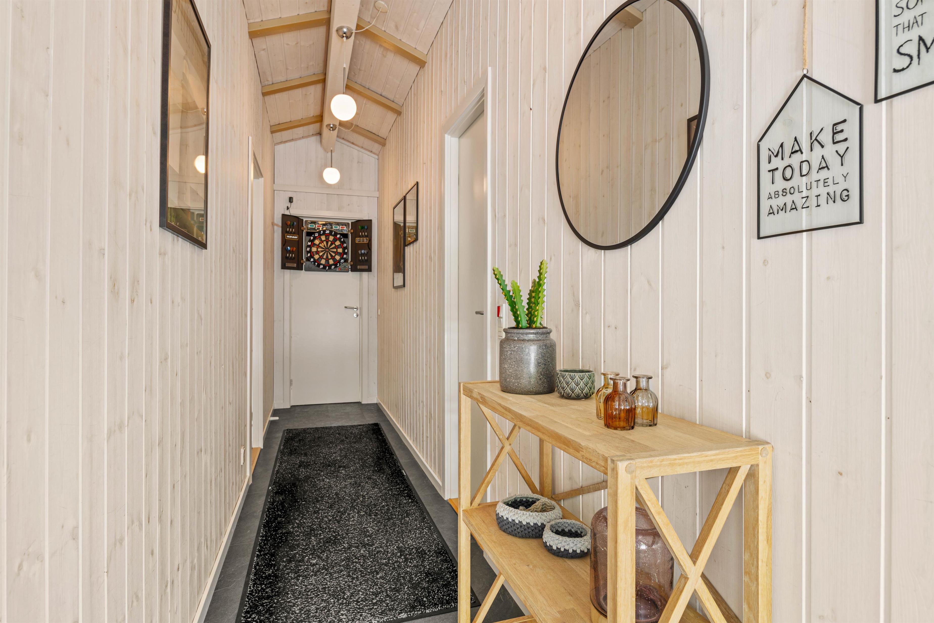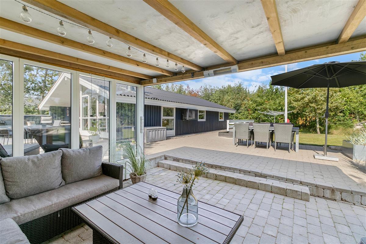 The living room provides direct access to the wonderful outdoor area of this cosy holiday home at Lunden 8 in Henneby, which is an absolute highlight: here you'll find a spacious tiled terrace, outdoor hot tub, covered lounge area and expansive lawn! For little ones, there's a sandpit, swing and excellent trampoline, ensuring plenty of fun and games in the fresh air.