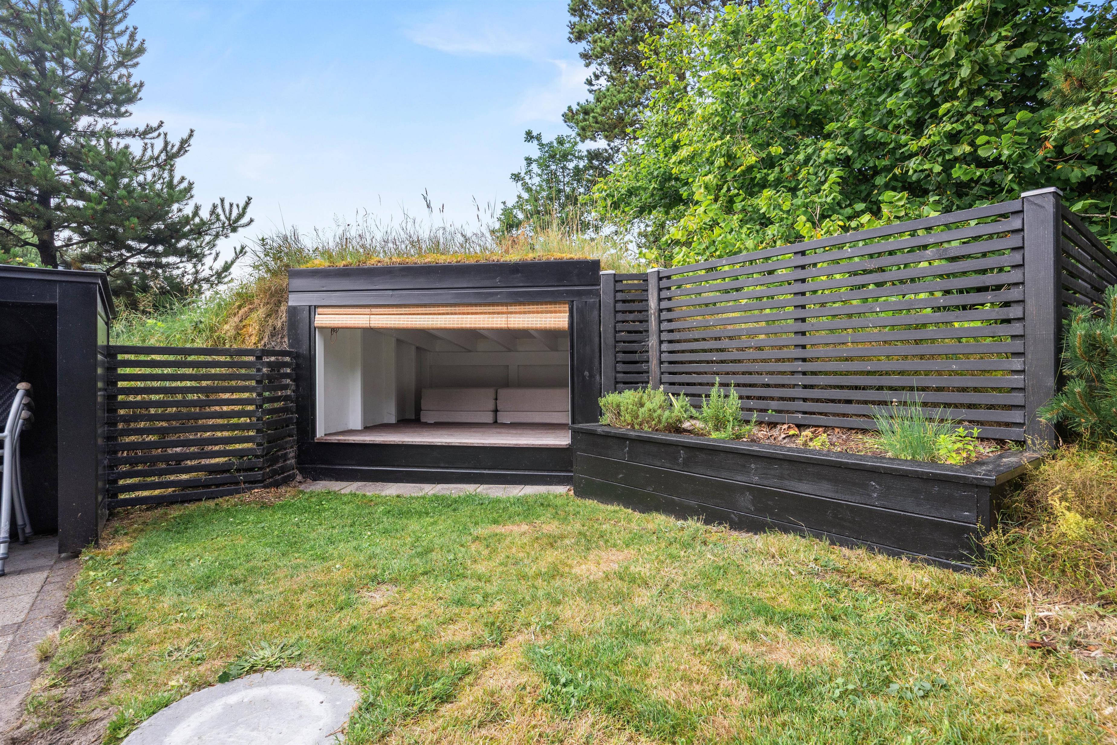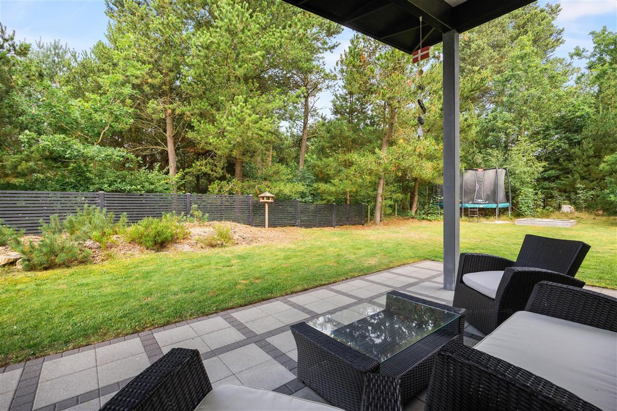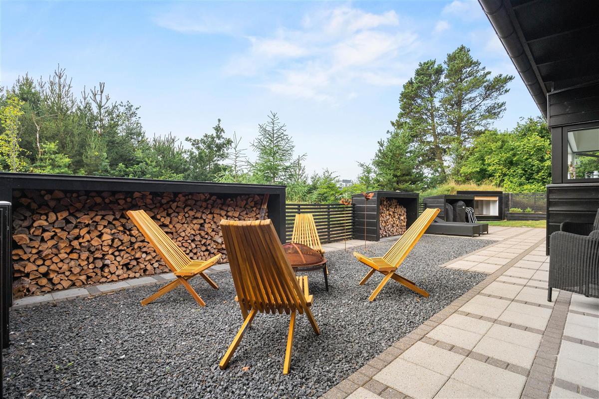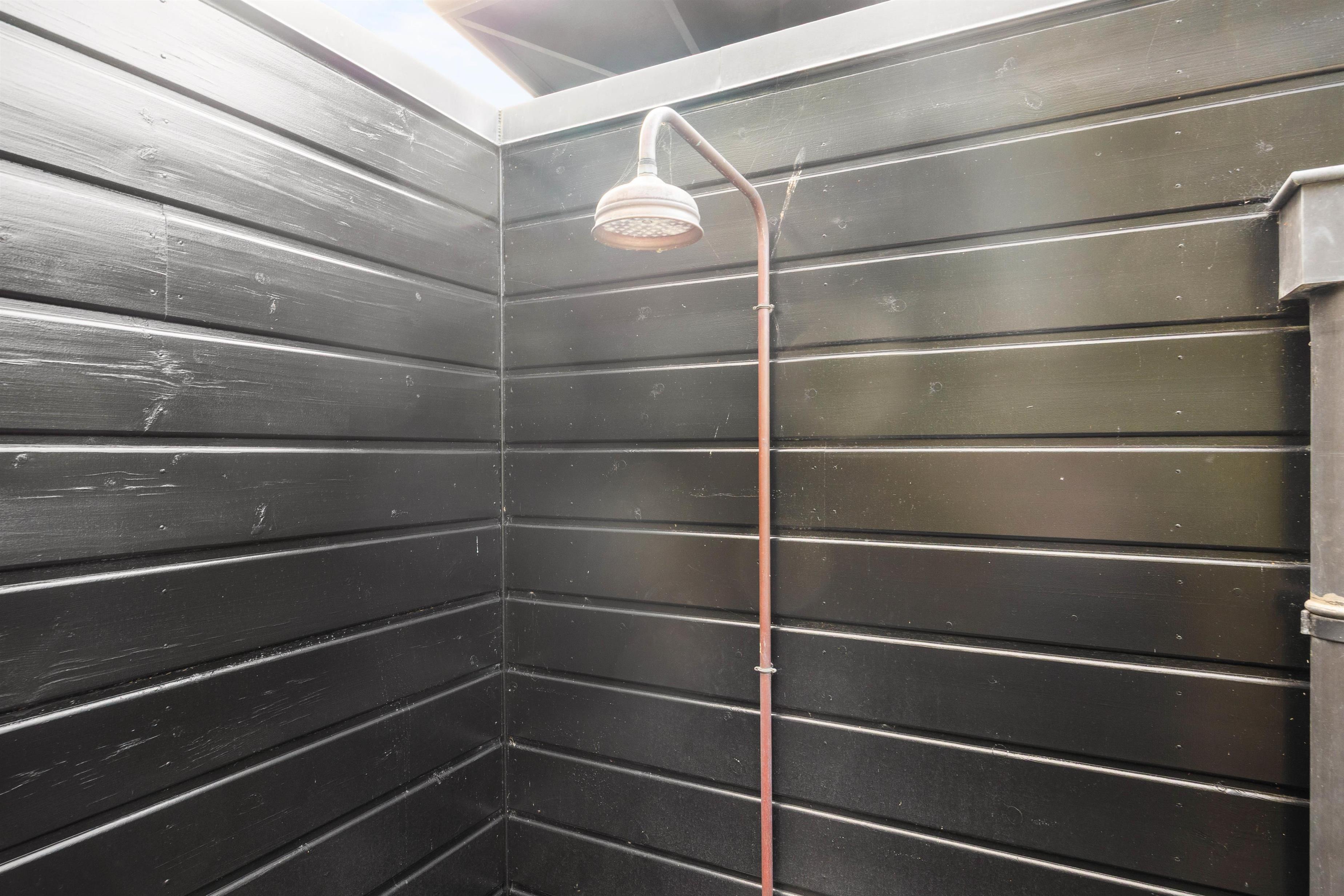 Hier gibt es viel Platz zum Spielen, Entspannen in einer sicheren und landschaftlich reizvollen Umgebung, da das Grundstück eingezäunt ist. Wenn ihr vom Strand kommt, steht euch eine Außendusche von April – November, zur Verfügung, um den Sand von den Füßen zu waschen. Die Kinder werden den Garten lieben, der mit einer Schaukel, einem Sandkasten und einem Trampolin ausgestattet ist – ideal für stundenlangen Spaß im Freien. Die Erwachsenen können sich gleichzeitig auf einer der vielen Terrassen entspannen oder es sich in einer der gemütlichen Ecken des Gartens bequem machen. Der überdachte Terrassenbereich lädt mit bequemen Gartenmöbeln zu stimmungsvollen Grillabenden ein, während die Südwestseite des Grundstücks eine gemütliche Feuerstelle bietet – ideal für Marshmallows und gute Gespräche unter dem Sternenhimmel.