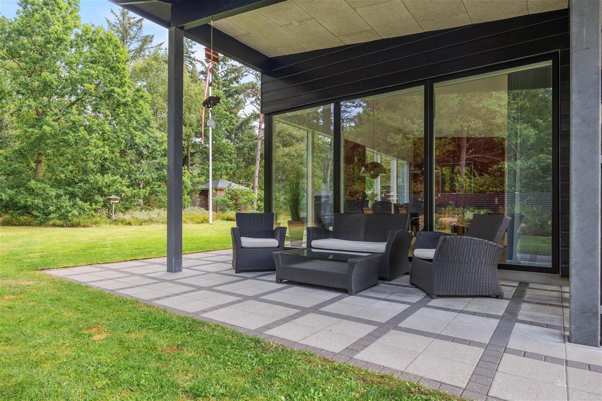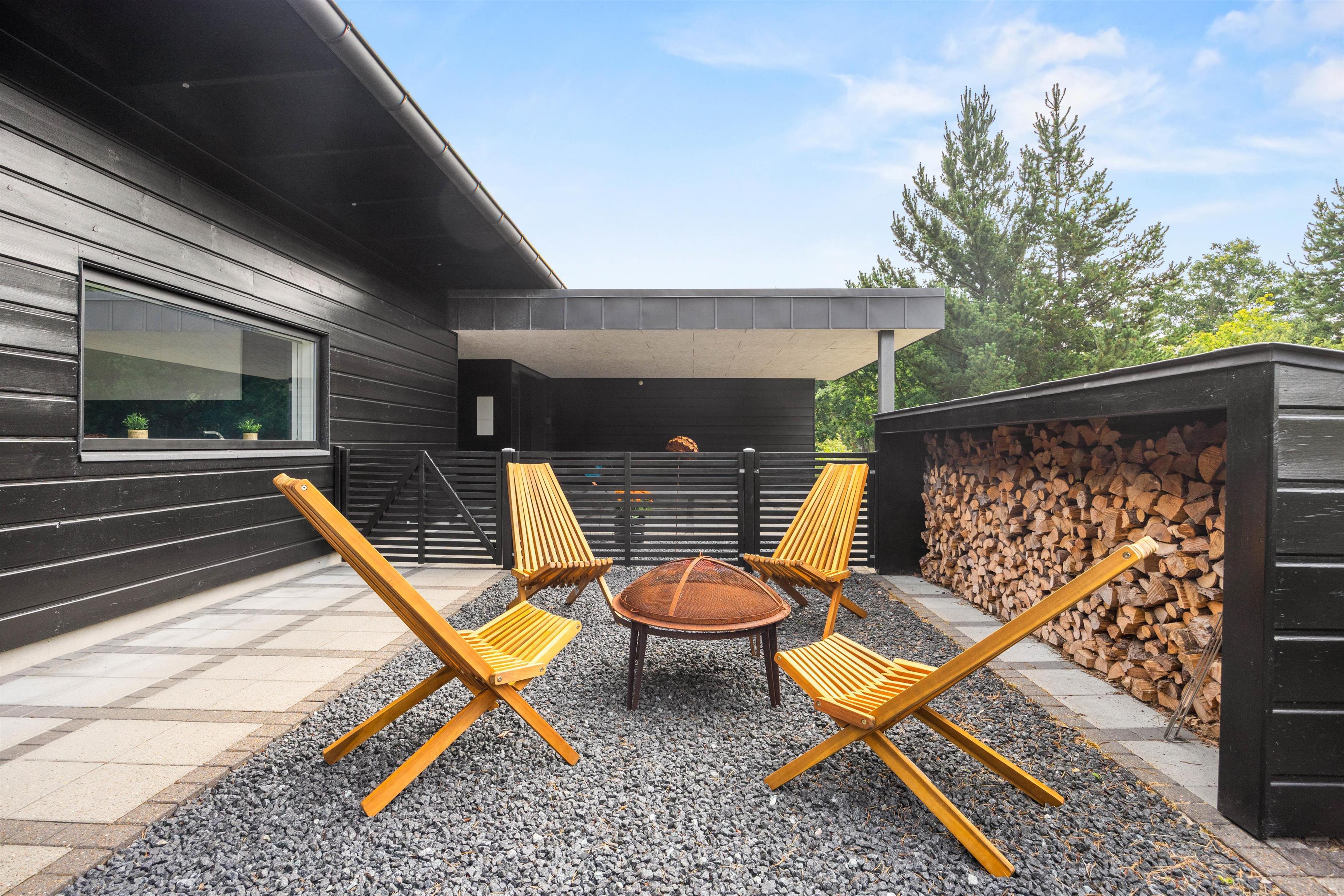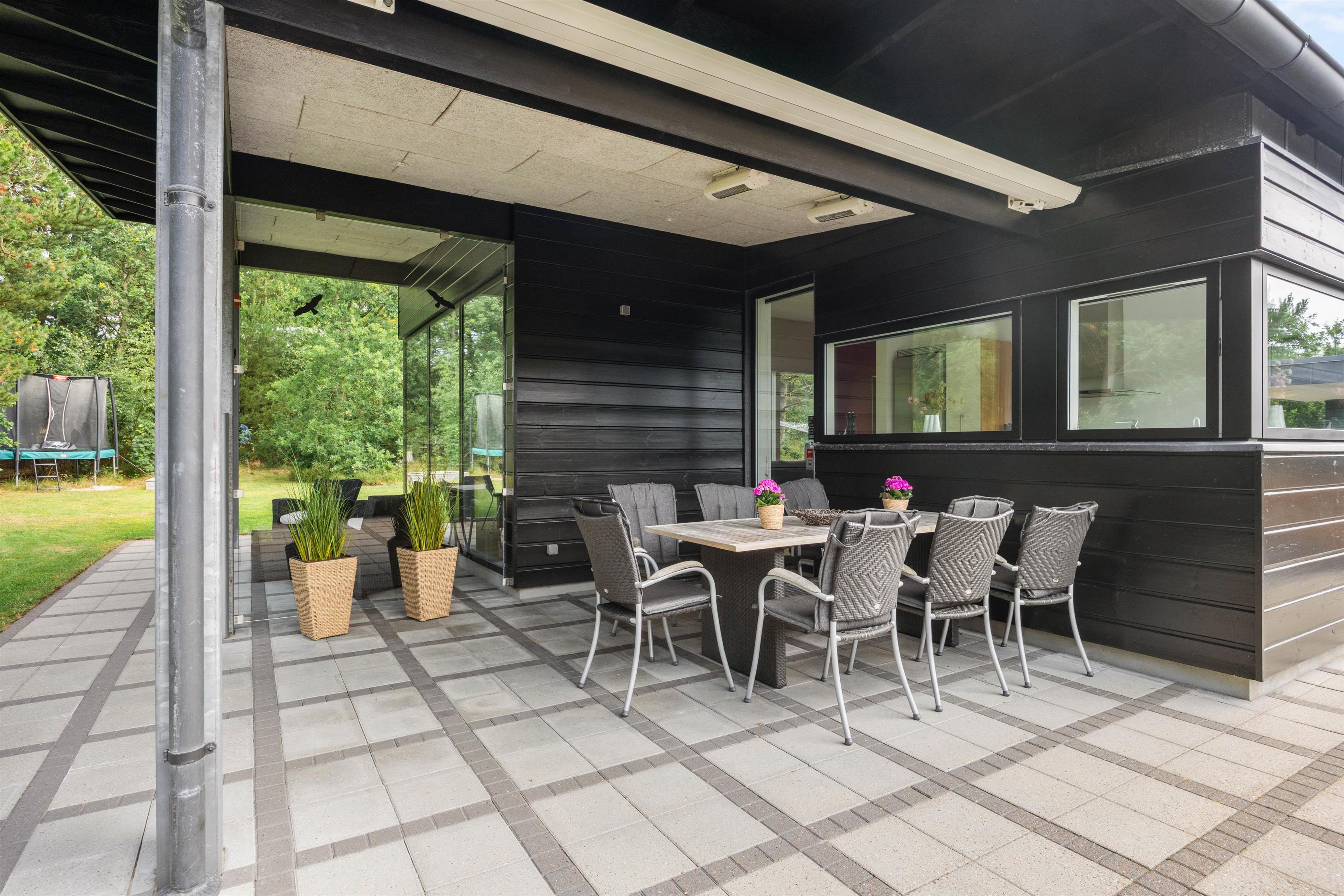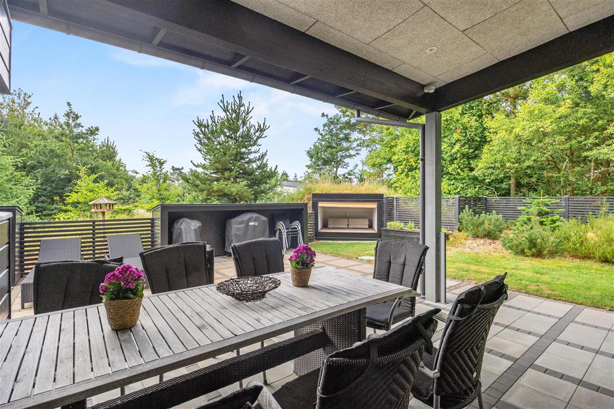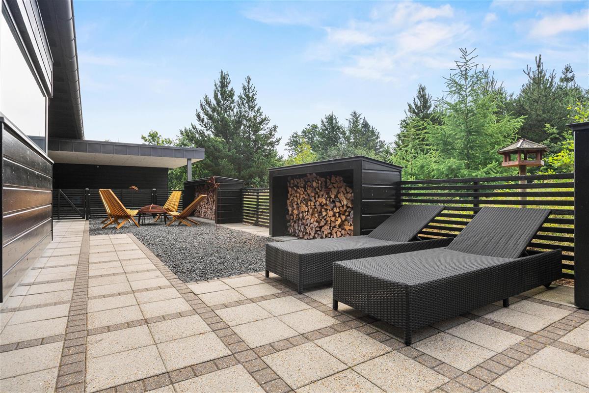 Hier gibt es viel Platz zum Spielen, Entspannen in einer sicheren und landschaftlich reizvollen Umgebung, da das Grundstück eingezäunt ist. Wenn ihr vom Strand kommt, steht euch eine Außendusche von April – November, zur Verfügung, um den Sand von den Füßen zu waschen. Die Kinder werden den Garten lieben, der mit einer Schaukel, einem Sandkasten und einem Trampolin ausgestattet ist – ideal für stundenlangen Spaß im Freien. Die Erwachsenen können sich gleichzeitig auf einer der vielen Terrassen entspannen oder es sich in einer der gemütlichen Ecken des Gartens bequem machen. Der überdachte Terrassenbereich lädt mit bequemen Gartenmöbeln zu stimmungsvollen Grillabenden ein, während die Südwestseite des Grundstücks eine gemütliche Feuerstelle bietet – ideal für Marshmallows und gute Gespräche unter dem Sternenhimmel.