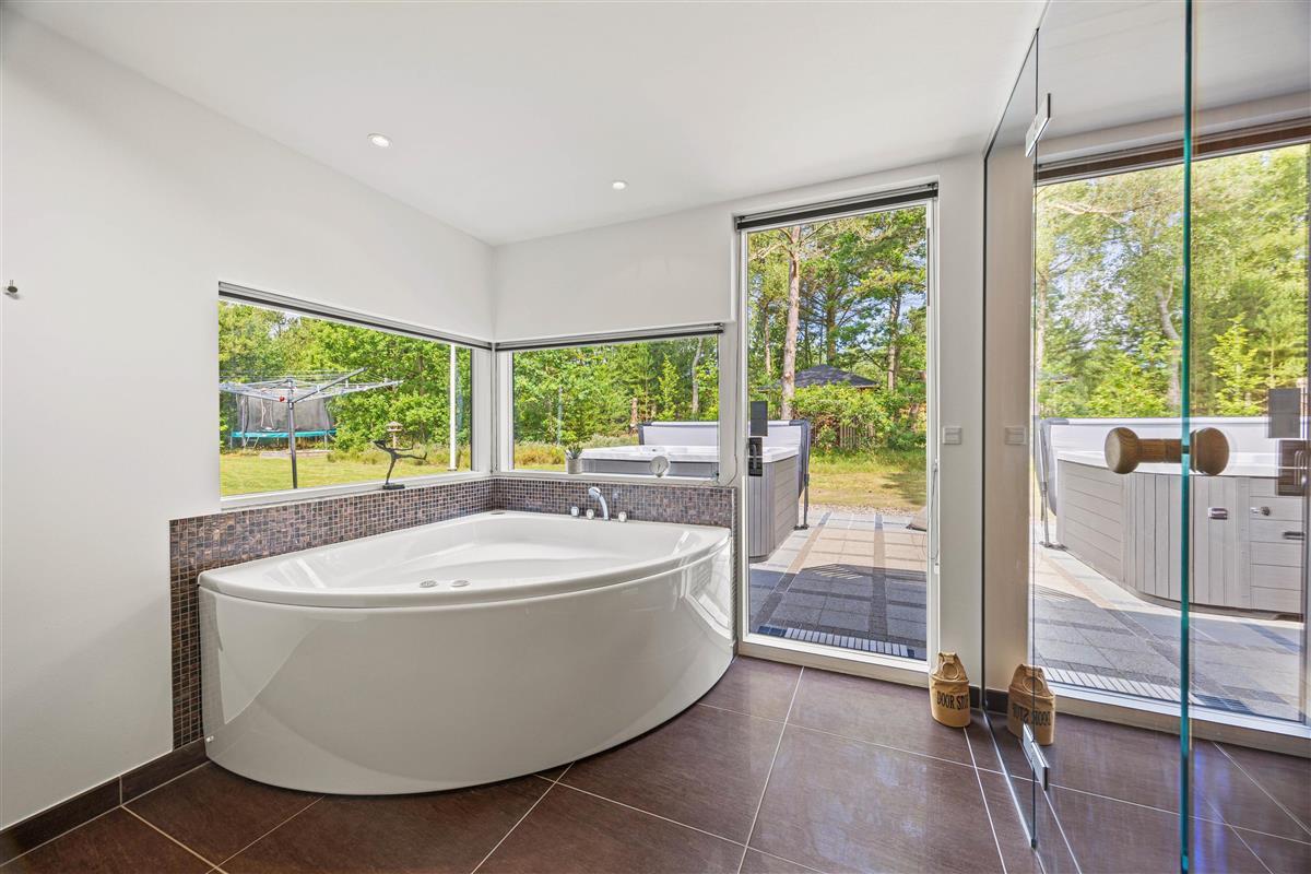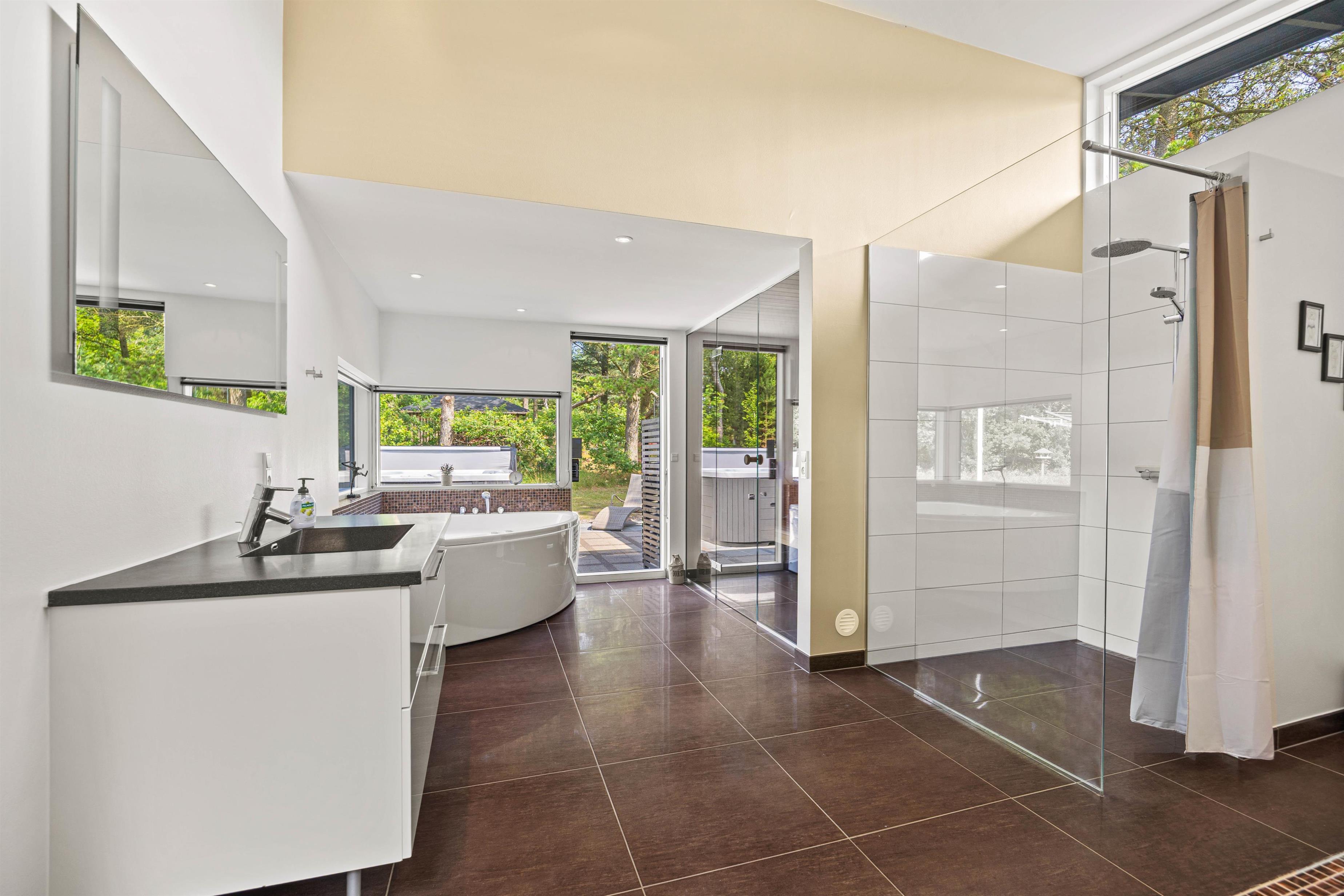 Nach einem aktiven Tag in der Natur gibt es nichts Schöneres, als sich im Wellnessbereich des Ferienhauses zu entspannen. Hier findet ihr sowohl eine hauseigene Sauna als auch einen Whirlpool – ideal, um komplett zu entspannen. Vom Badezimmer aus habt ihr direkten Zugang zur Terrasse, wo euch ein Whirlpool im Freien erwartet. Hier könnt ihr ein warmes Bad unter freiem Himmel genießen und Komfort mit der Ruhe der Natur verbinden.