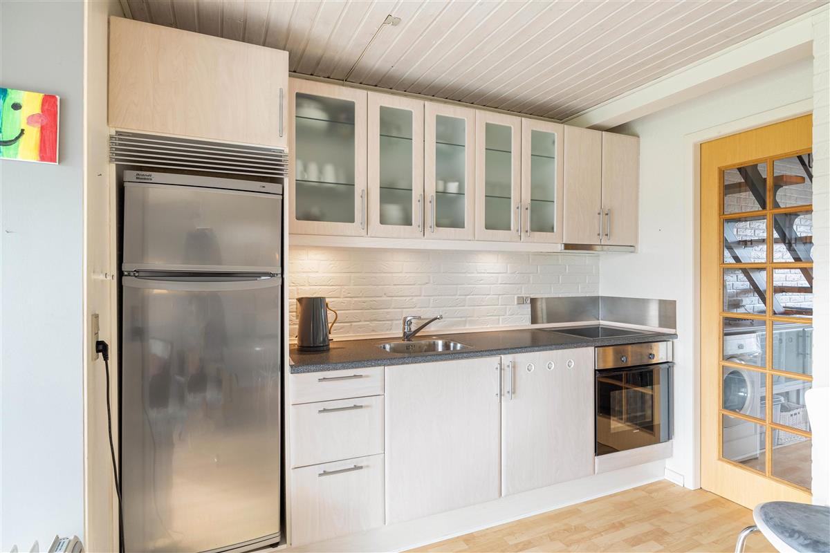 The open-plan kitchen is perfect for sociable cooking evenings. Don't worry about the washing up – the dishwasher takes care of that. For energy-efficient heating, the holiday home features a heat pump.