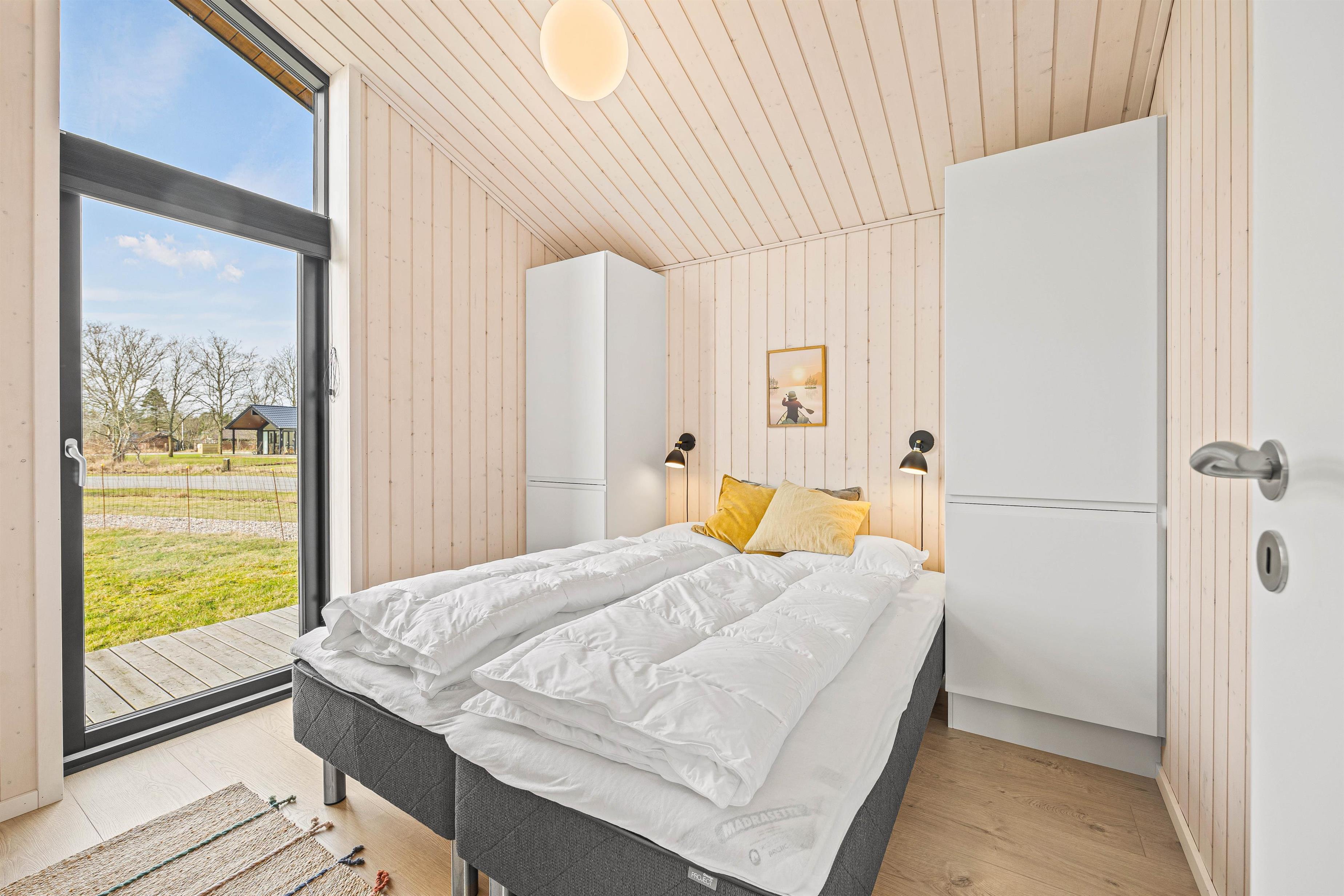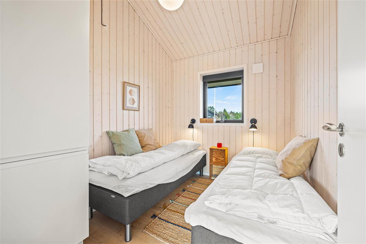 The holiday home at Ponyvej 1 has 3 spacious bedrooms. Two rooms feature comfortable double beds, while the third room has two single beds - ideal for children.