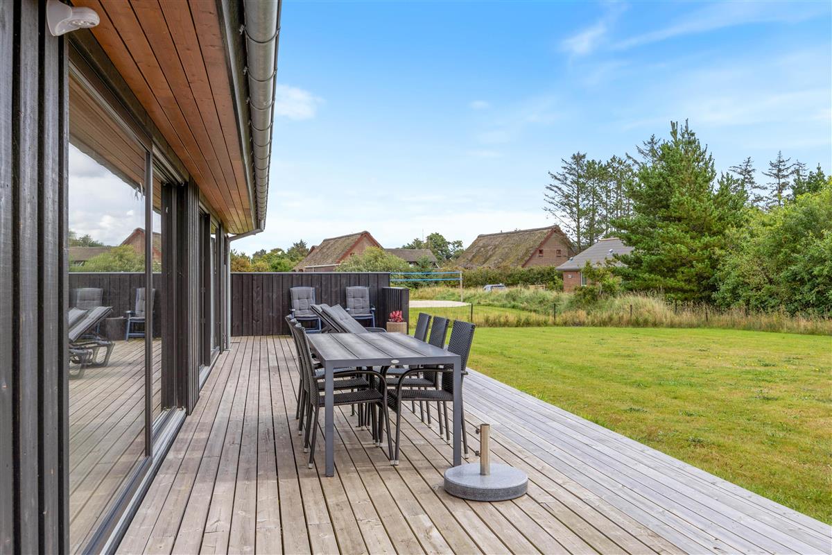 The beautiful wooden terrace invites you to spend time outdoors, relaxing in the comfortable garden furniture and sun loungers provided.
