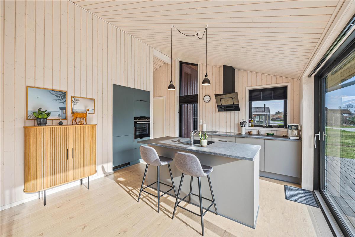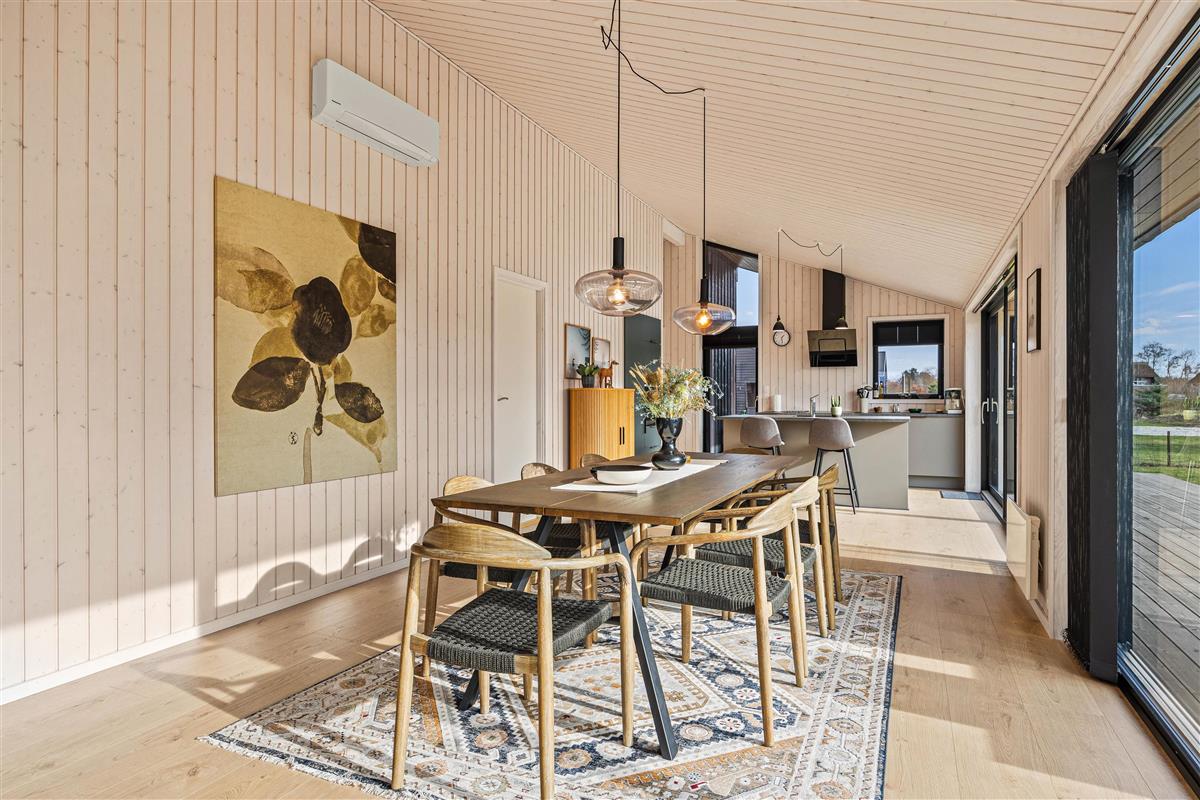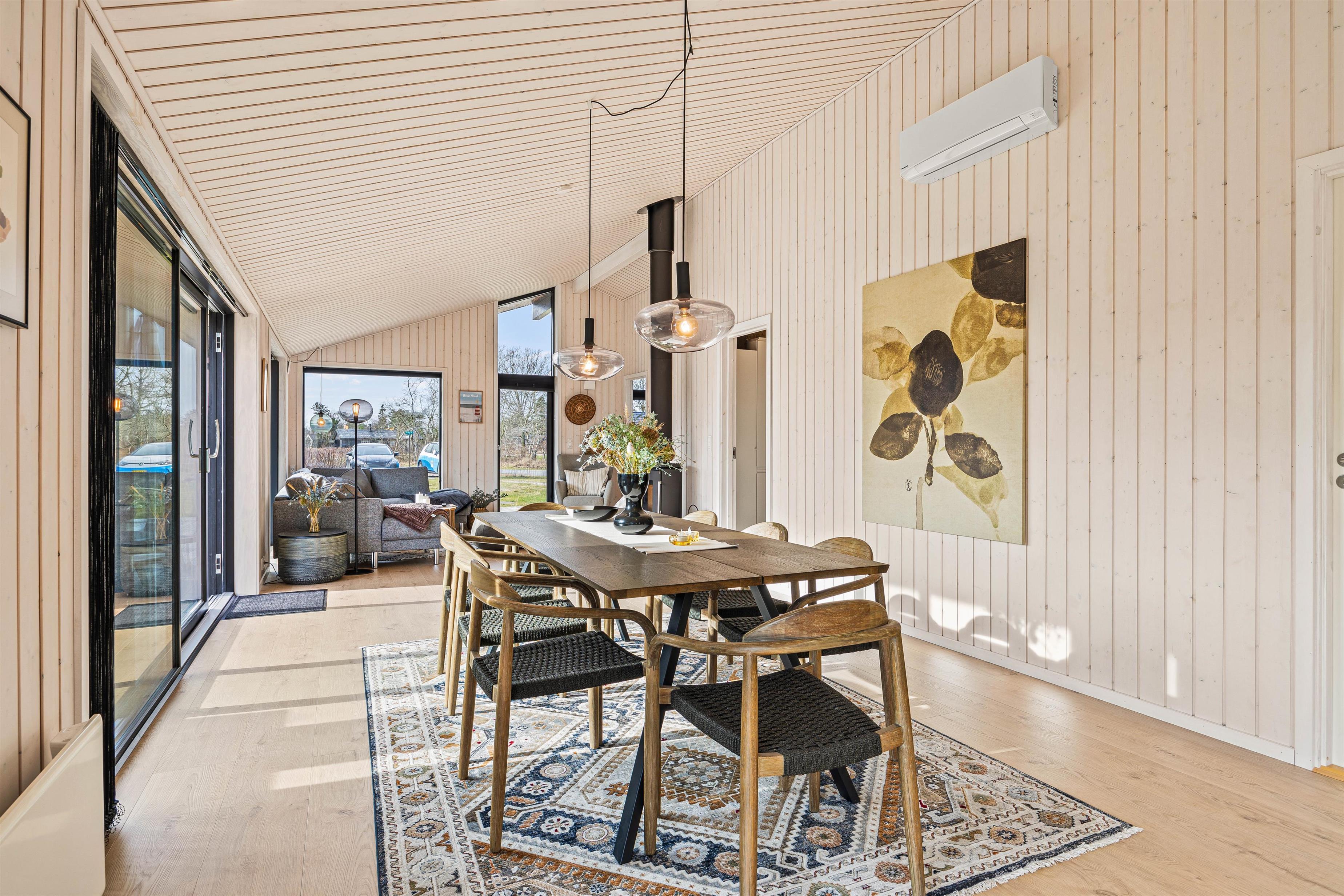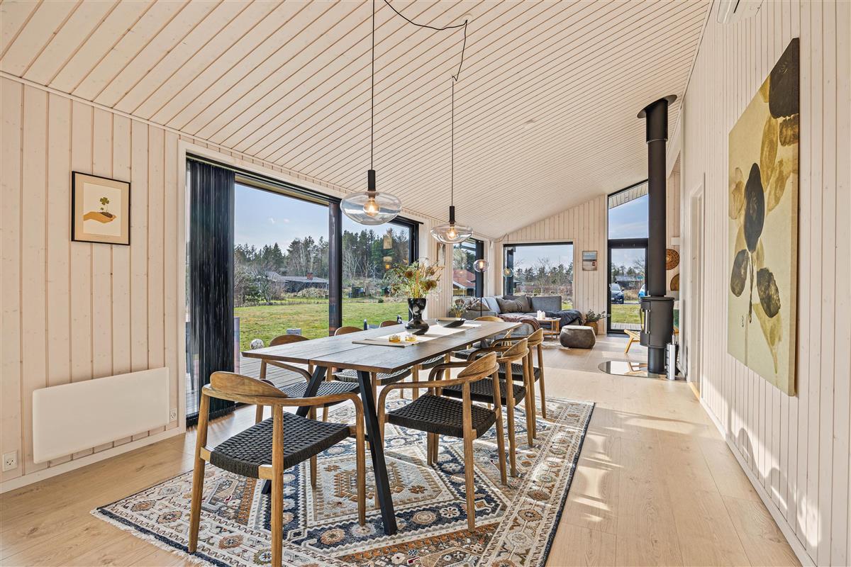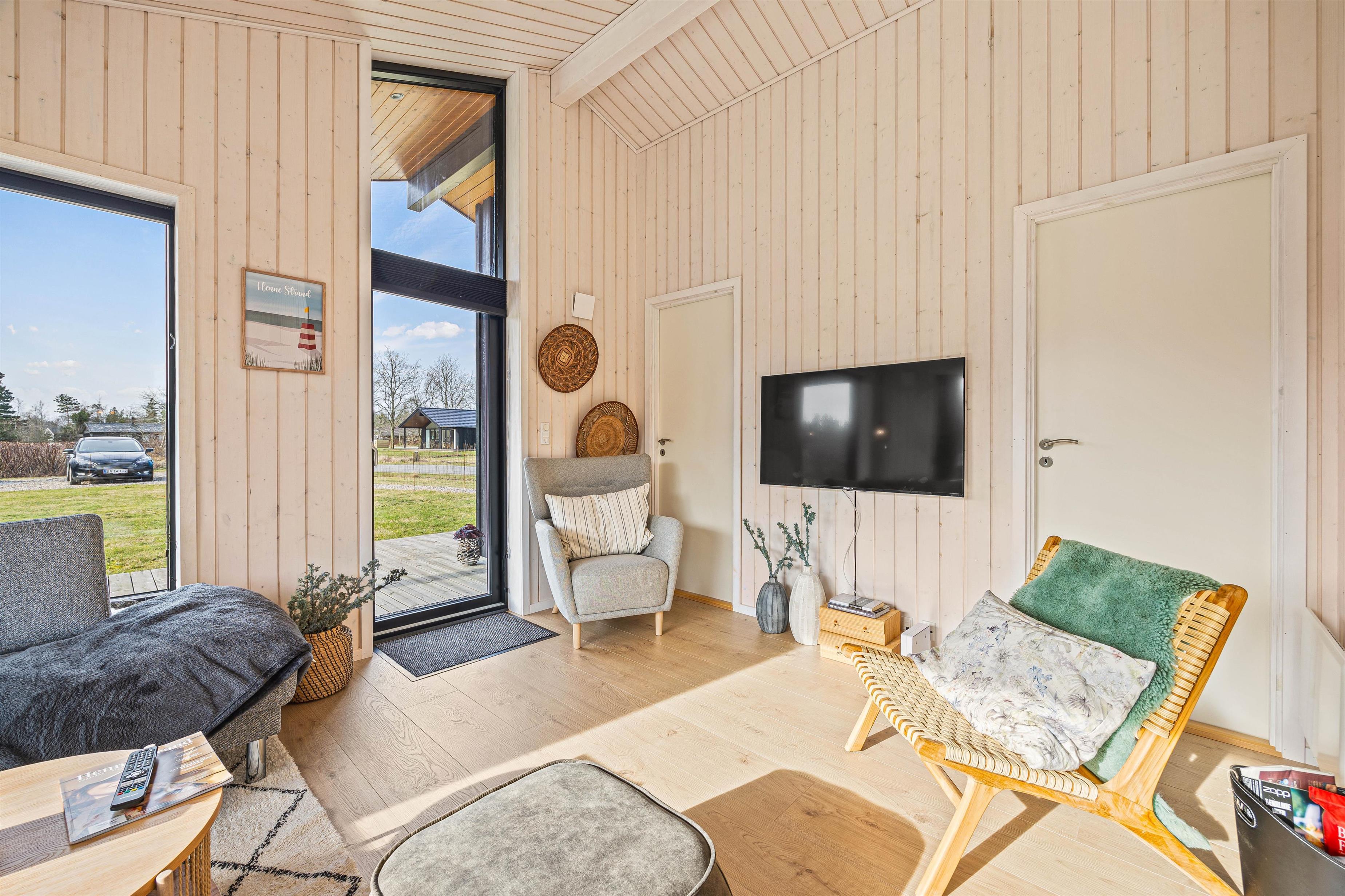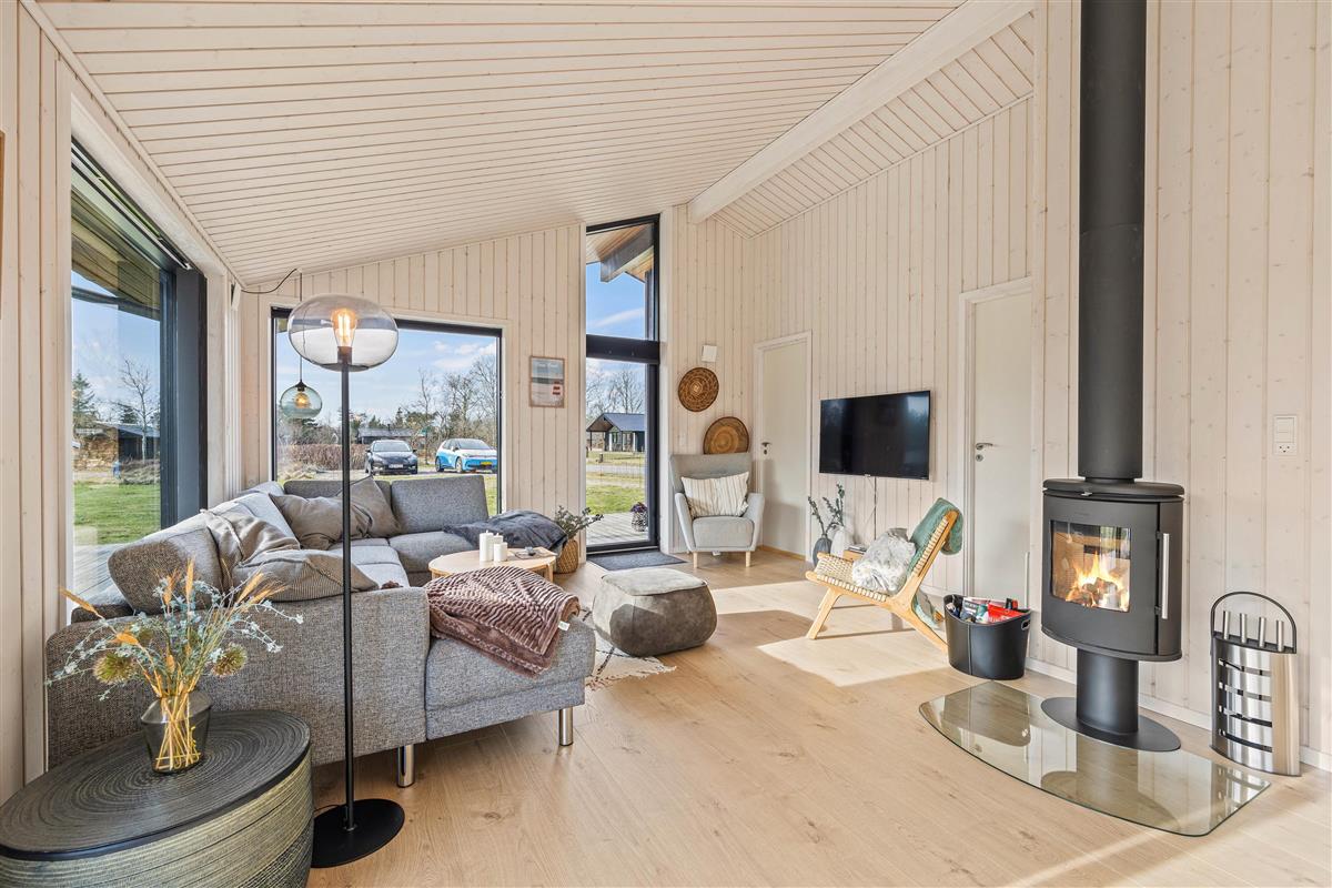 The beautiful wood-burning stove and flat-screen TV in the living room create the perfect setting for cosy evenings watching films in good company. In addition to the wood burner, this holiday home features an energy-efficient heat pump for heating.
