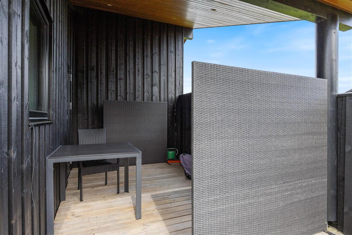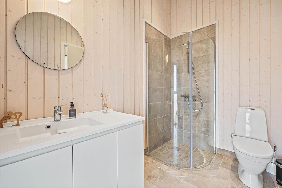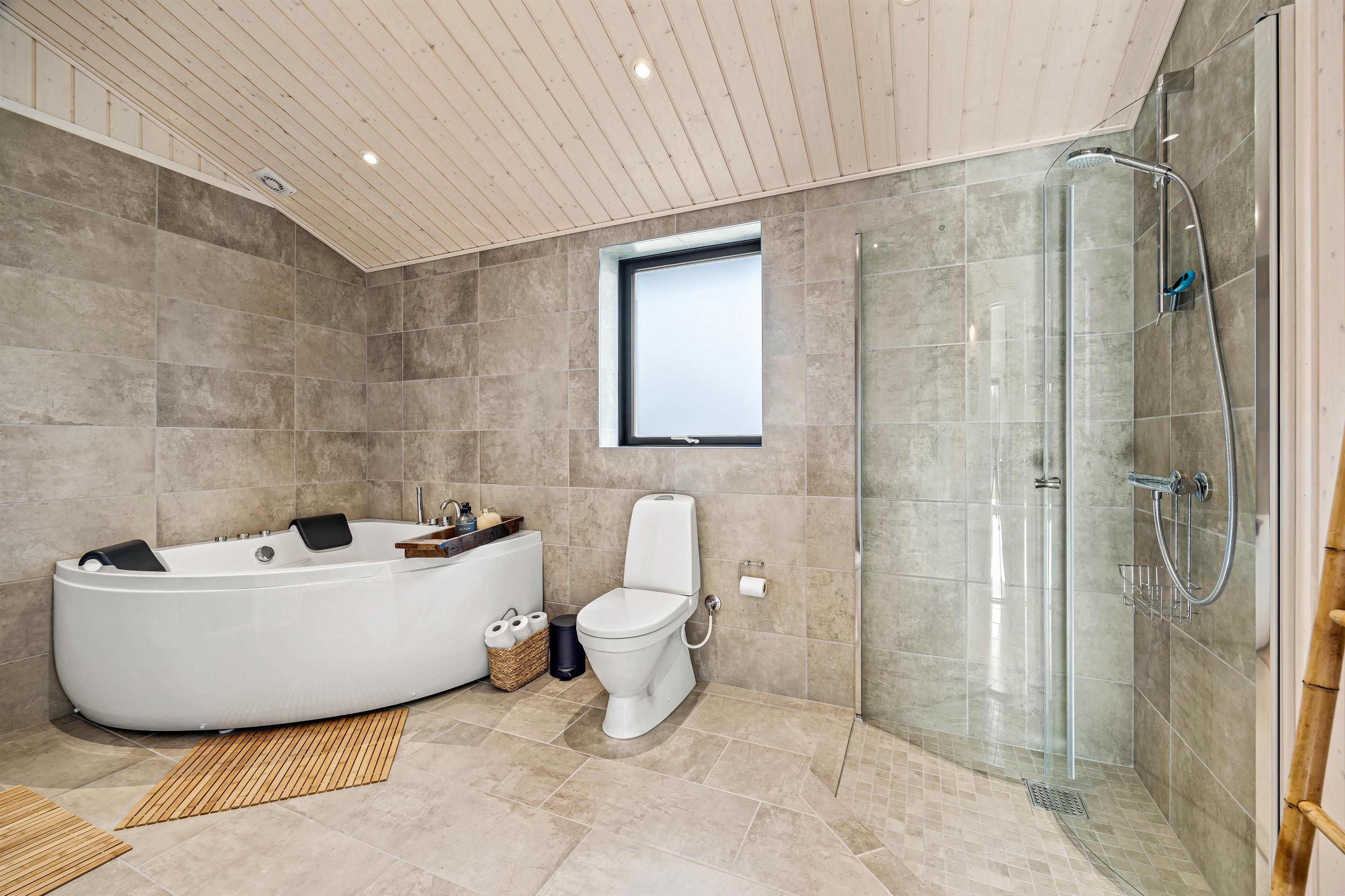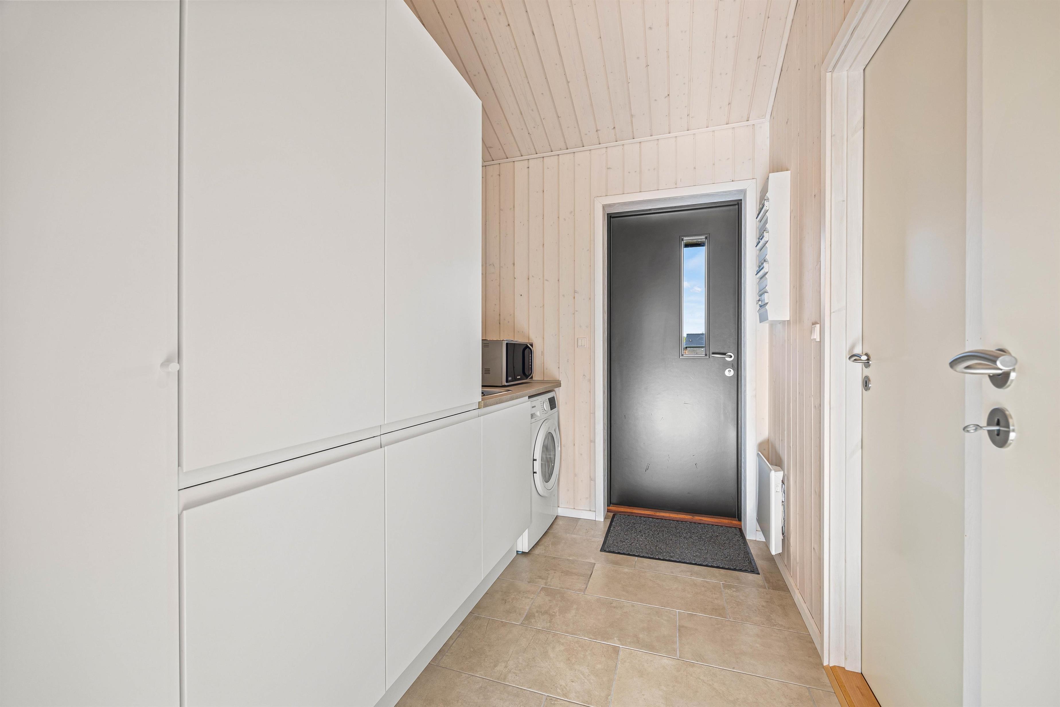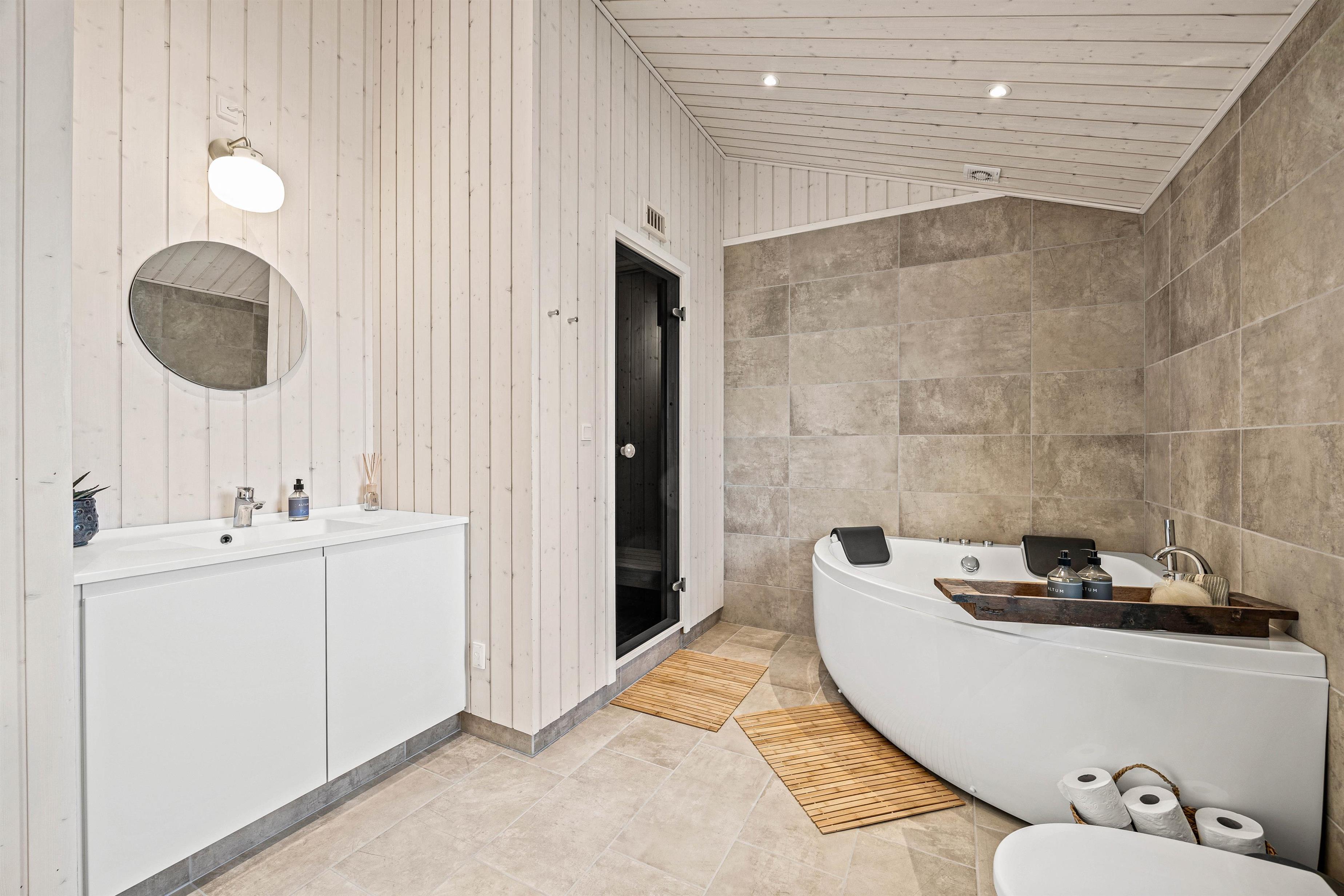 The beautiful wood-burning stove and flat-screen TV in the living room create the perfect setting for cosy evenings watching films in good company. In addition to the wood burner, this holiday home features an energy-efficient heat pump for heating.