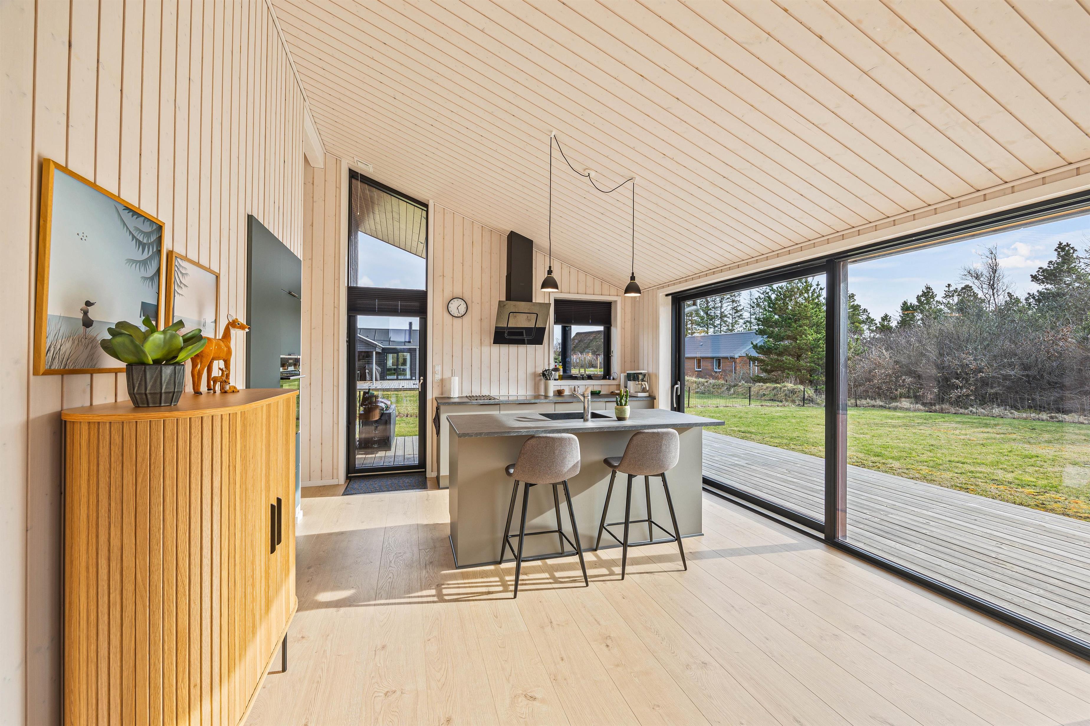 Situated on a beautiful natural plot in Henneby, this lovely holiday home is surrounded by nature, offering opportunities to experience rich wildlife and flora up close. Well-maintained walking and cycling paths can be found in the Blåbjerg Plantage. Golf enthusiasts can enjoy a round at the local golf course.