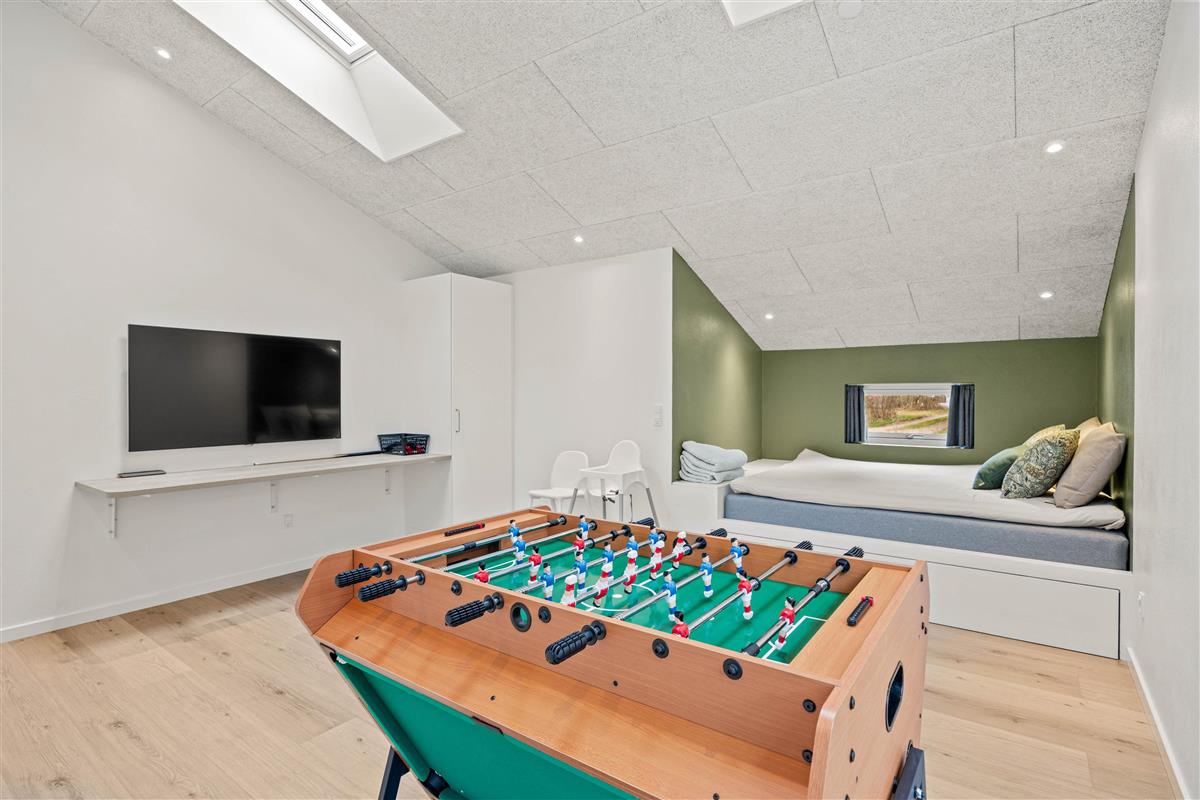 Built in 2025, this Henneby holiday home offers ample space and comfort across 146 square metres for your whole family or a holiday with close friends. The games room features a multi-game table for entertainment, including table football, pool, and air hockey.