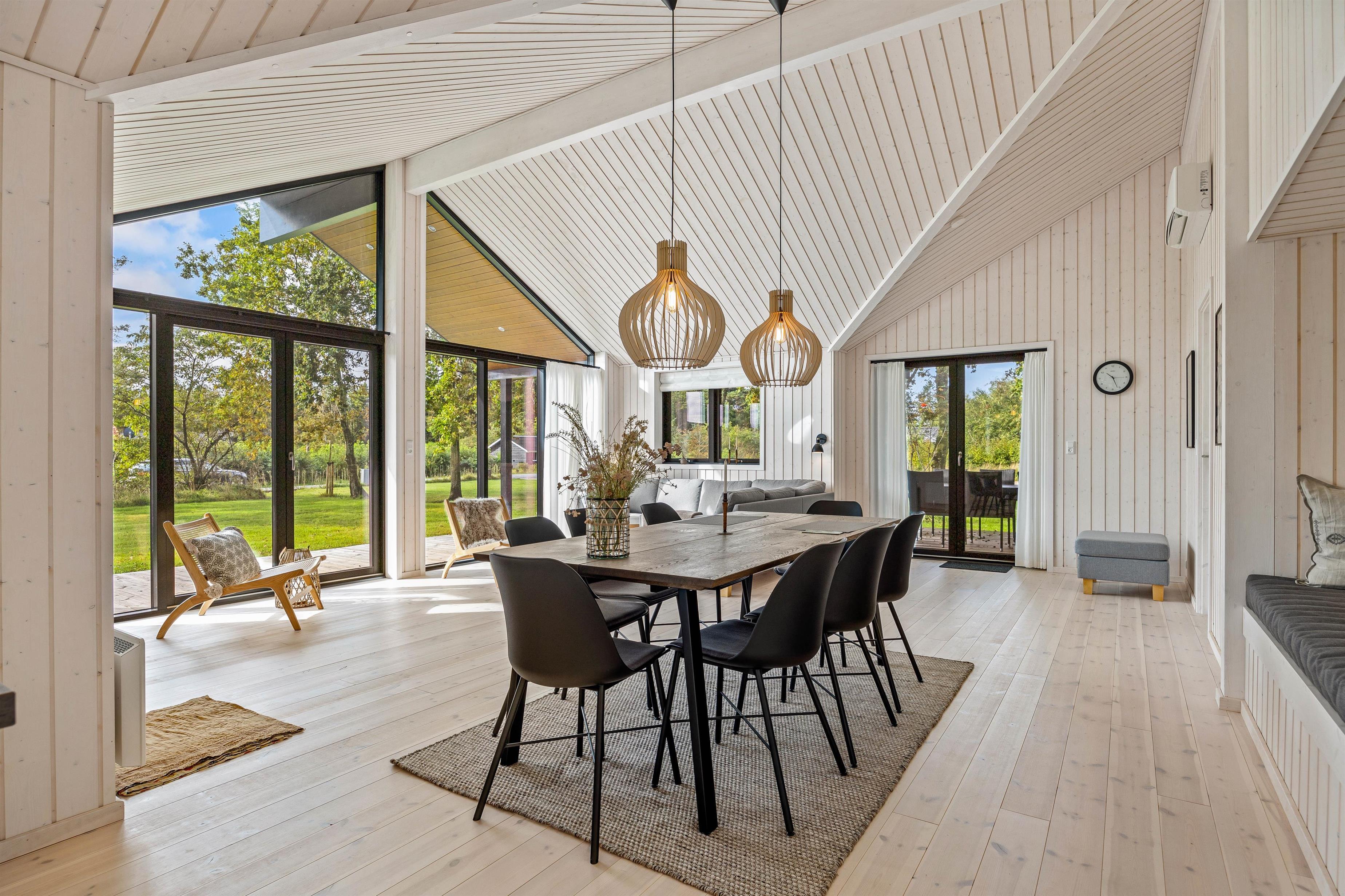 Built in 2023, this holiday home on Horsevej 2 in Henneby invites relaxation and play with its high ceilings, large windows, and bright, peaceful interior. An energy-efficient heat pump ensures comfortable temperatures throughout all rooms.
