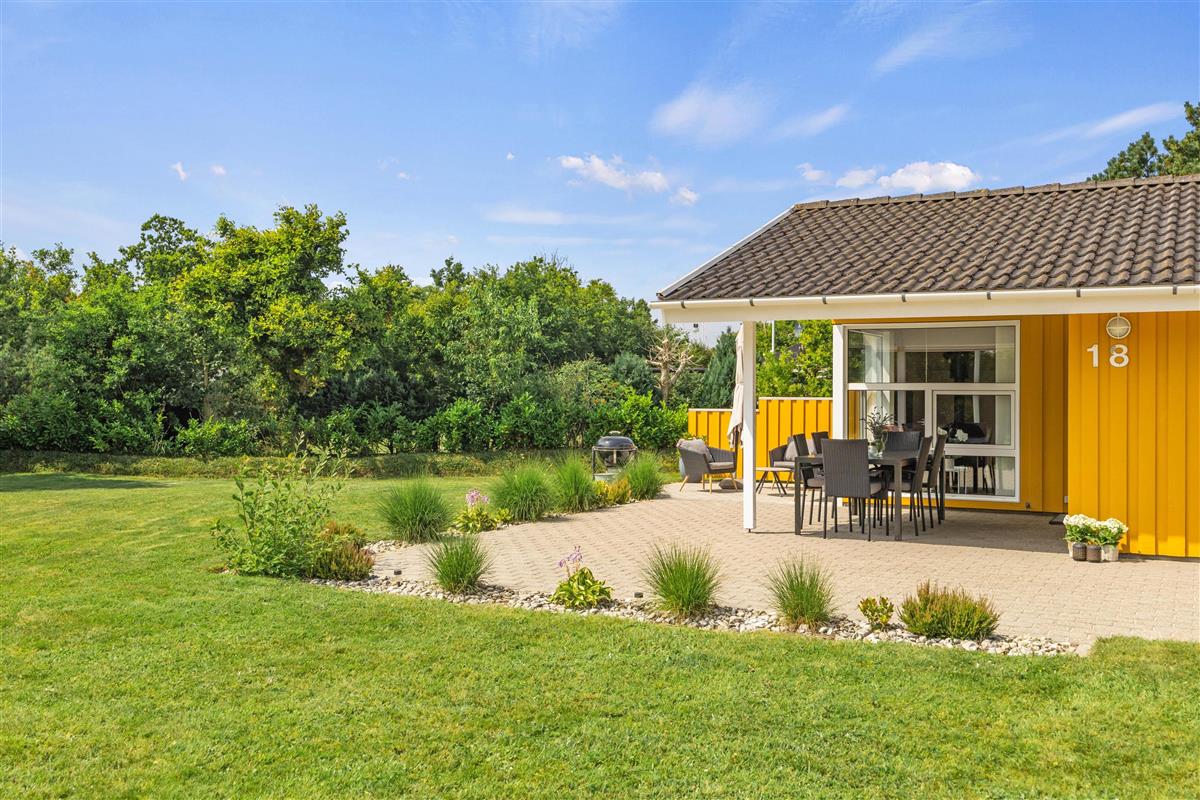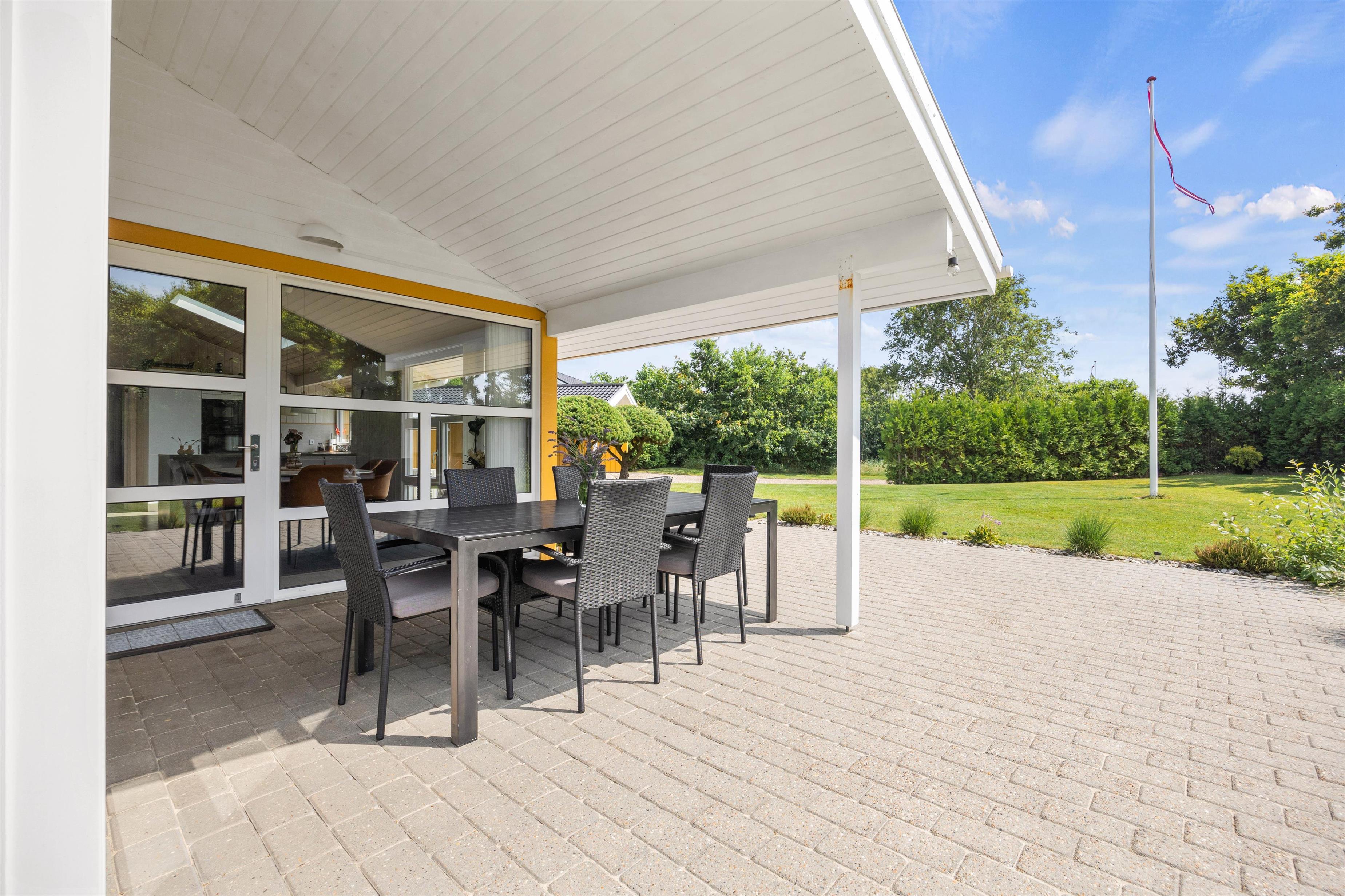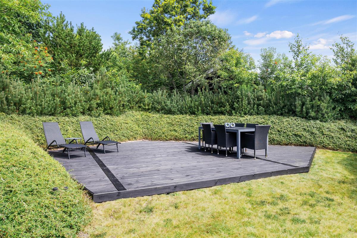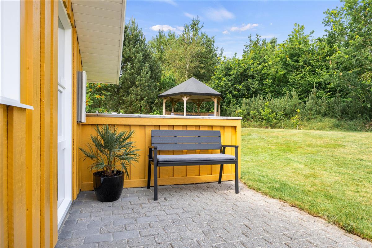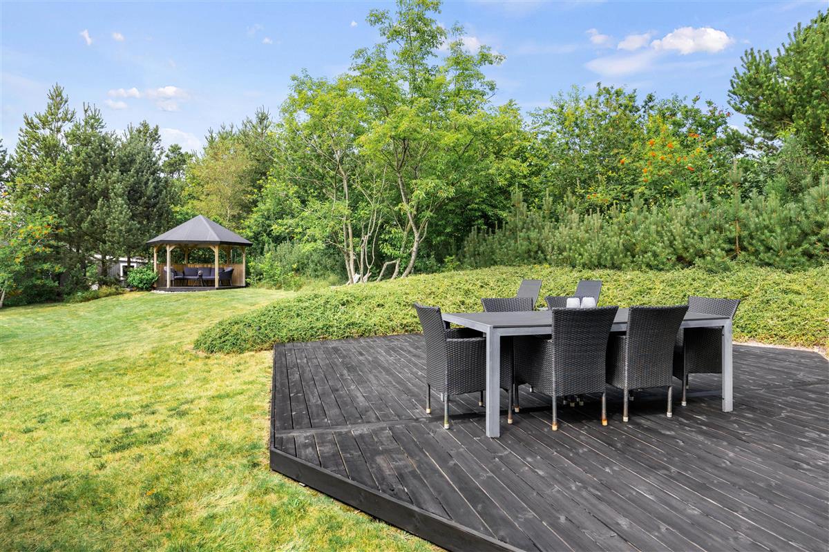 Situated on the outskirts of Henne Strand, the holiday home stands on a well-maintained large plot. The terrace comes equipped with garden furniture and a barbecue, perfect for enjoying time outdoors. There are several areas on the terrace for both sun and shade, with a covered section allowing outdoor seating even during brief showers. The expansive lawn is ideal for ball games and other activities.