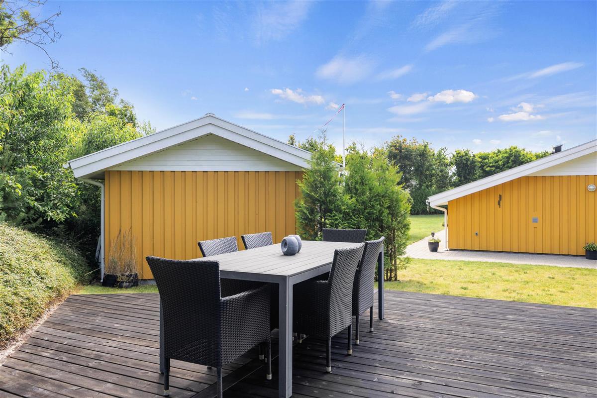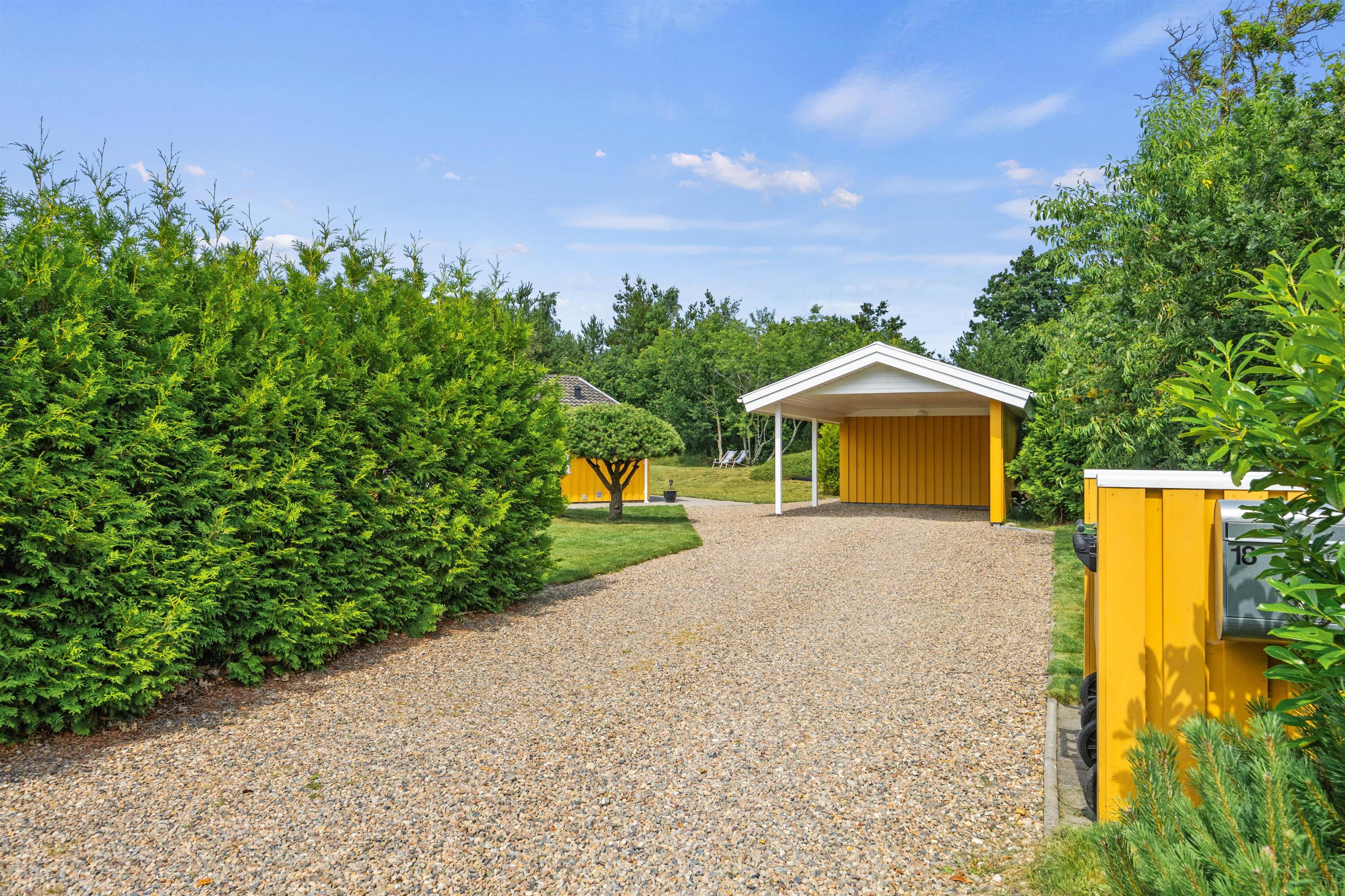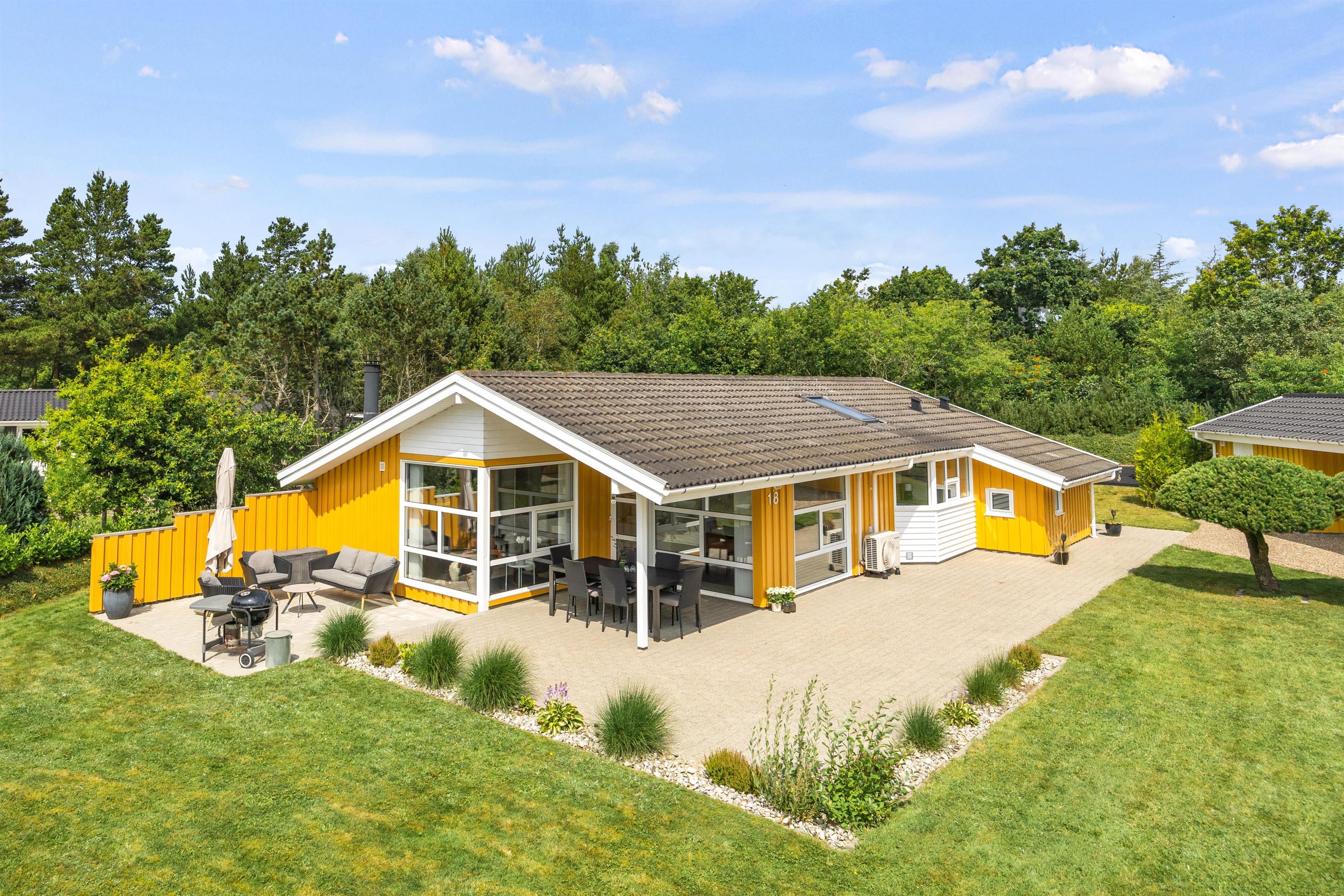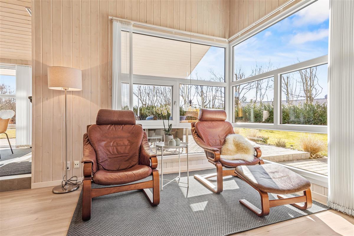 Situated on the outskirts of Henne Strand, the holiday home stands on a well-maintained large plot. The terrace comes equipped with garden furniture and a barbecue, perfect for enjoying time outdoors. There are several areas on the terrace for both sun and shade, with a covered section allowing outdoor seating even during brief showers. The expansive lawn is ideal for ball games and other activities.
