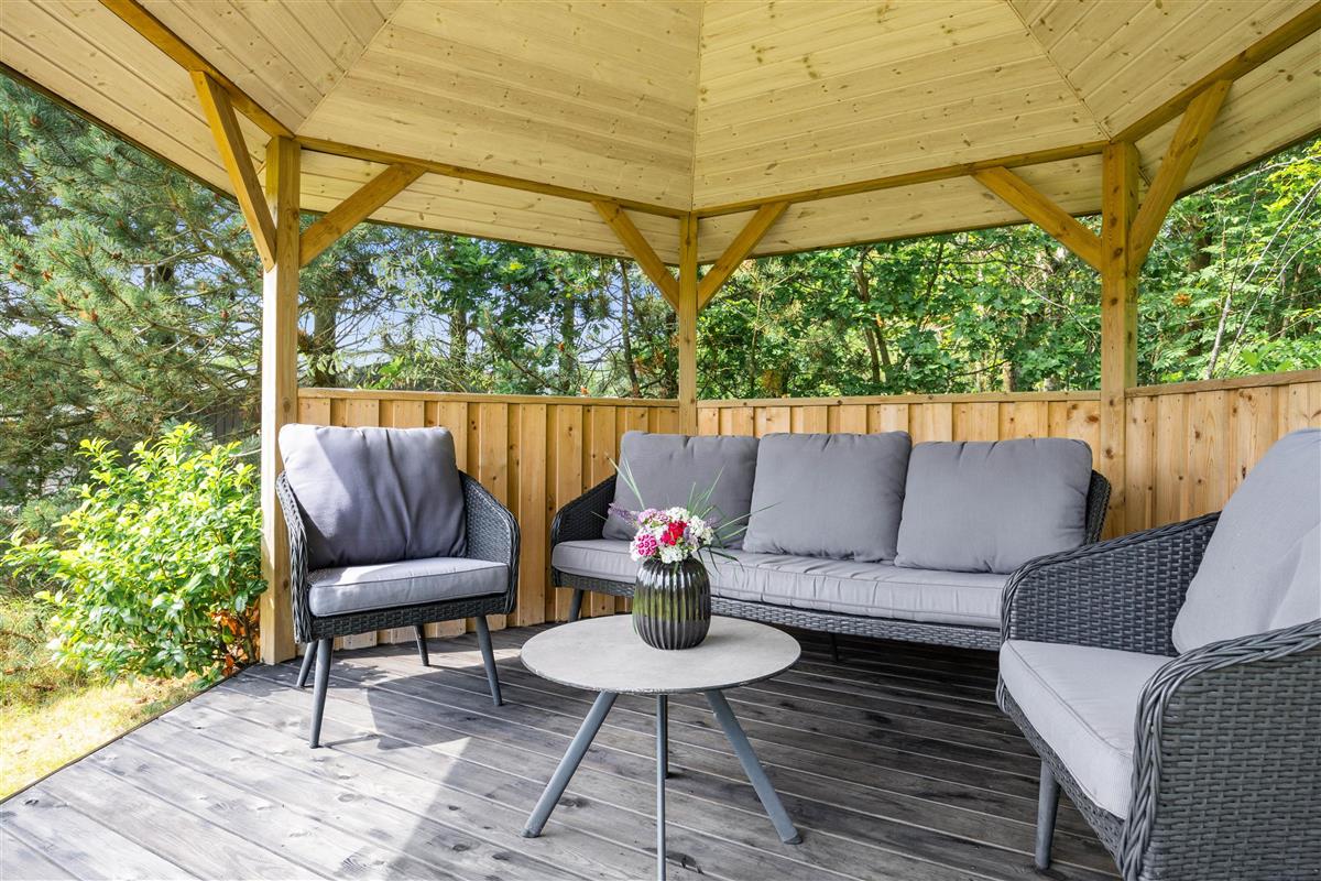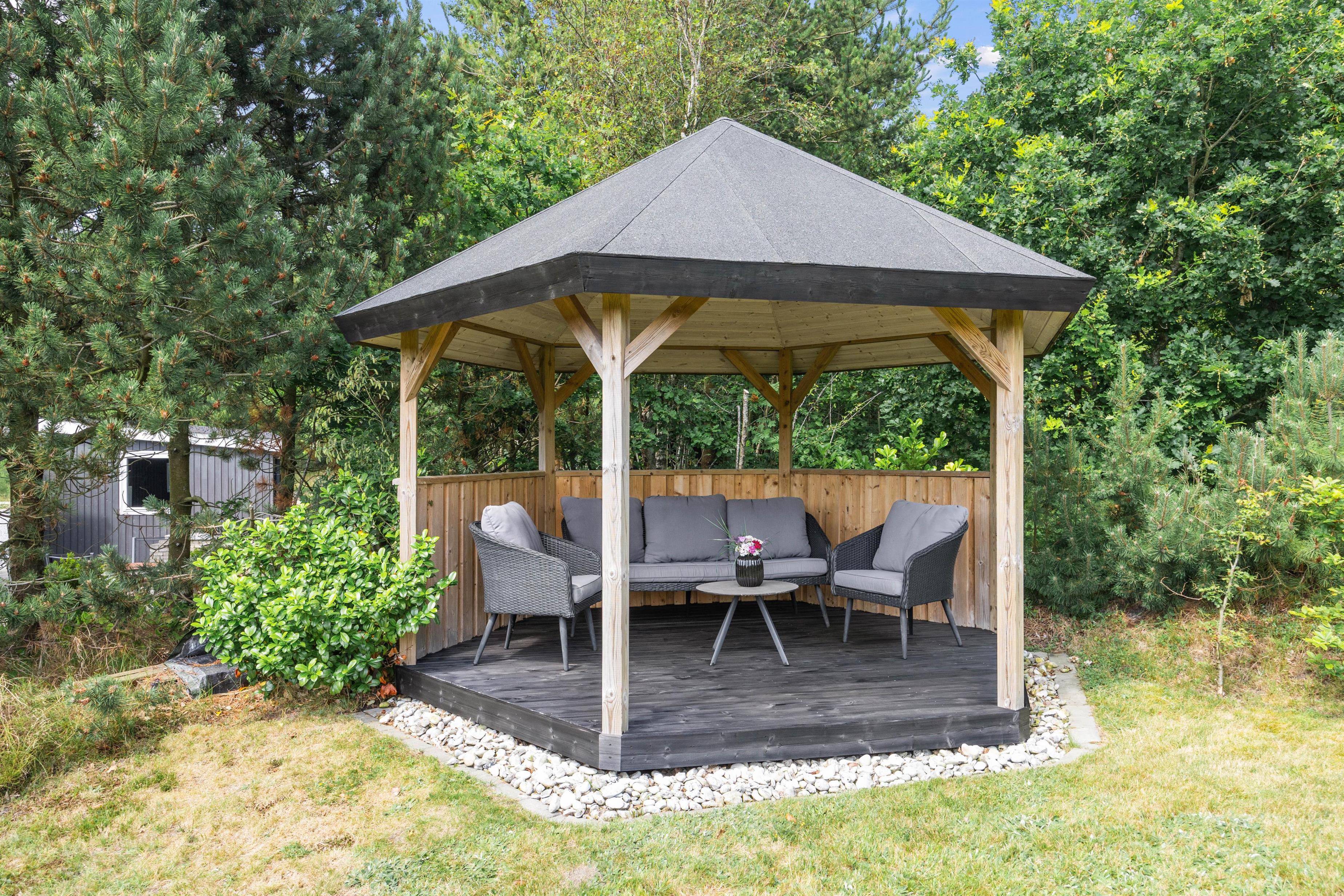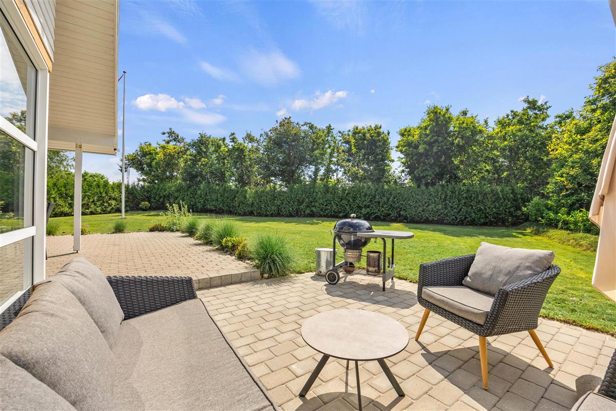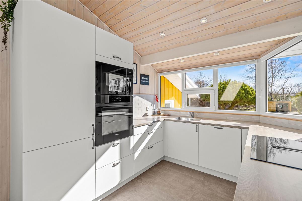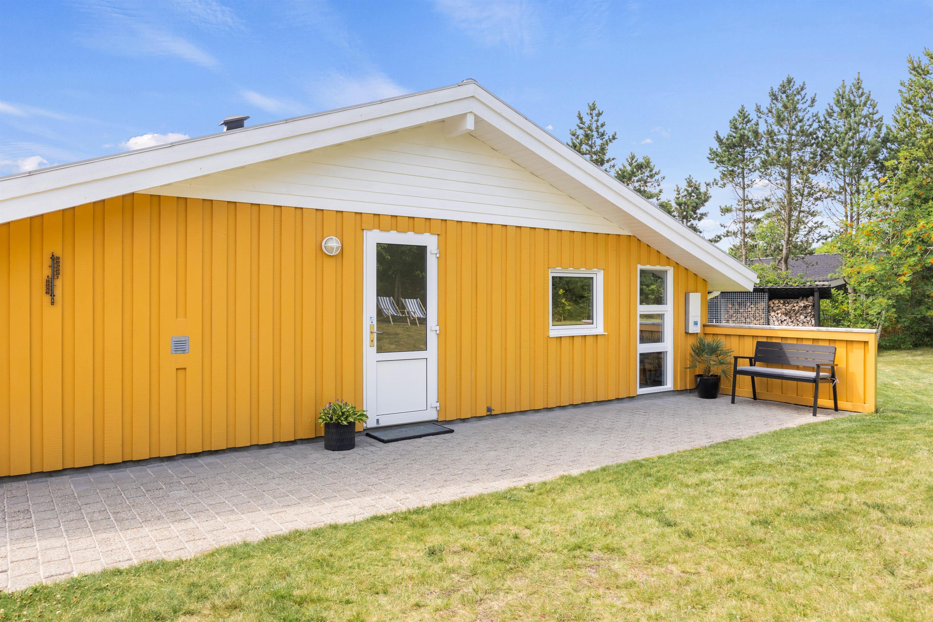 Situated on the outskirts of Henne Strand, the holiday home stands on a well-maintained large plot. The terrace comes equipped with garden furniture and a barbecue, perfect for enjoying time outdoors. There are several areas on the terrace for both sun and shade, with a covered section allowing outdoor seating even during brief showers. The expansive lawn is ideal for ball games and other activities.