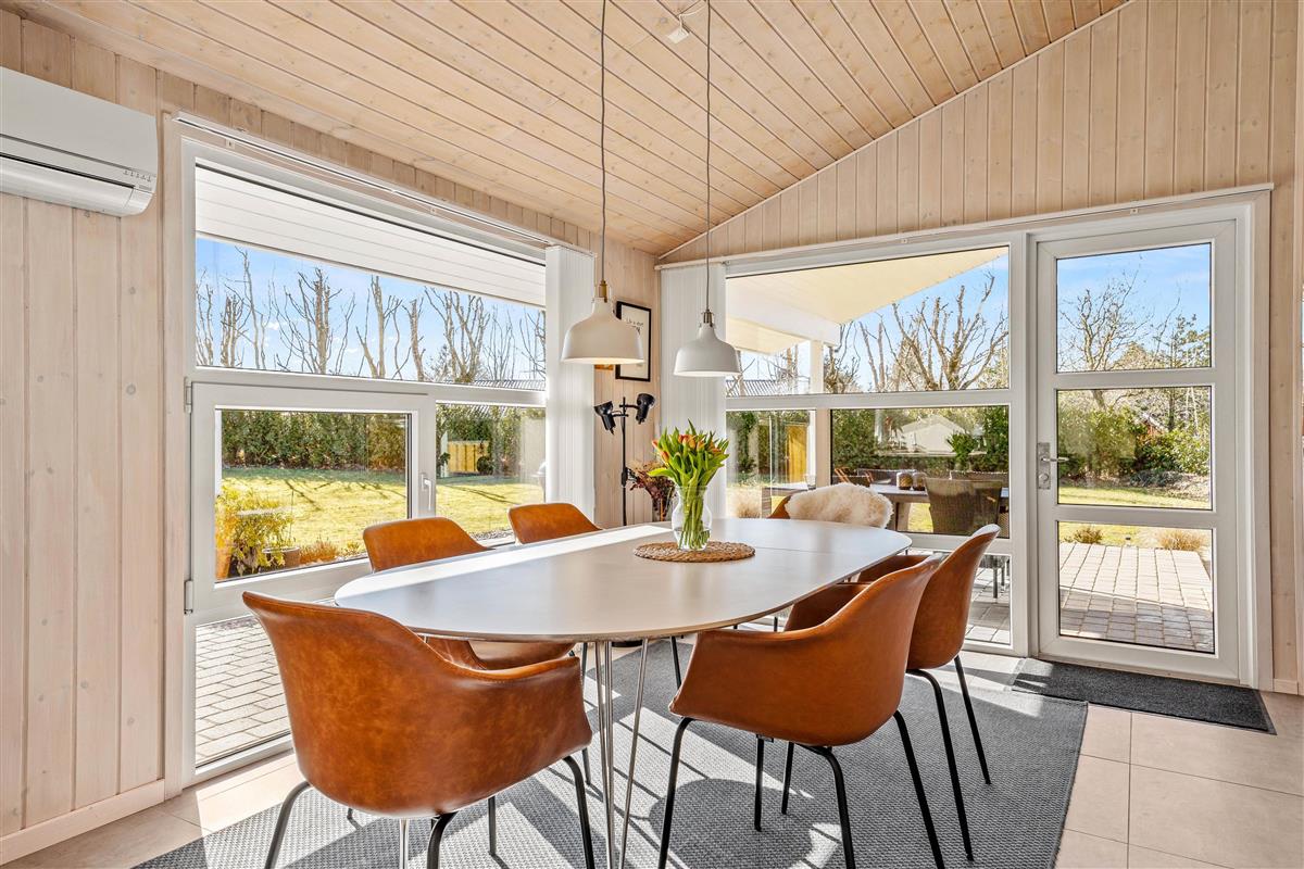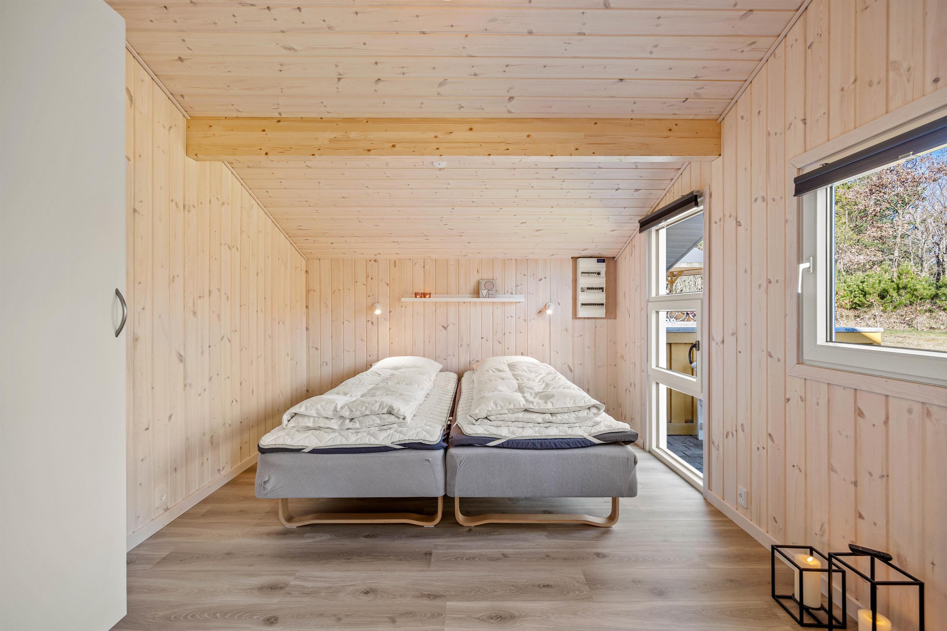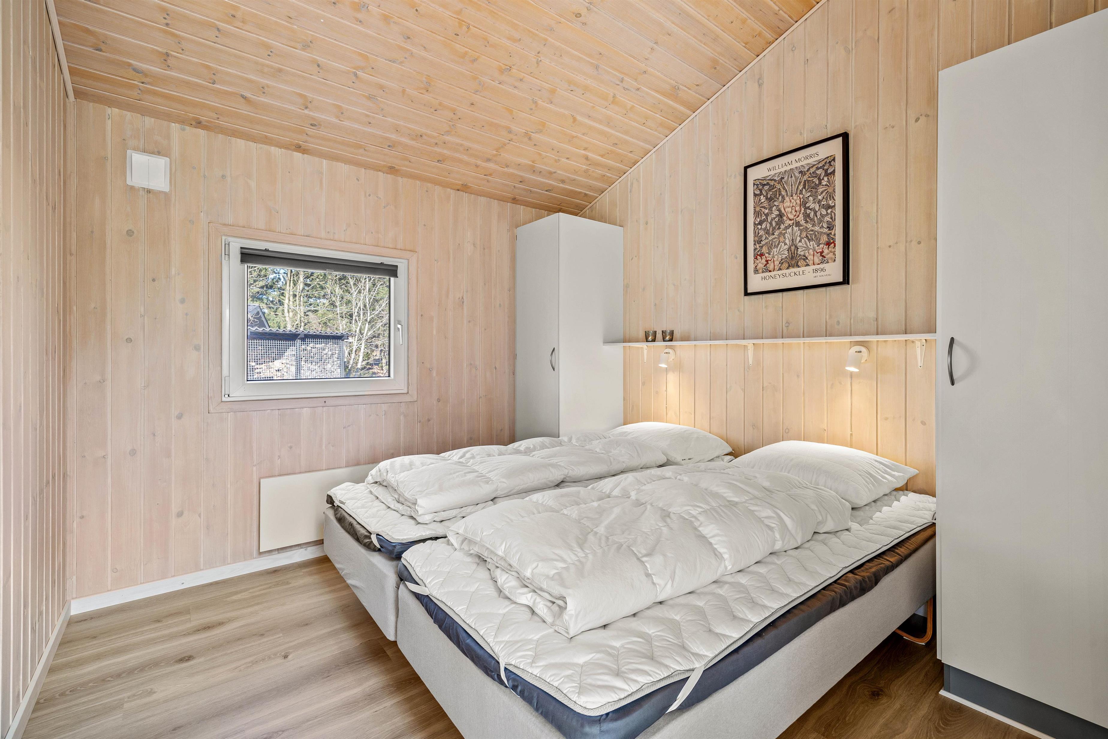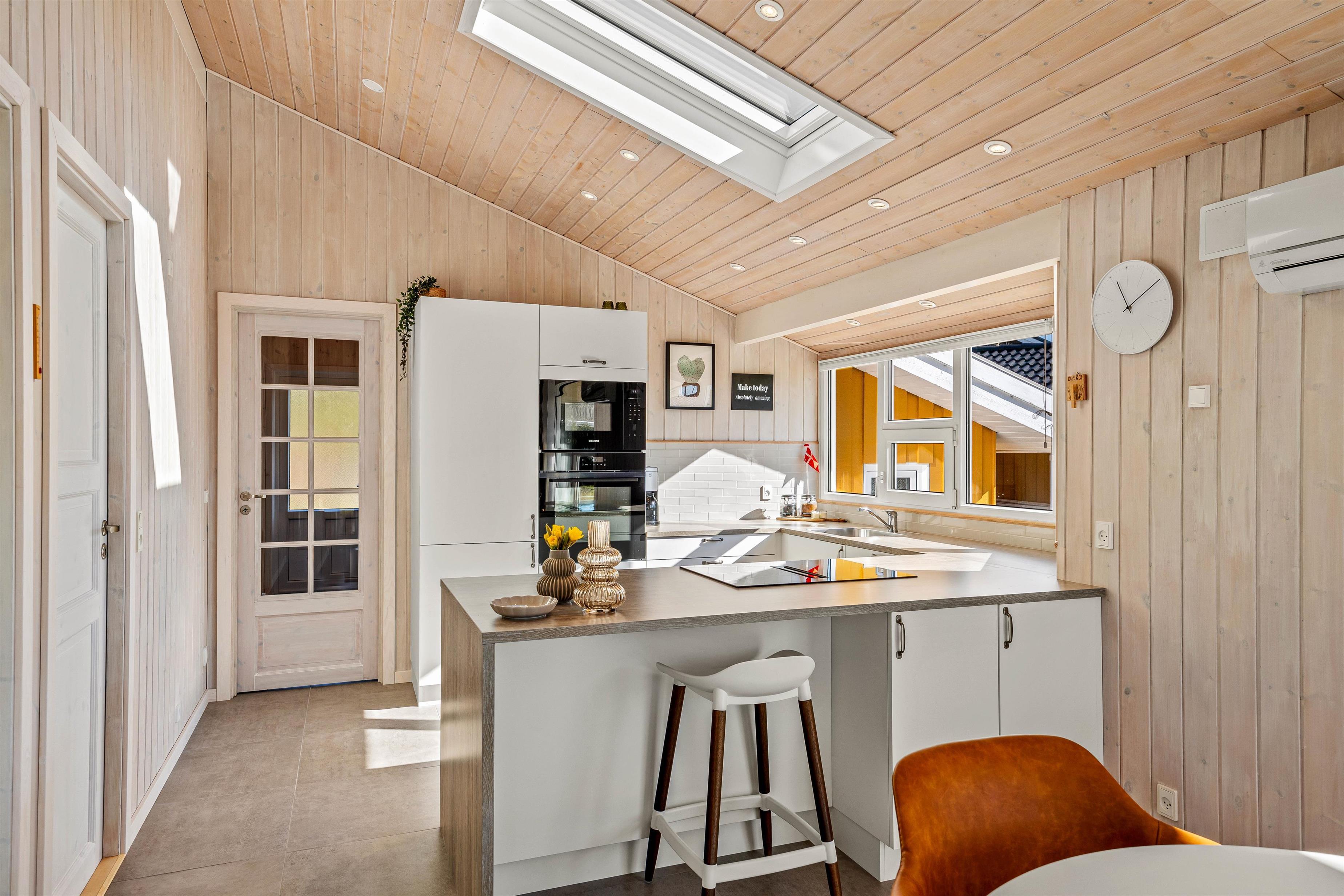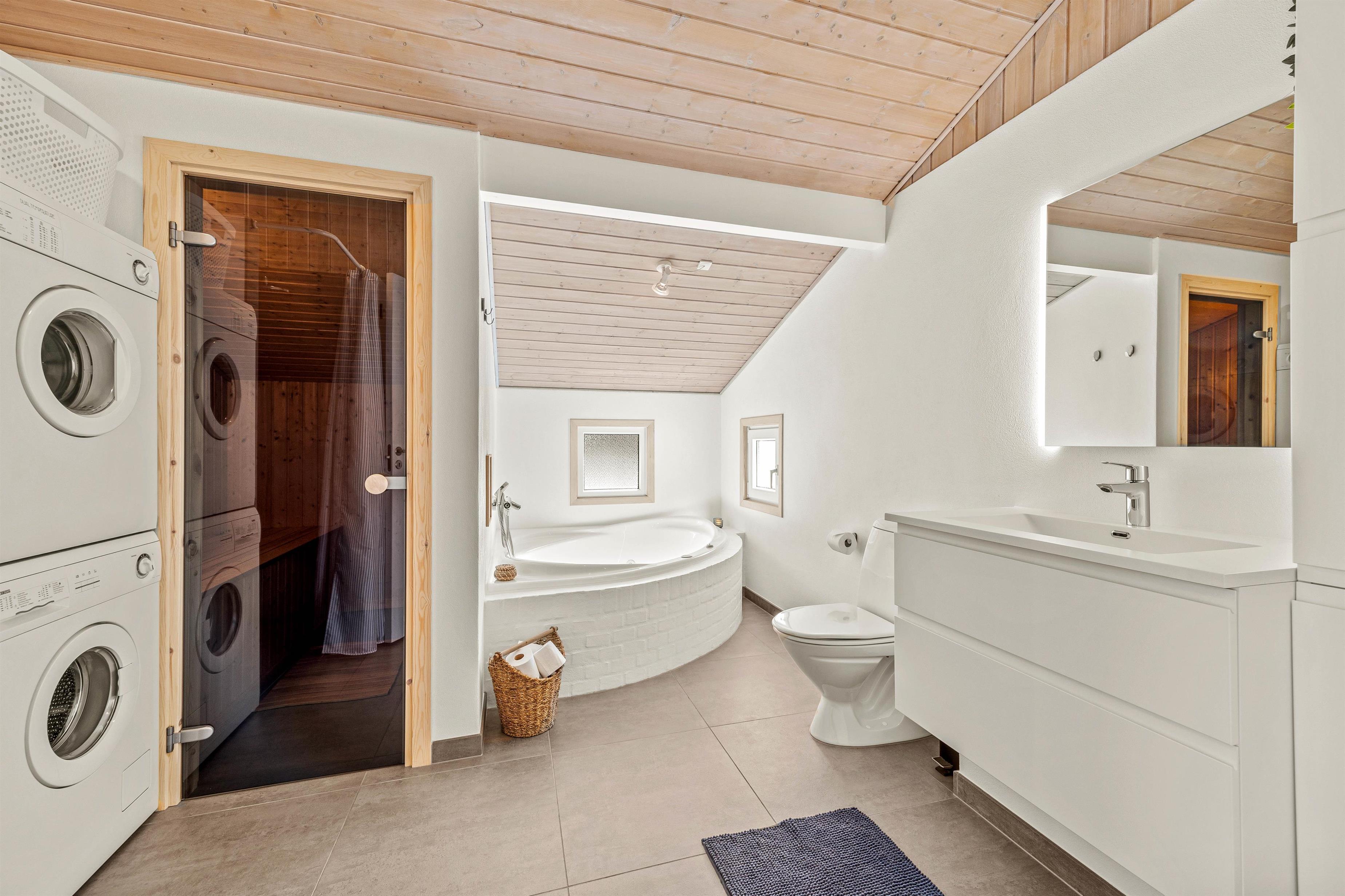 Located at Thomas Jensens Vej 18, this holiday home comfortably accommodates 6 people. Everything is provided: from 3 bedrooms with comfortable wide beds (90cm mattresses) to the generous wellness area in the main bathroom. Here you'll find a sauna and whirlpool where you can truly unwind. The bathroom also features a washing machine, tumble dryer and underfloor heating to keep feet warm during your stay.