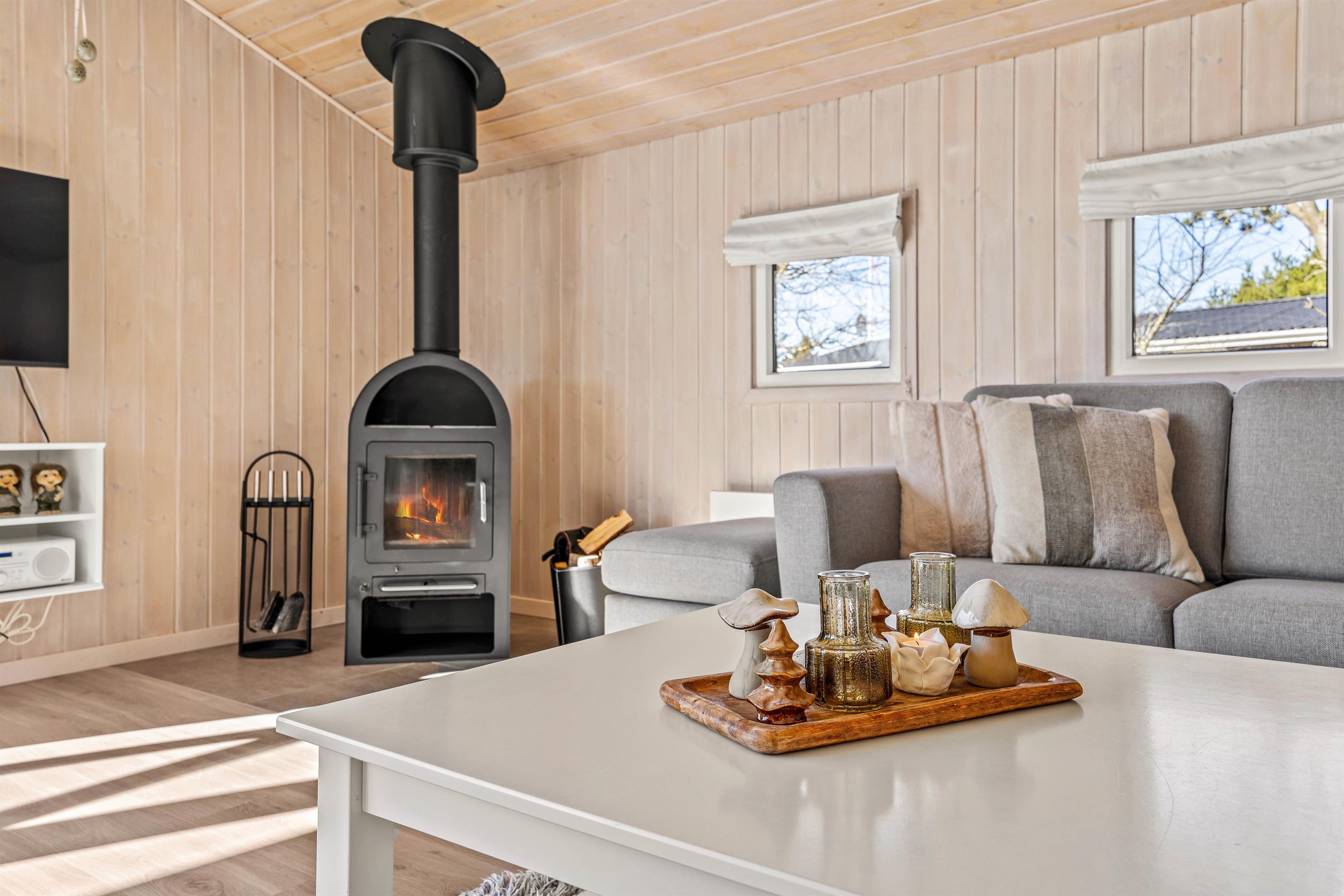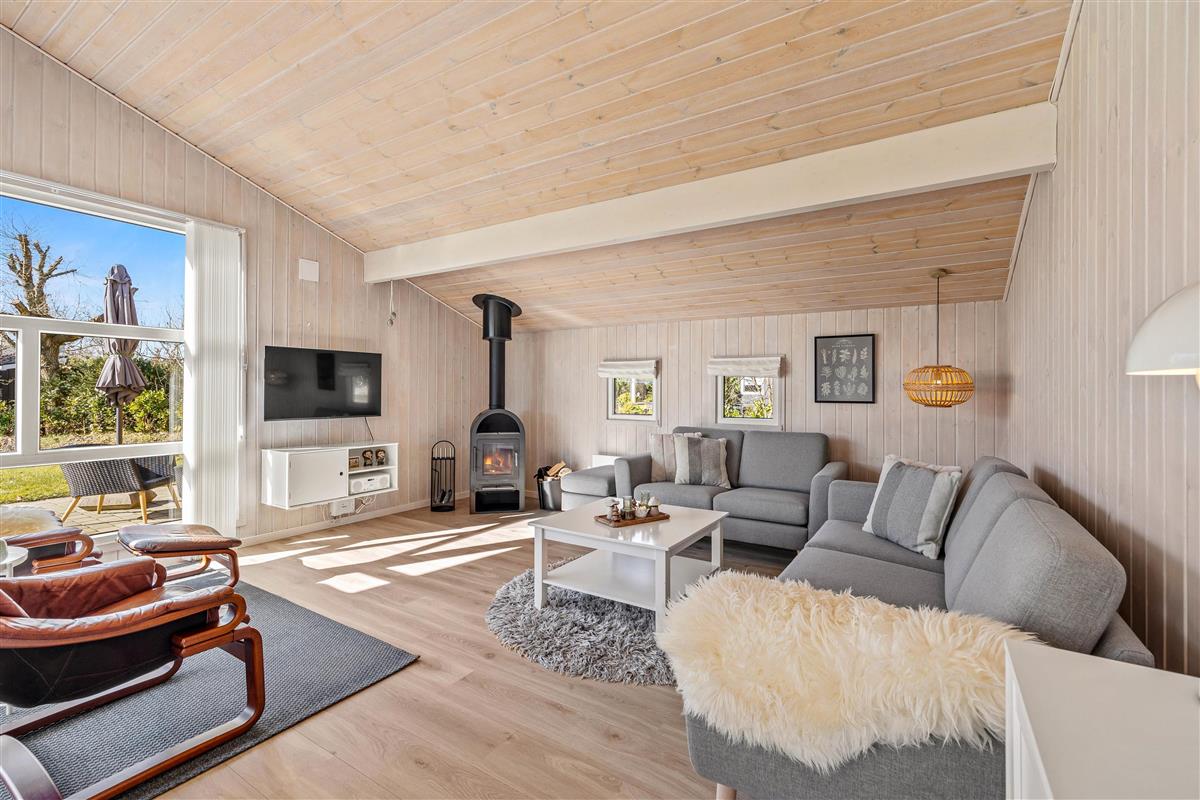 Distinctively painted yellow on the outside and featuring bright, modern interiors, this welcoming holiday home leaves nothing to be desired. Just beyond the front door, you'll find beautiful, bright interiors finished with careful attention to detail. The large open-plan space, comprising the living room, dining area and kitchen, offers comfortable evenings on the sofa or armchairs, or gathering around the dining table to enjoy home-cooked meals. The wood-burning stove adds extra cosiness in the evening.