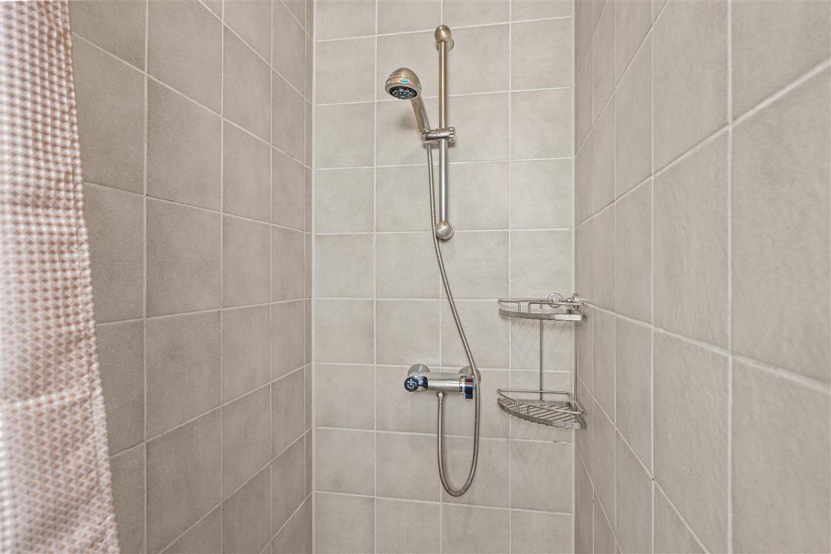The spacious and bright living area invites cosy evenings with comfortable furniture and a beautiful wood-burning stove. The modern, fully equipped kitchen has everything needed for preparing delicious meals, featuring not only a dishwasher but also a high-quality cooker, fridge-freezer and microwave.