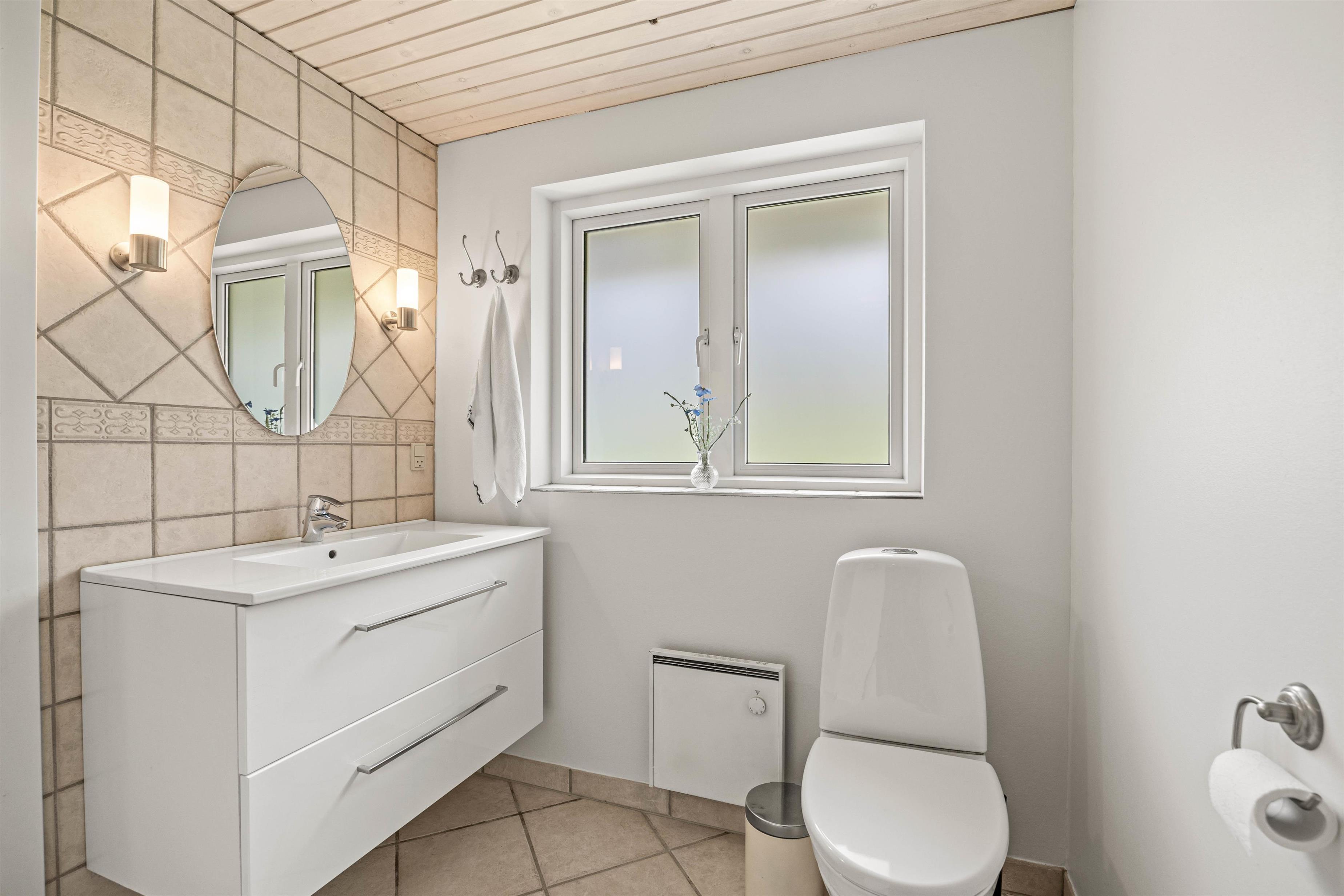 The generous 3,045-square-metre plot allows you to enjoy the beauty of Denmark's west coast nature, with a swing set for children to play. The holiday home features two functional bathrooms with all essential amenities.