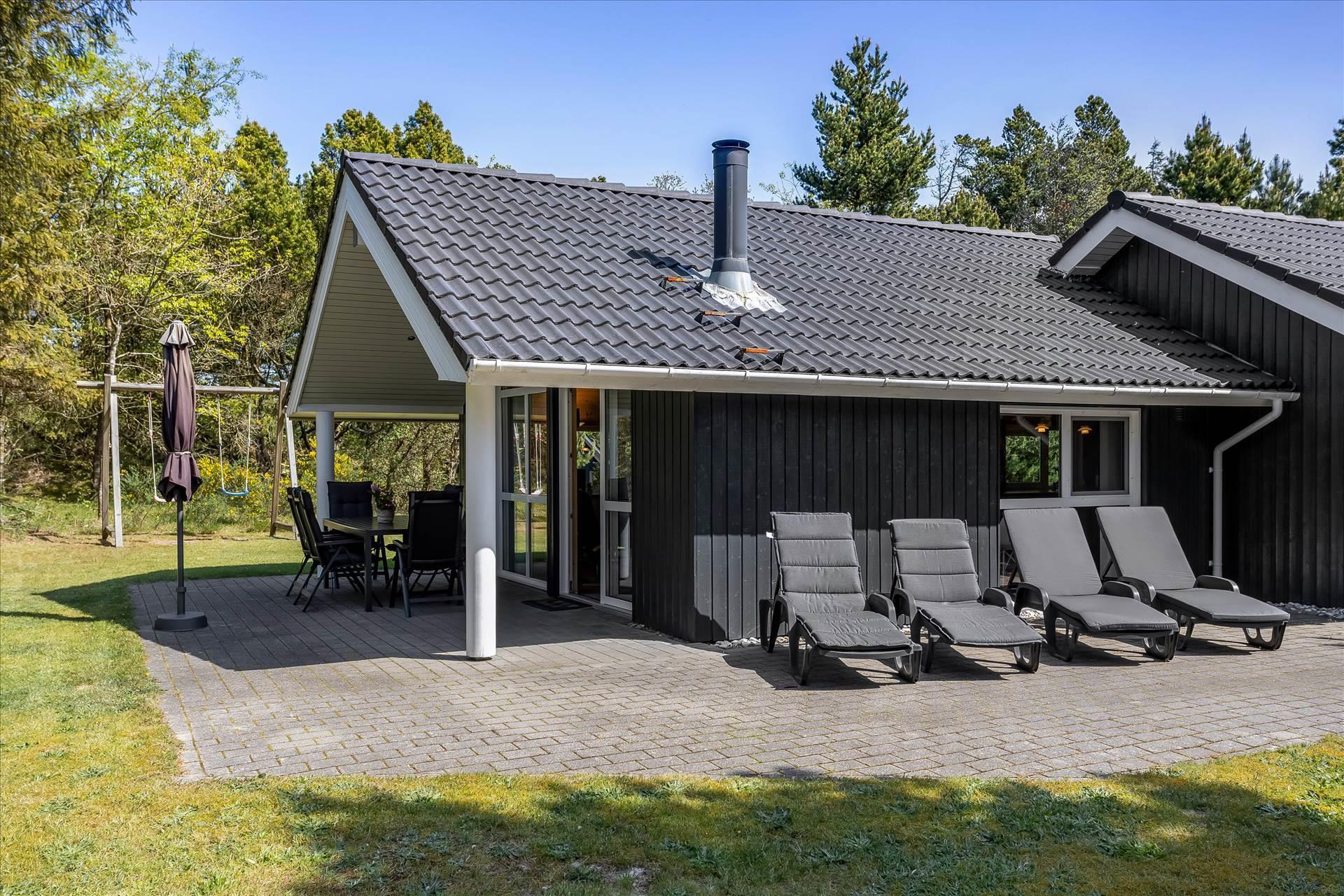 Nature enthusiasts will particularly appreciate the house's location, right next to the beautiful expanse of heathland and forest. The magnificent wide sandy beach and Henne Strandby, with its shops and restaurants, are only about 1.2 miles (2 kilometres) away. Long bicycle rides through the uniquely beautiful heathland landscape are practically a must.