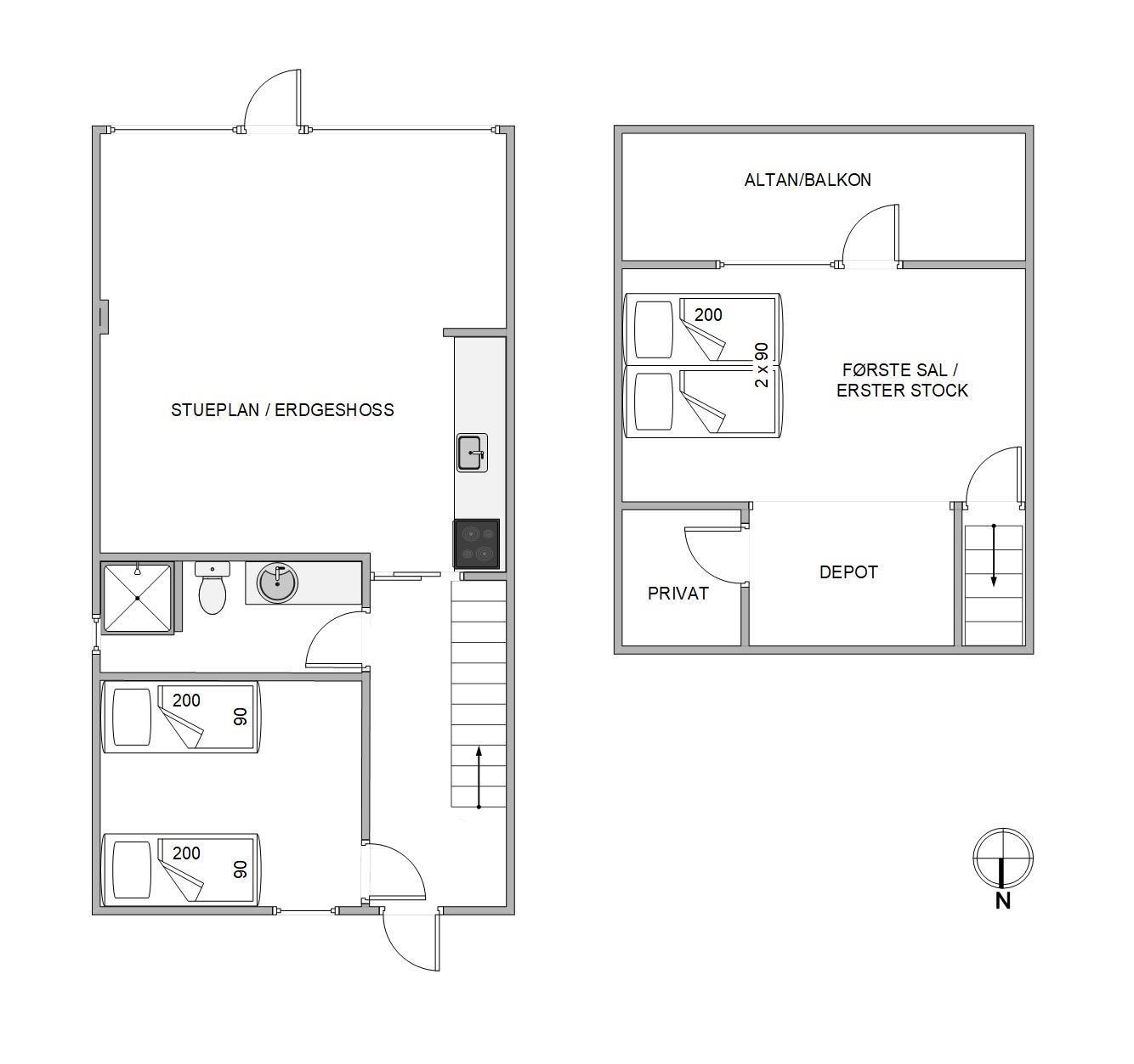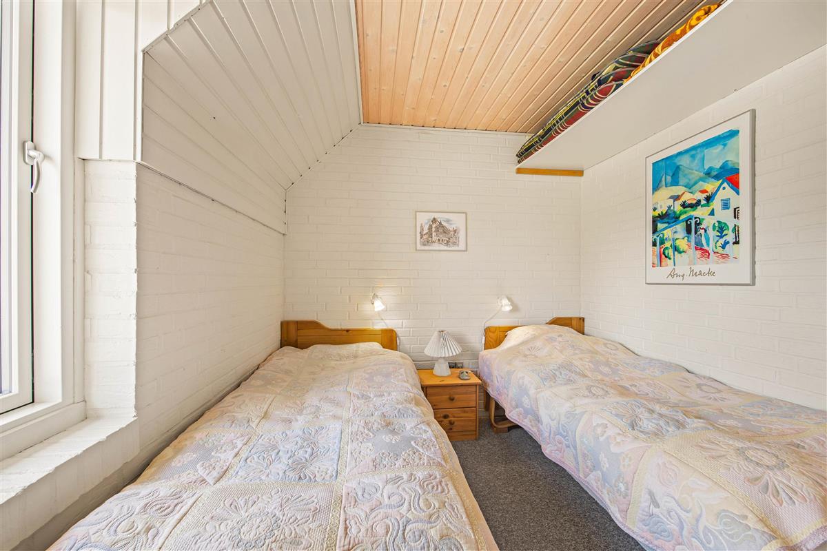 On the ground floor, you'll find a bedroom to the left with two comfortable single beds and a well-maintained bathroom with heated towel rail. Upstairs, there's a second bedroom with a comfortable double bed. From here, you have access to the balcony with its comfortable furniture - the perfect spot to enjoy your morning coffee.