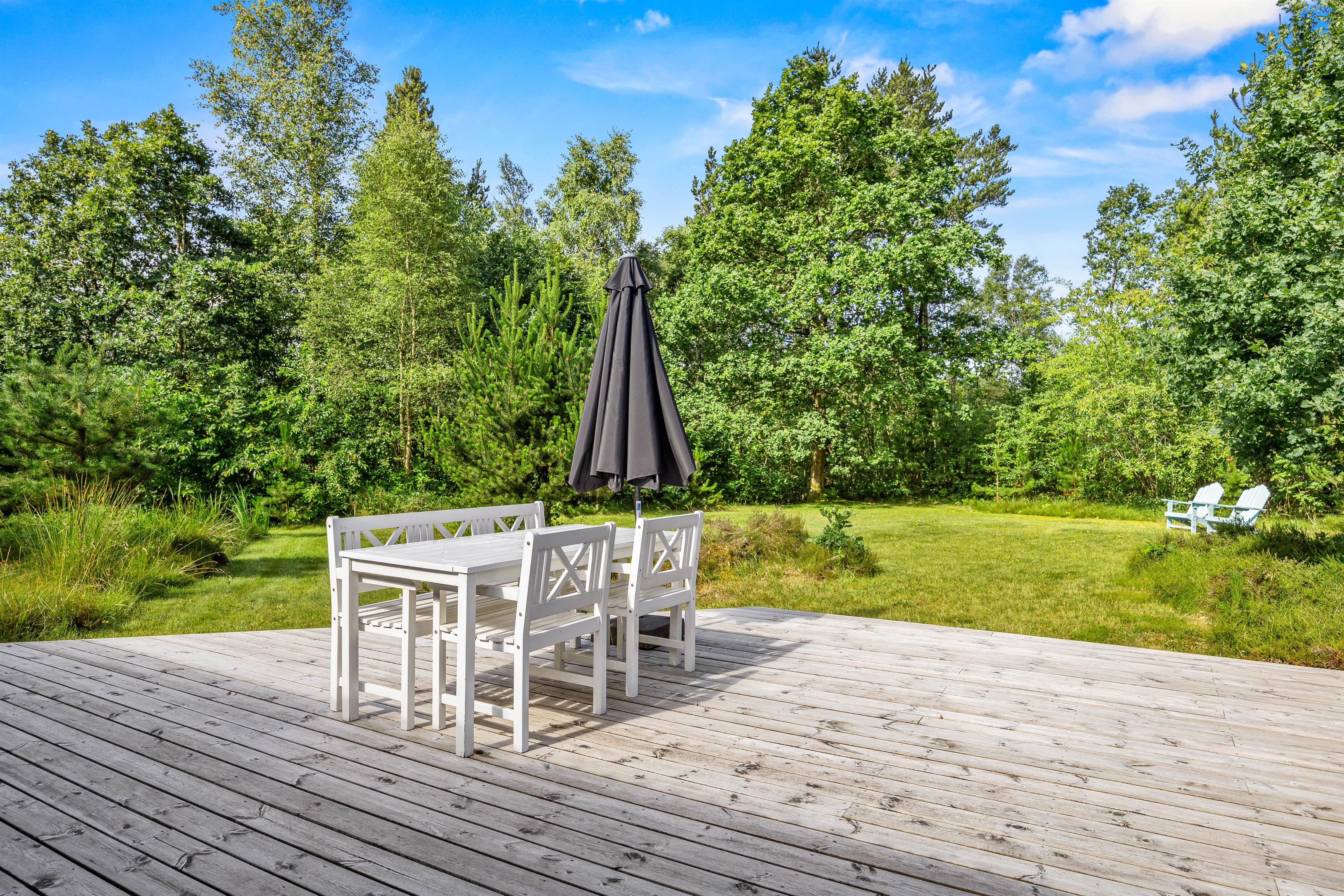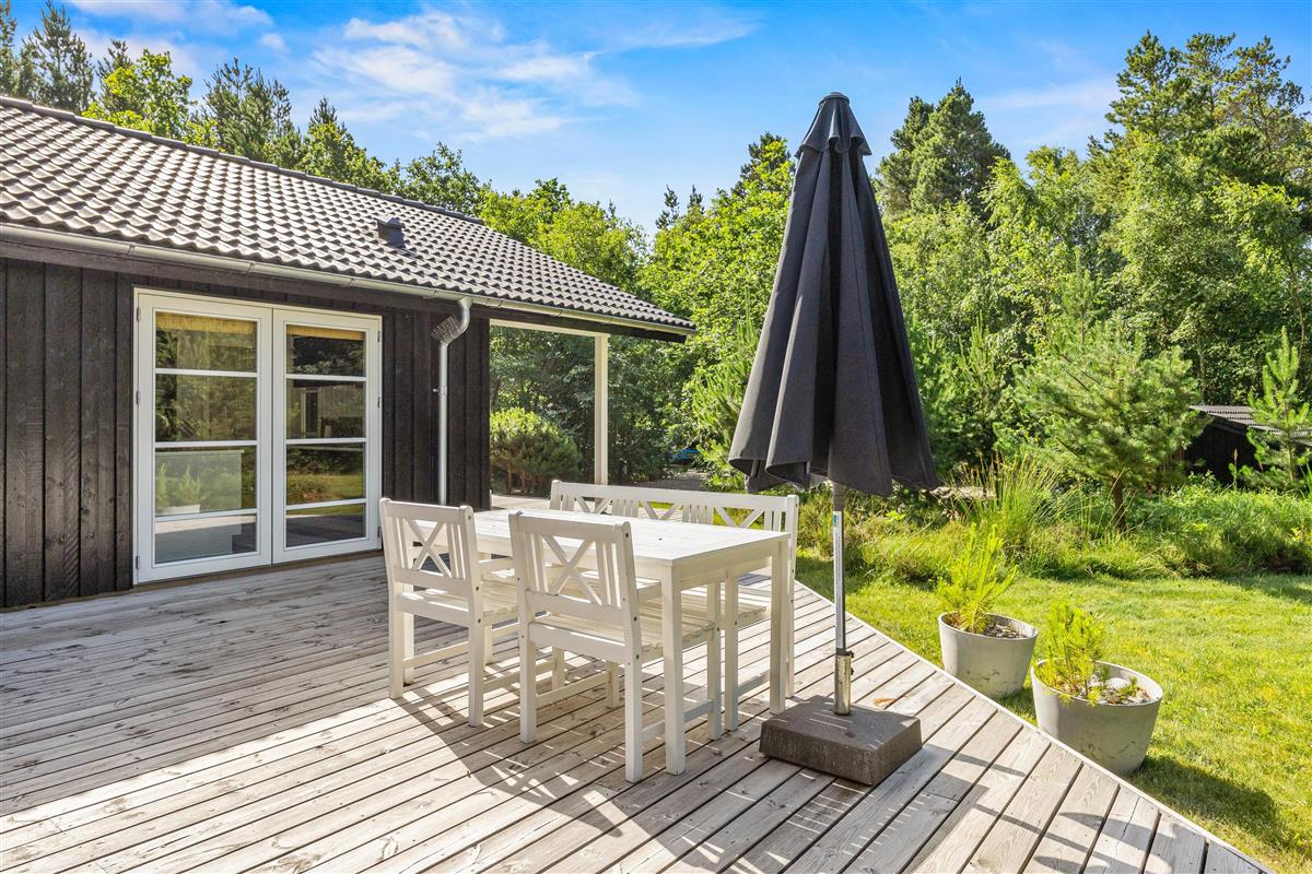 A lovely terrace wraps around the entire holiday home: here you can enjoy sunshine and fresh air all day while relaxing in the comfortable garden furniture and loungers provided. If you need some shade or want to enjoy evening time outdoors, you can retreat to the covered terrace, where you'll also find a barbecue for preparing your evening meals.