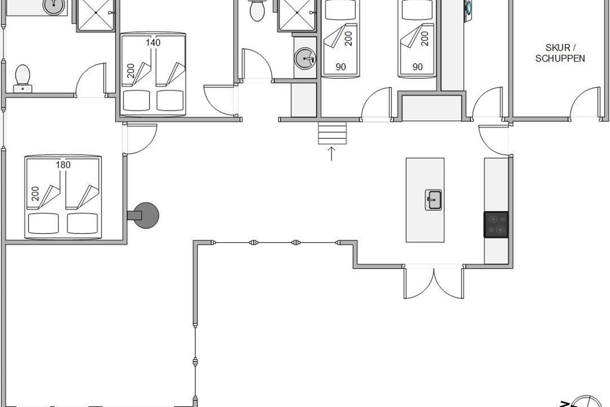 The holiday home features 3 comfortable bedrooms. Two spacious rooms are furnished with double beds, whilst the third bedroom has 2 single beds. There are also 2 bathrooms, both with underfloor heating. A washing machine is available in one of the bathrooms.